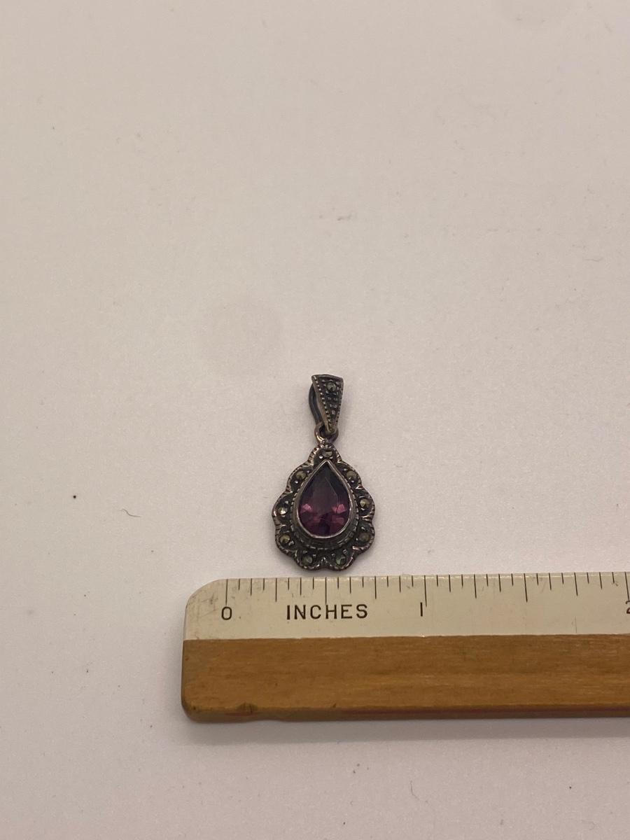 Sterling Silver 925 Marcasite & Amethyst Pendant Charm. Light purple center stone. Stamped 925 on the back. Under 1" size.