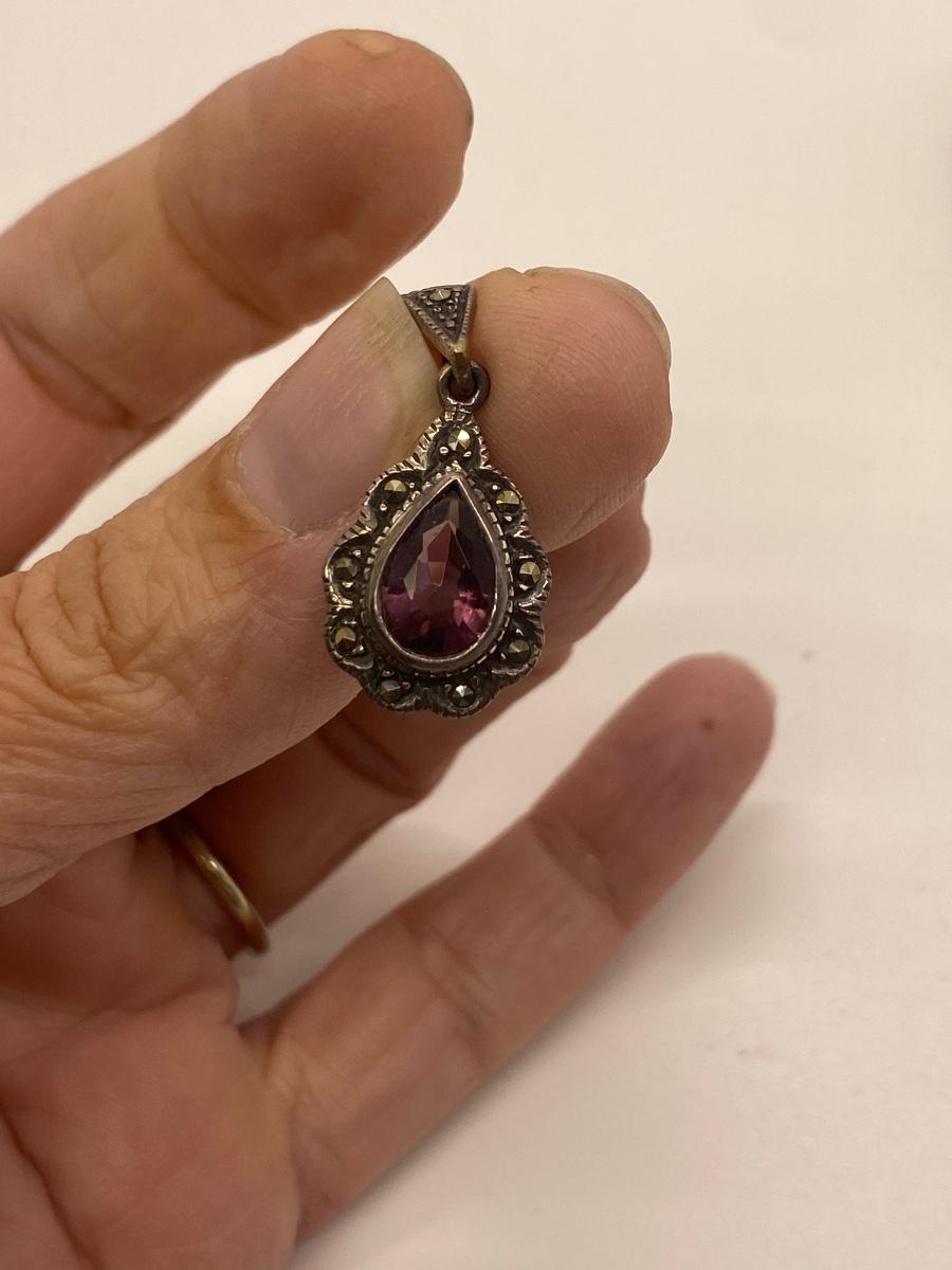 Sterling Silver 925 Marcasite & Amethyst Pendant Charm
