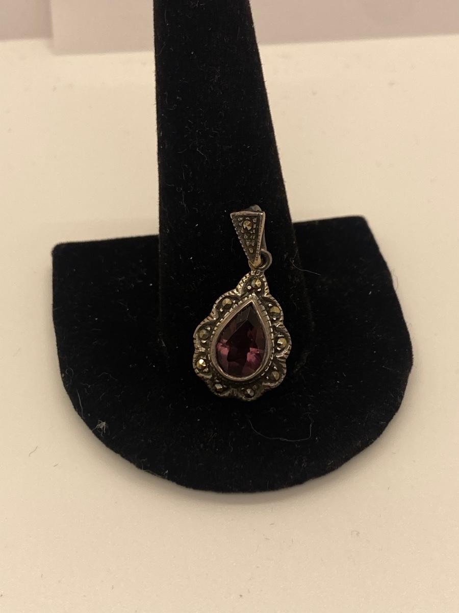 Sterling Silver 925 Marcasite & Amethyst Pendant Charm