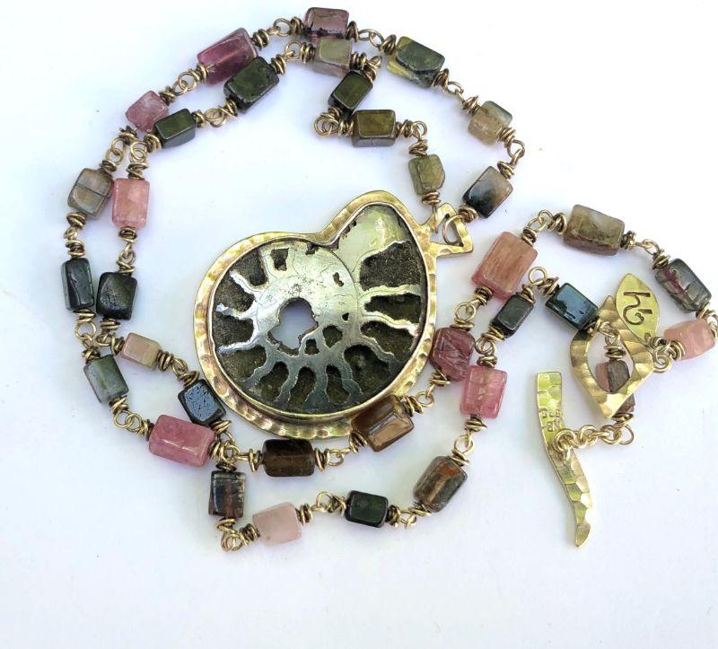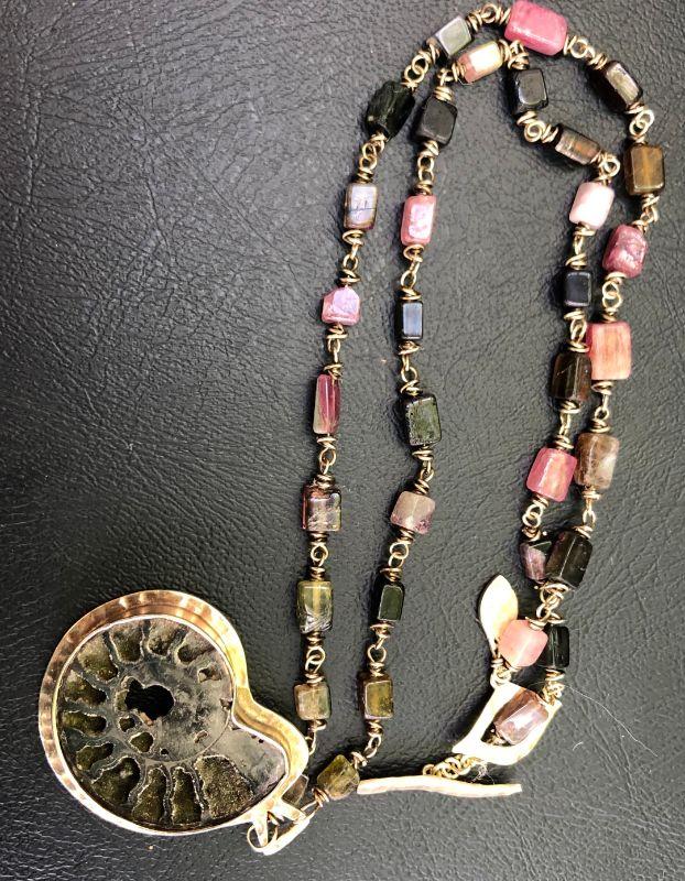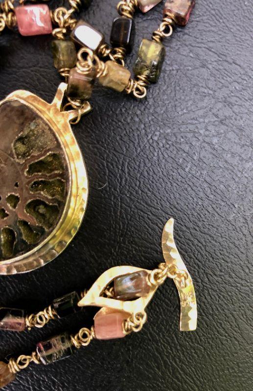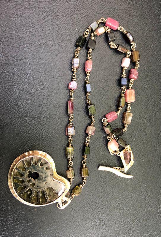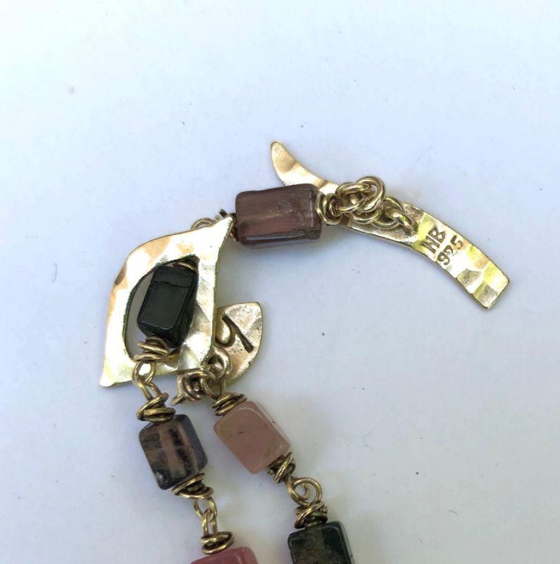 Unique Signed "NB" Gemstone Beaded Chain with Shell Metal Abstract Pendant. NB 925