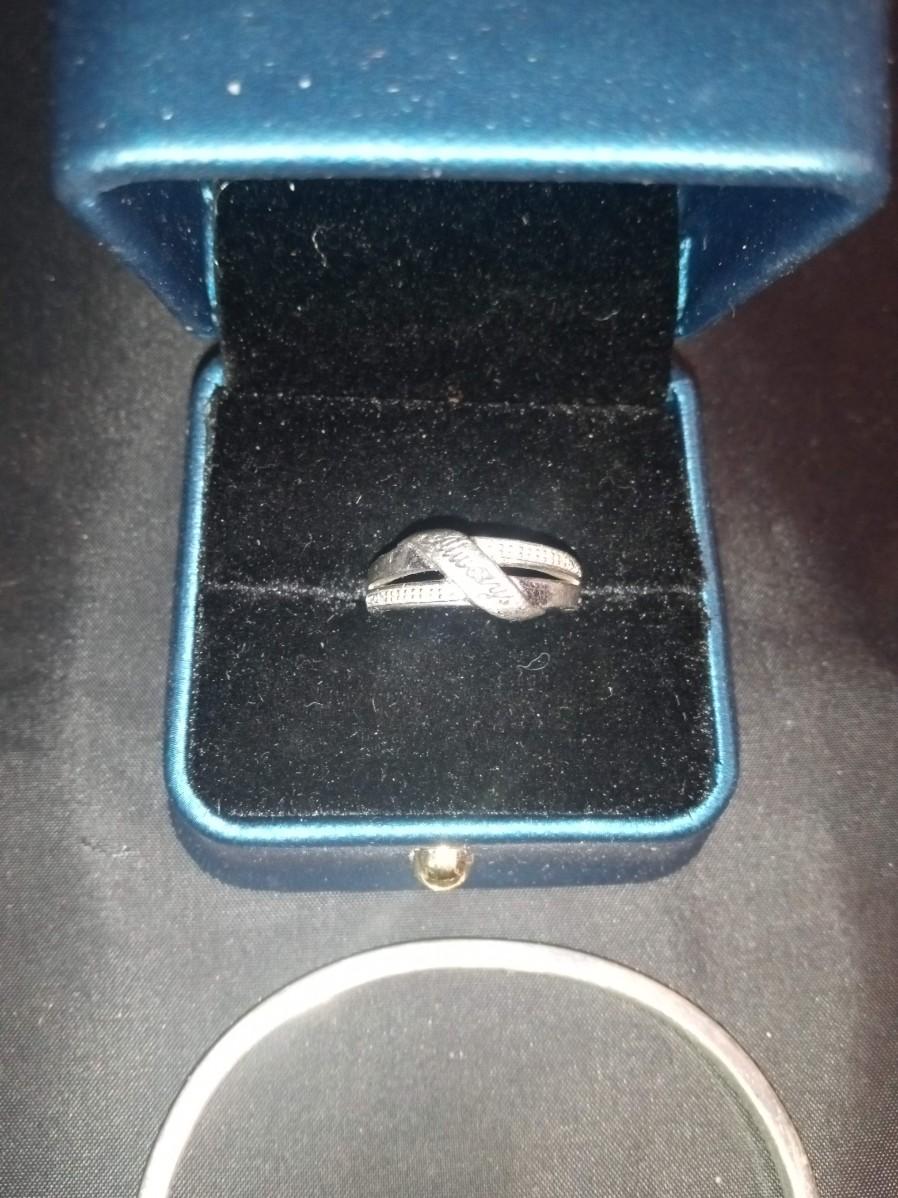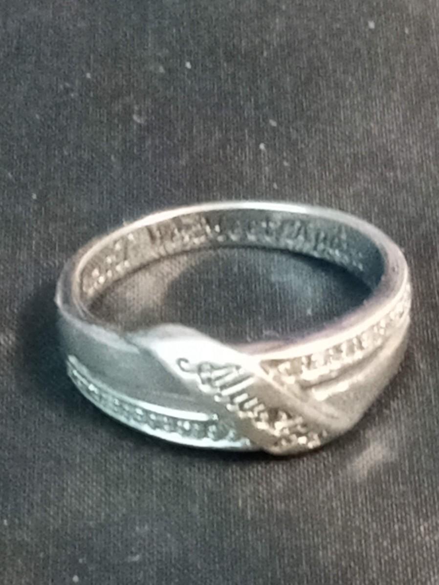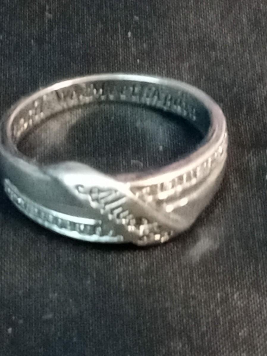 THE RING IS A SIZE 6 1/2 THE INSIDE READS, "UNTIL WE MEET AGAIN" AND THE OUTSIDE FACE OF THE RING READS, "ALWAYS" IT WEIGHS 3.96g