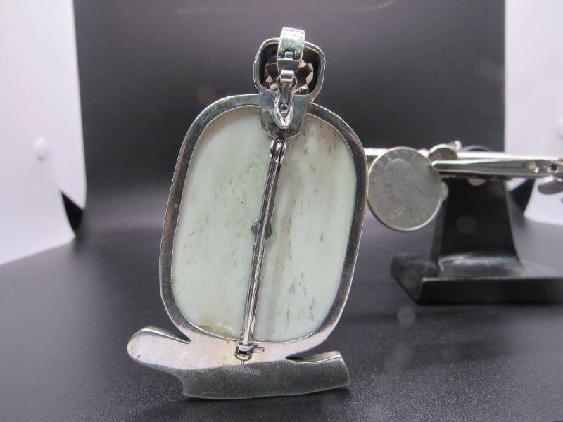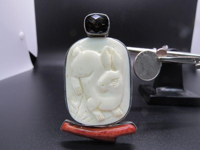 Sterling Silver Amy Kahn Russel AKR Carved Rabbit Enhancer Pendant Brooch Coral Smoke Topaz
