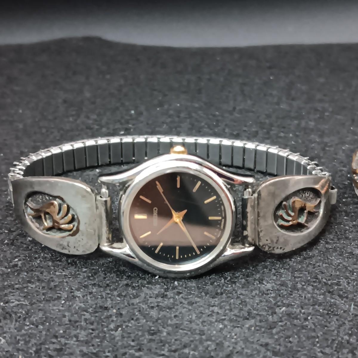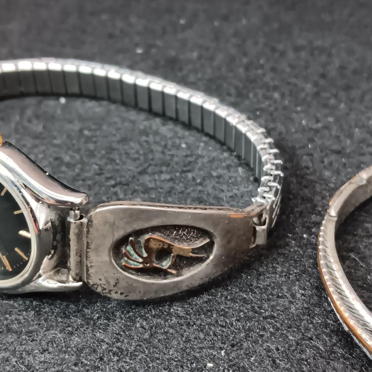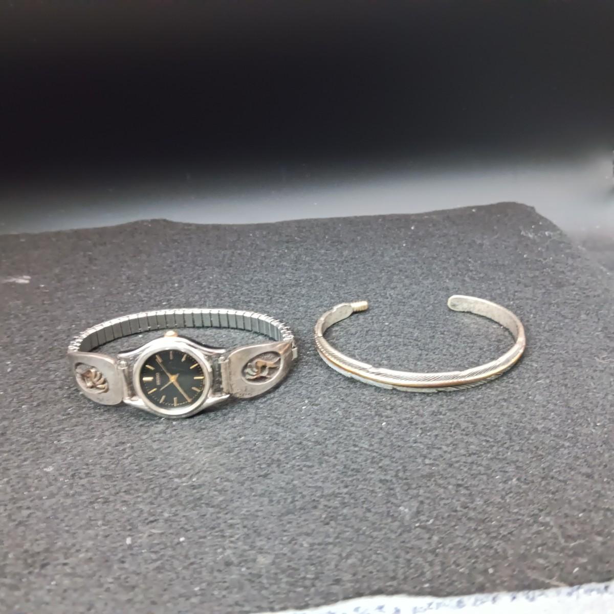 STERLING SILVER AND 14K WATCH BAND MARKED WM ROGERS AND STERLING BRACELET MARKED H MACE
