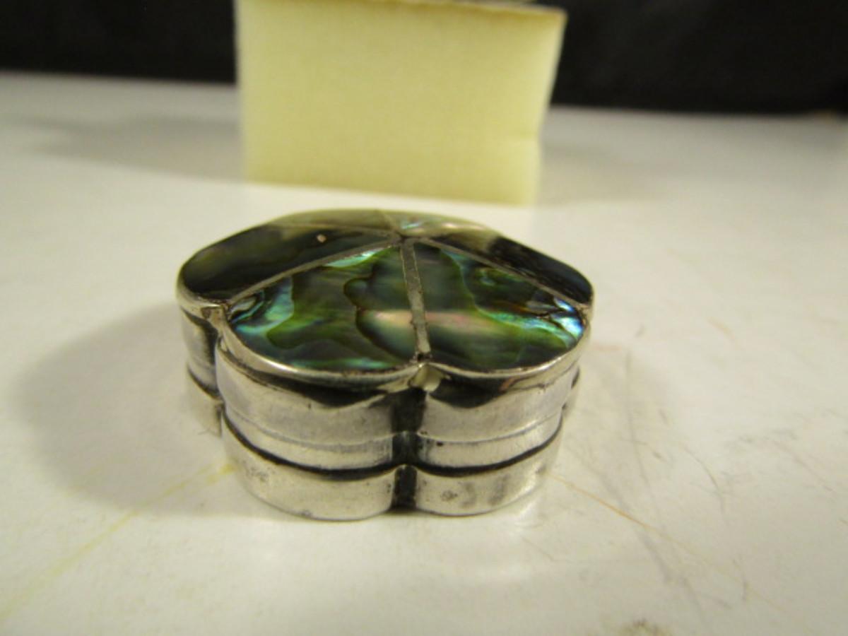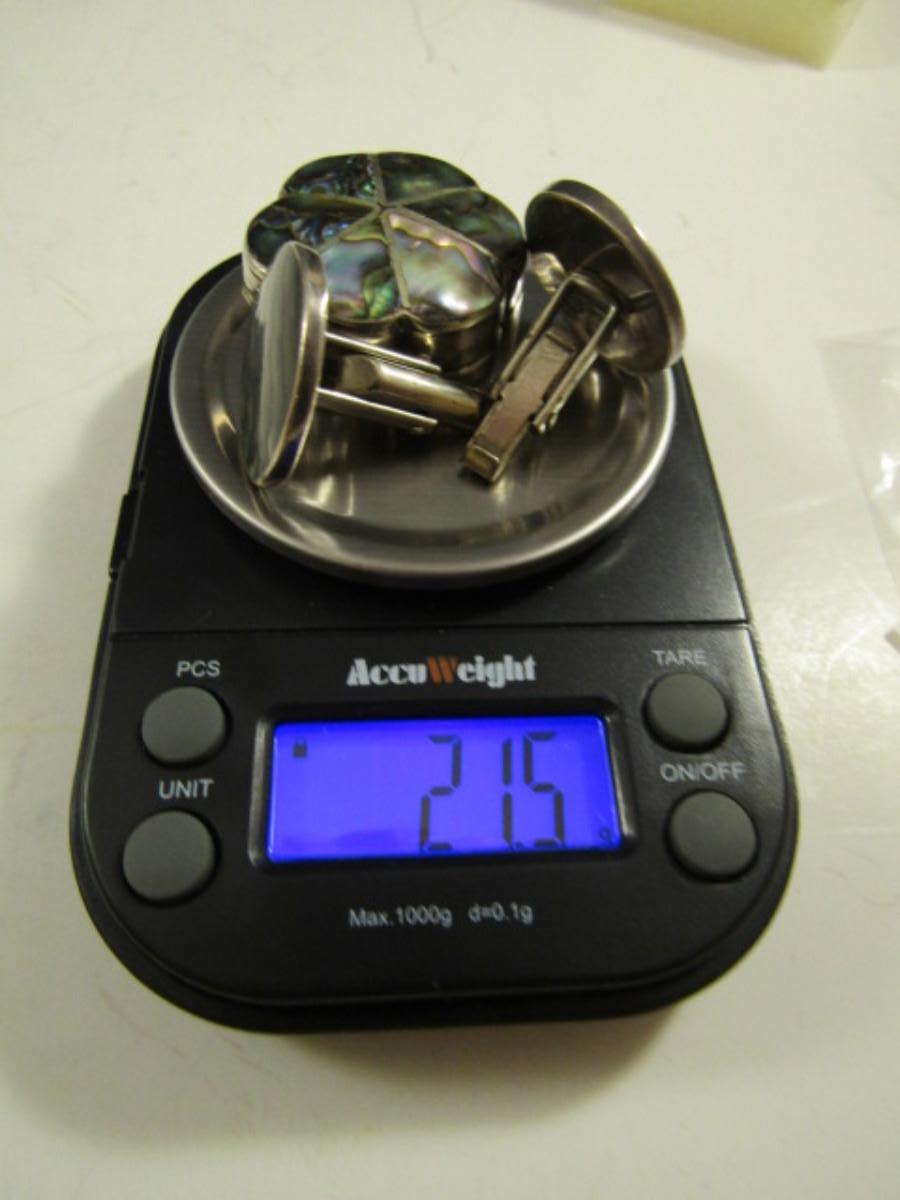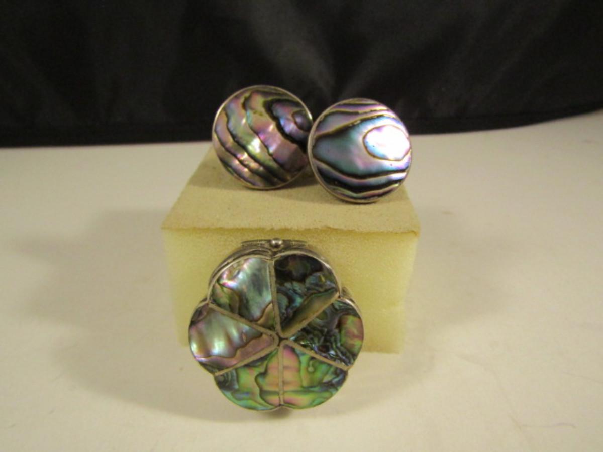 Sterling Silver and Abalone Accessories- Pill Box and Cuff Links- Approx 21.5 Grams (#25)
