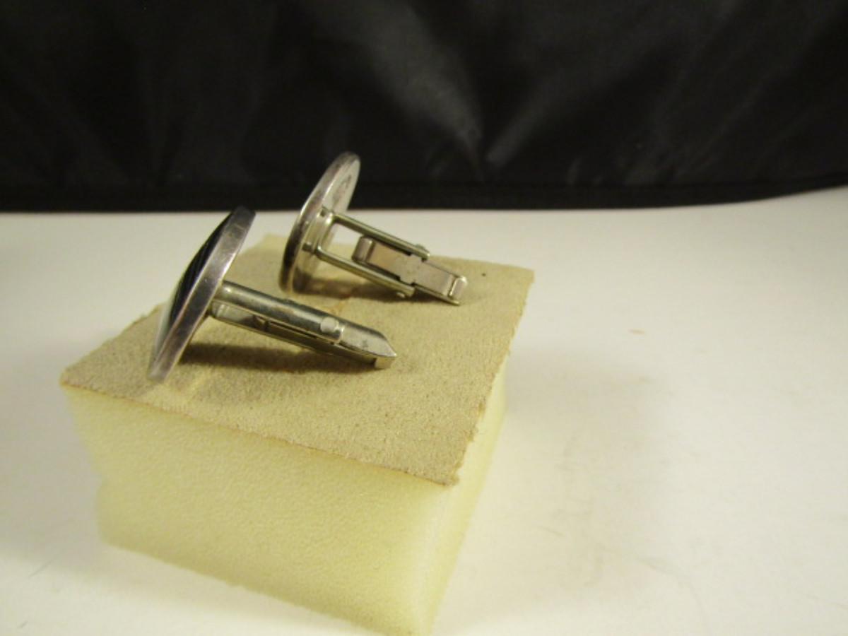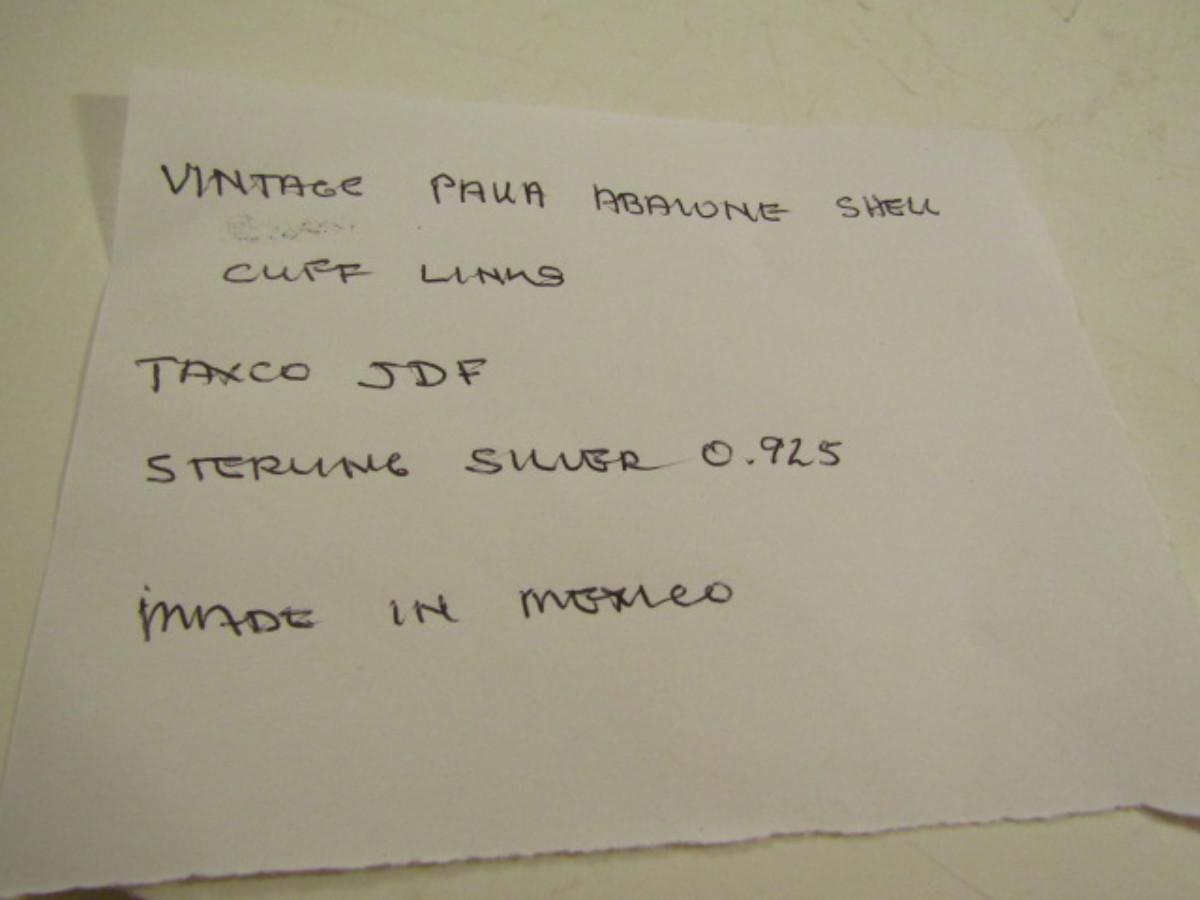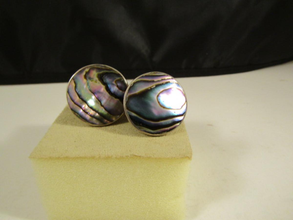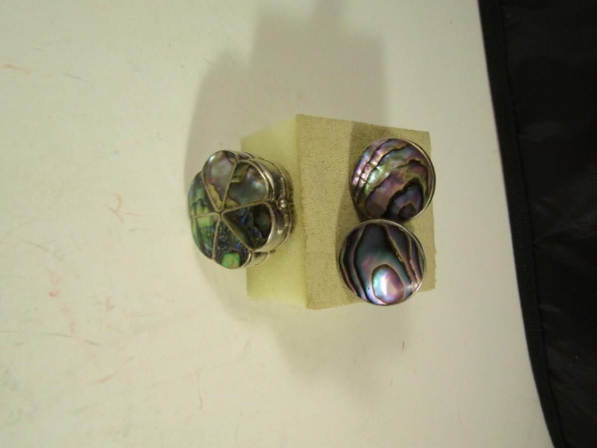 Sterling Silver and Abalone Accessories- Pill Box and Cuff Links- Approx 21.5 Grams (#25)