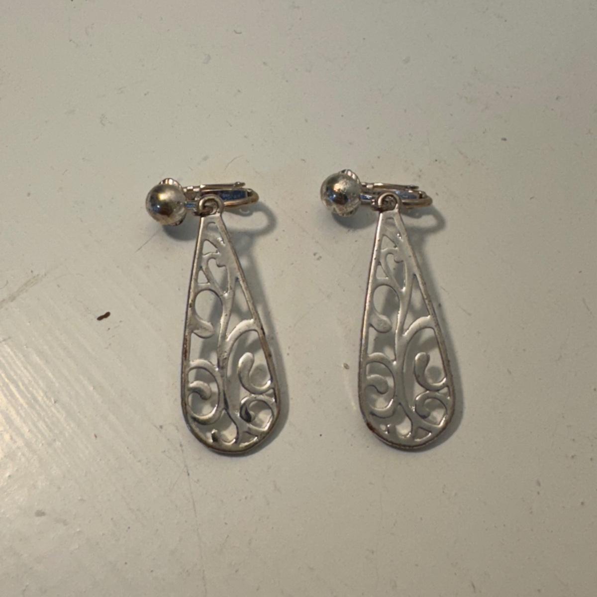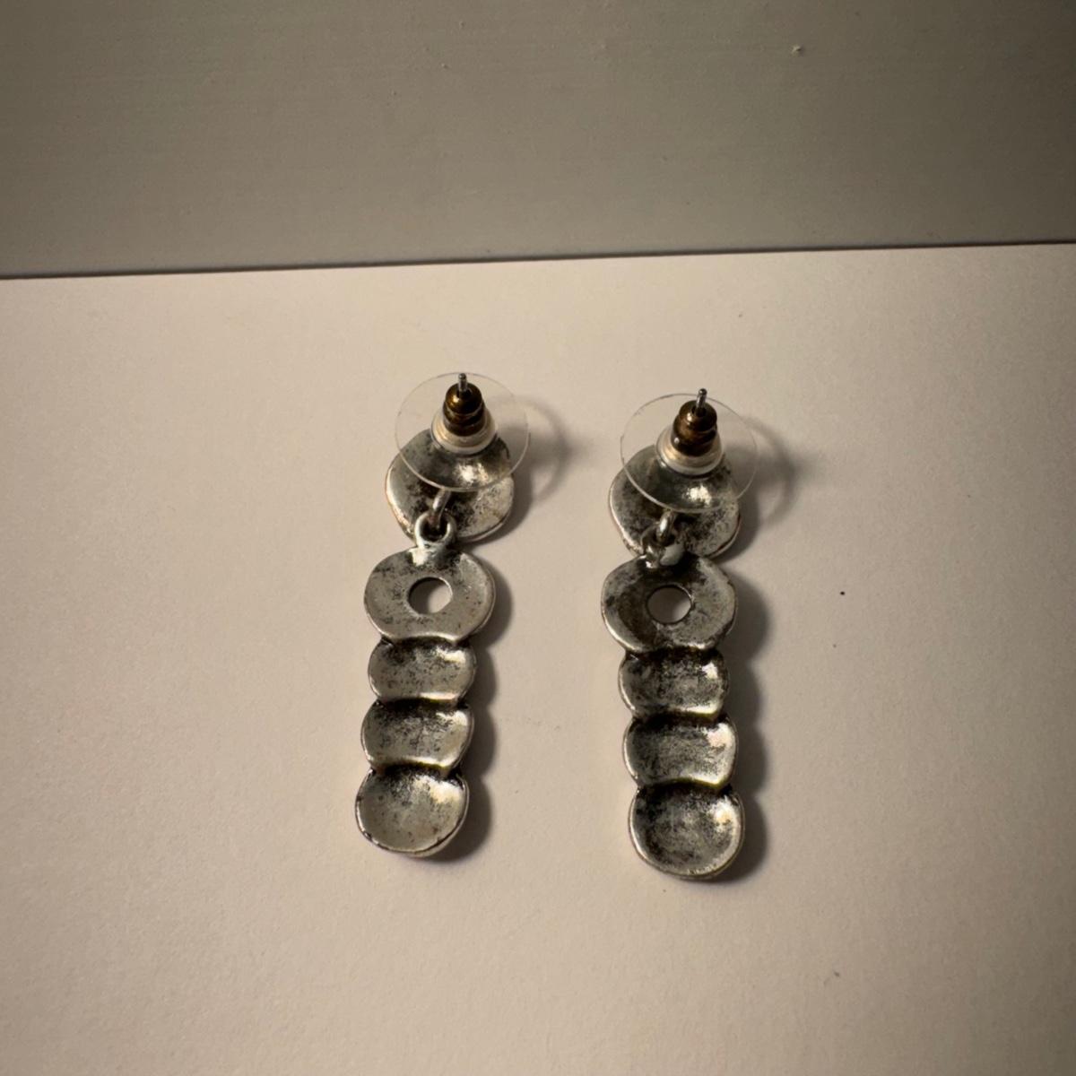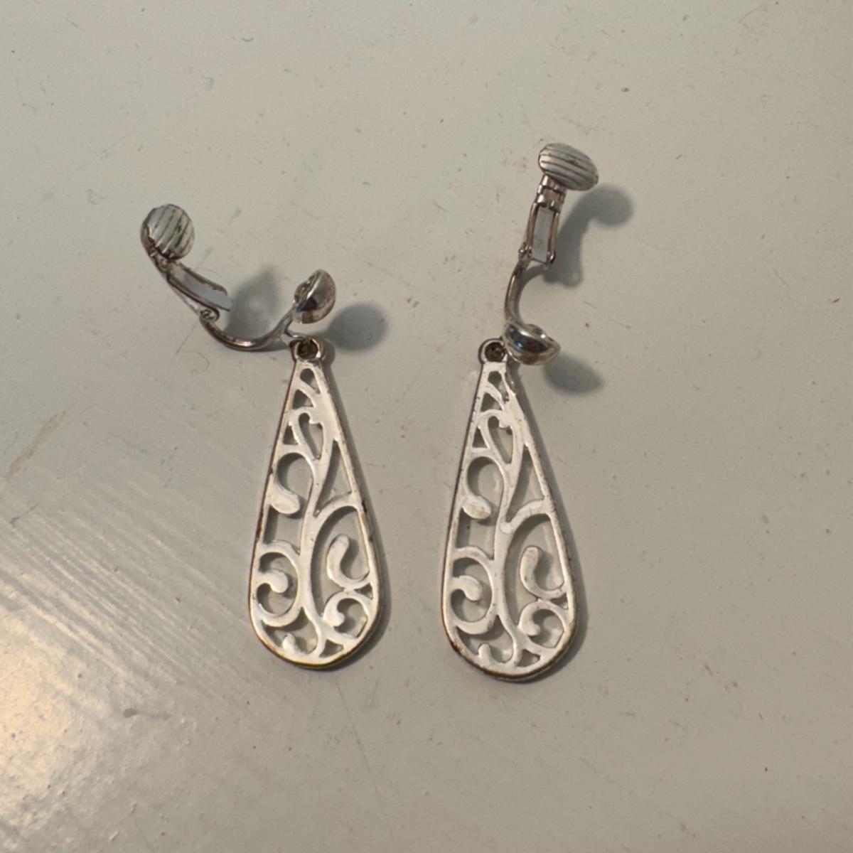 This lot includes one pair of sterling silver earrings with ameythest and zoisite w/ ruby stones and black leather accents, one pair of earrings from Ad.lib Body & Soul, one pair of multi-colored stone earrings, two clip on silver colored earrings, and one silver key ring with a turquoise stone. The key ring measures 3” x 1”H. All sales are final. No returns or refunds. Please bid accordingly. Shipping available.