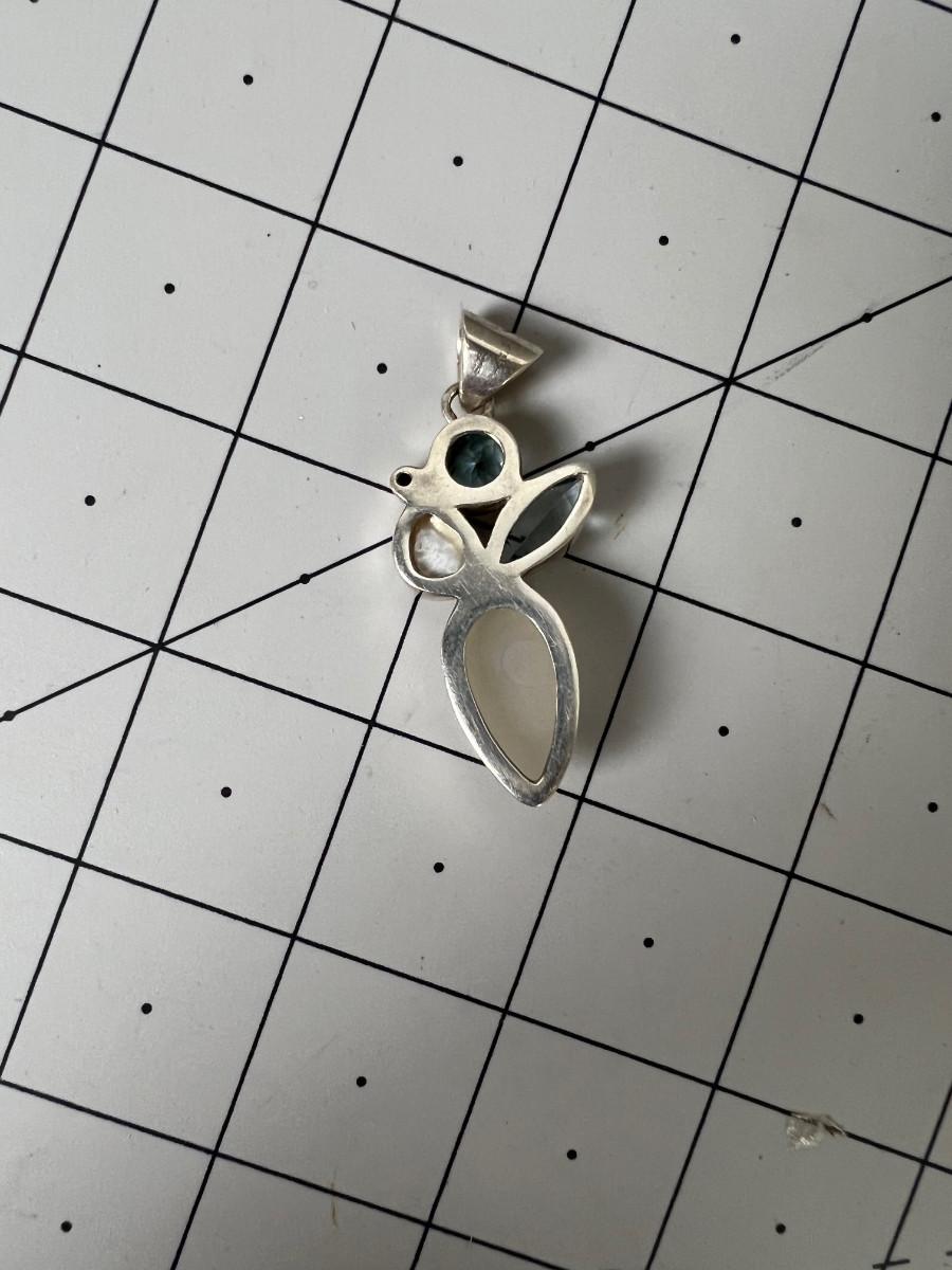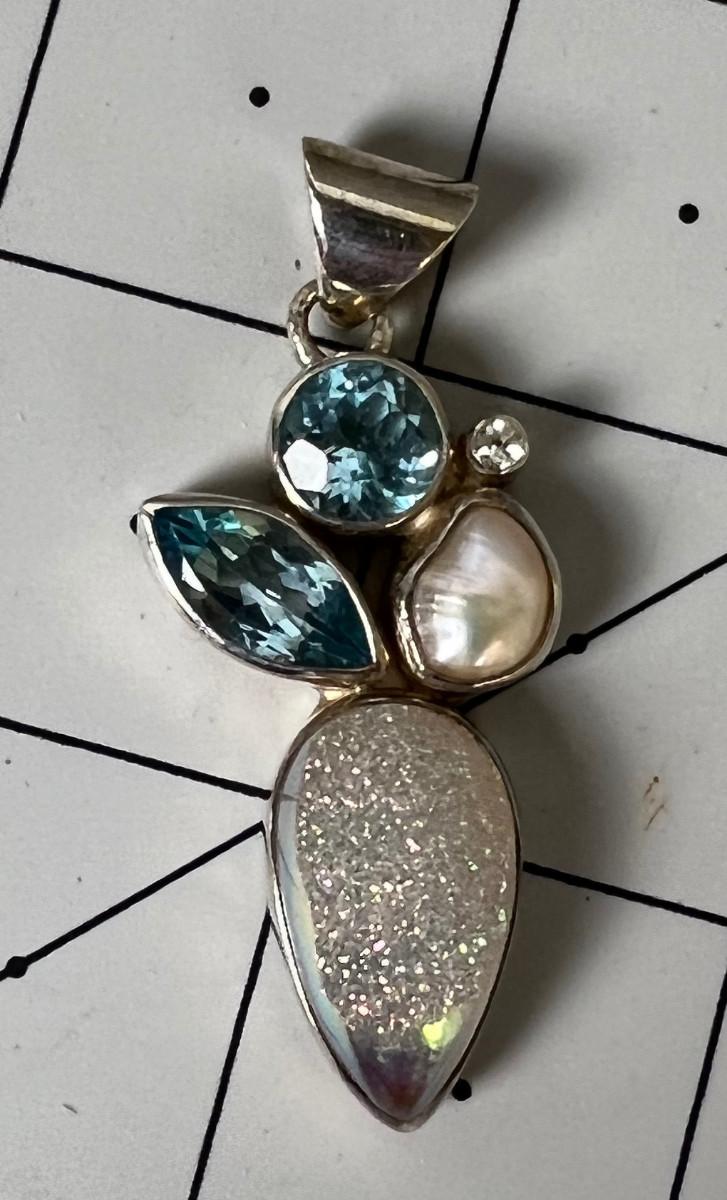 Sterling Silver and Aqua Marine Pendant 2" Long.