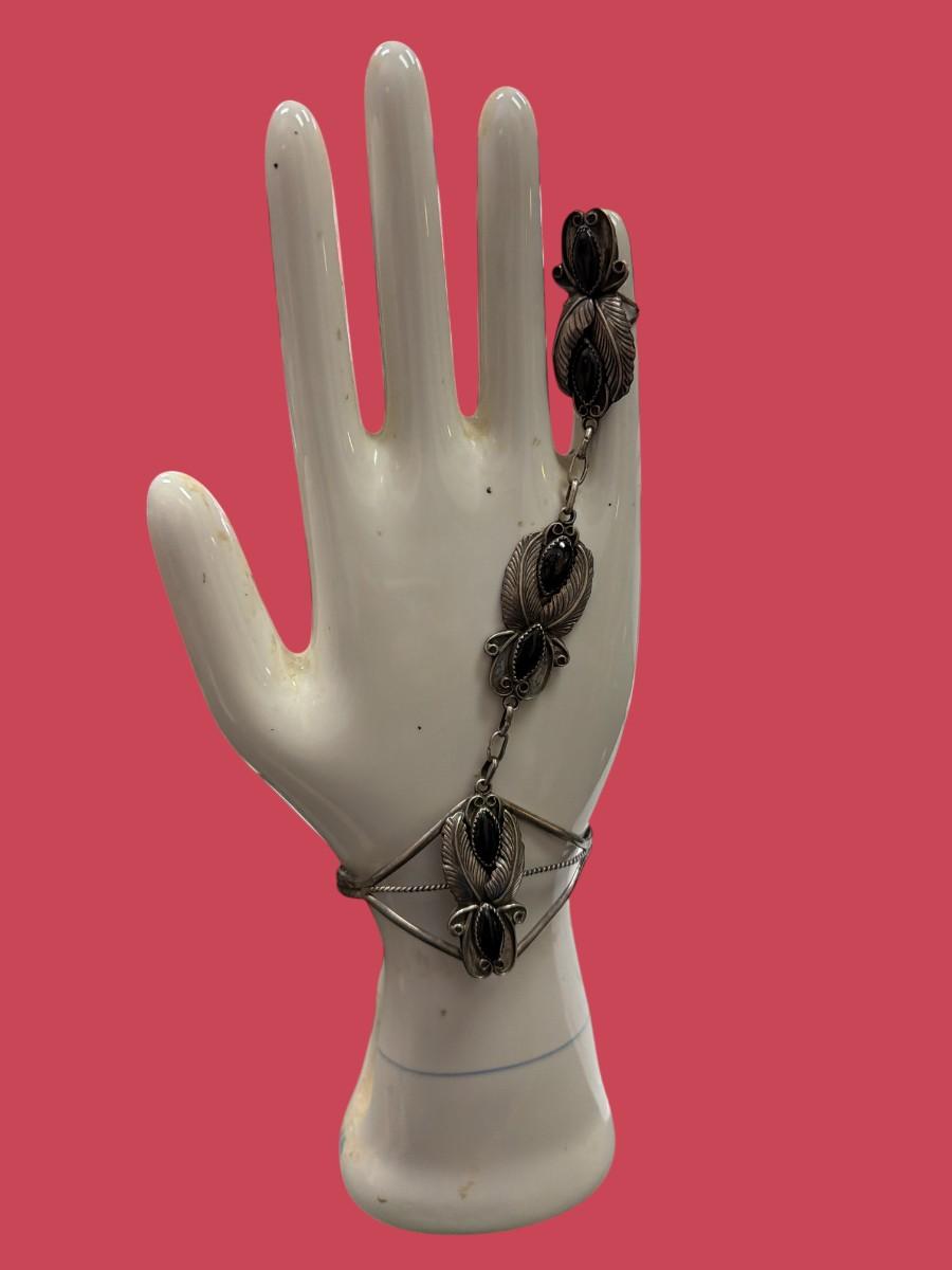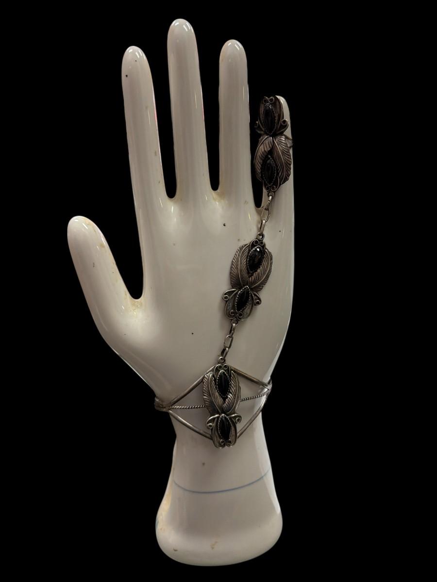 Sterling Silver And Black Onyx Navajo Slave Bracelet