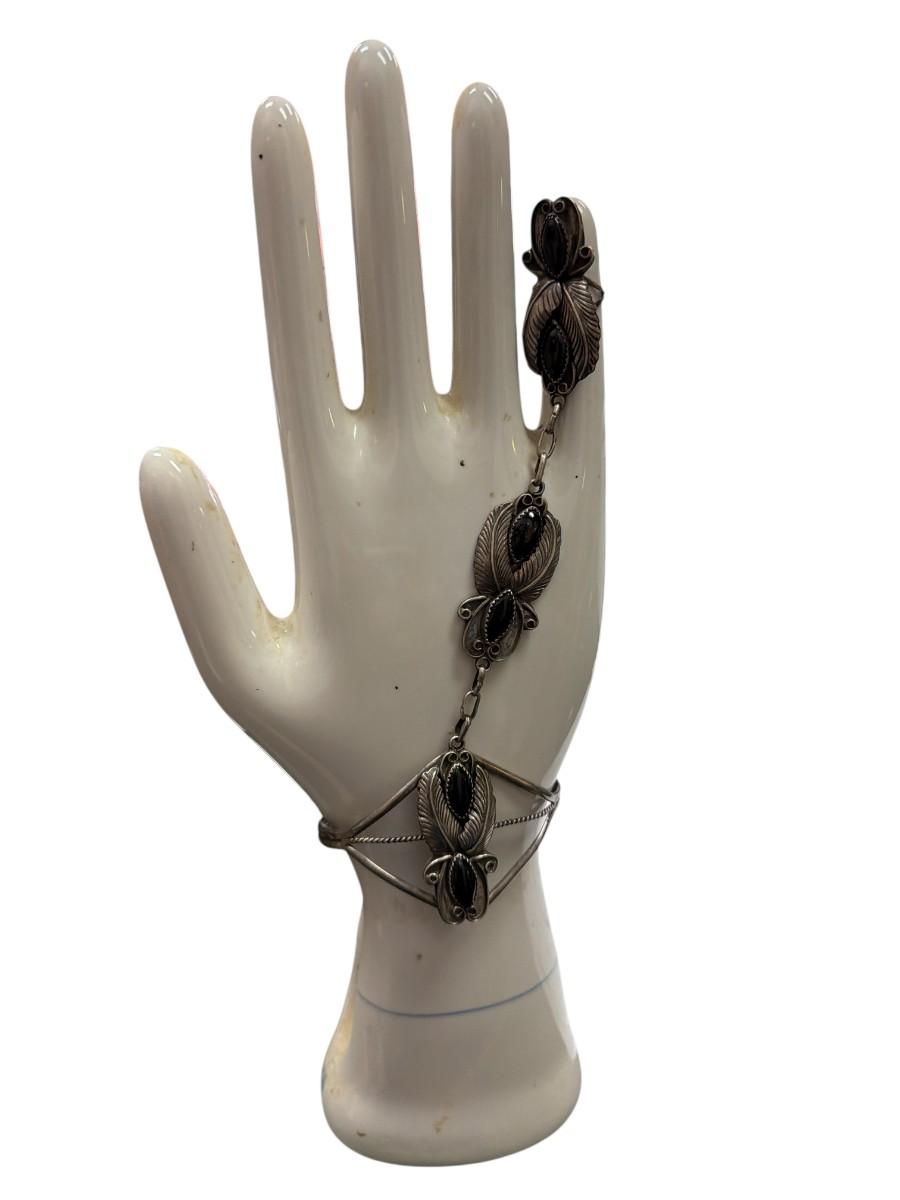 Sterling Silver And Black Onyx Navajo Slave Bracelet Total weight 300 grams