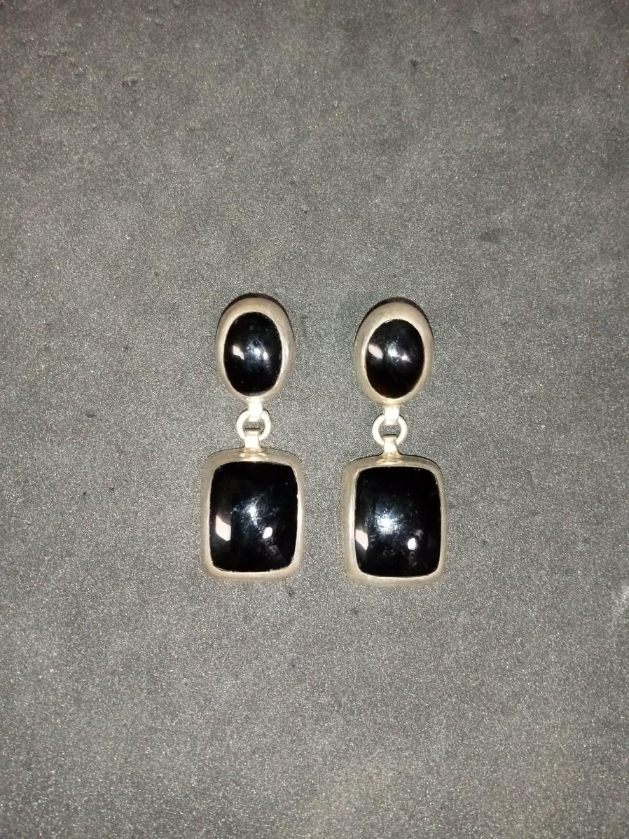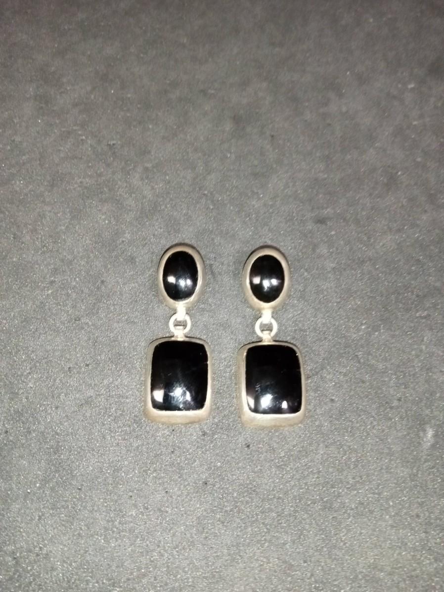 STERLING SILVER AND BLACK ONYX PIERCED EARRINGS