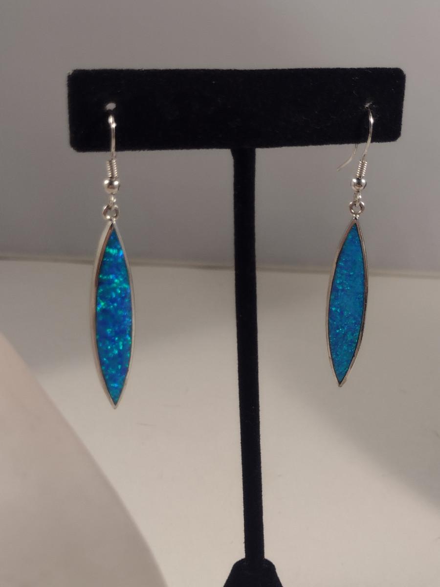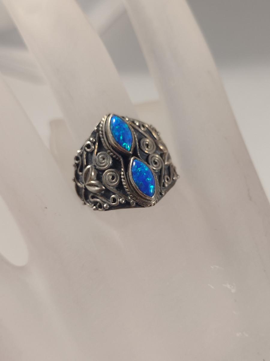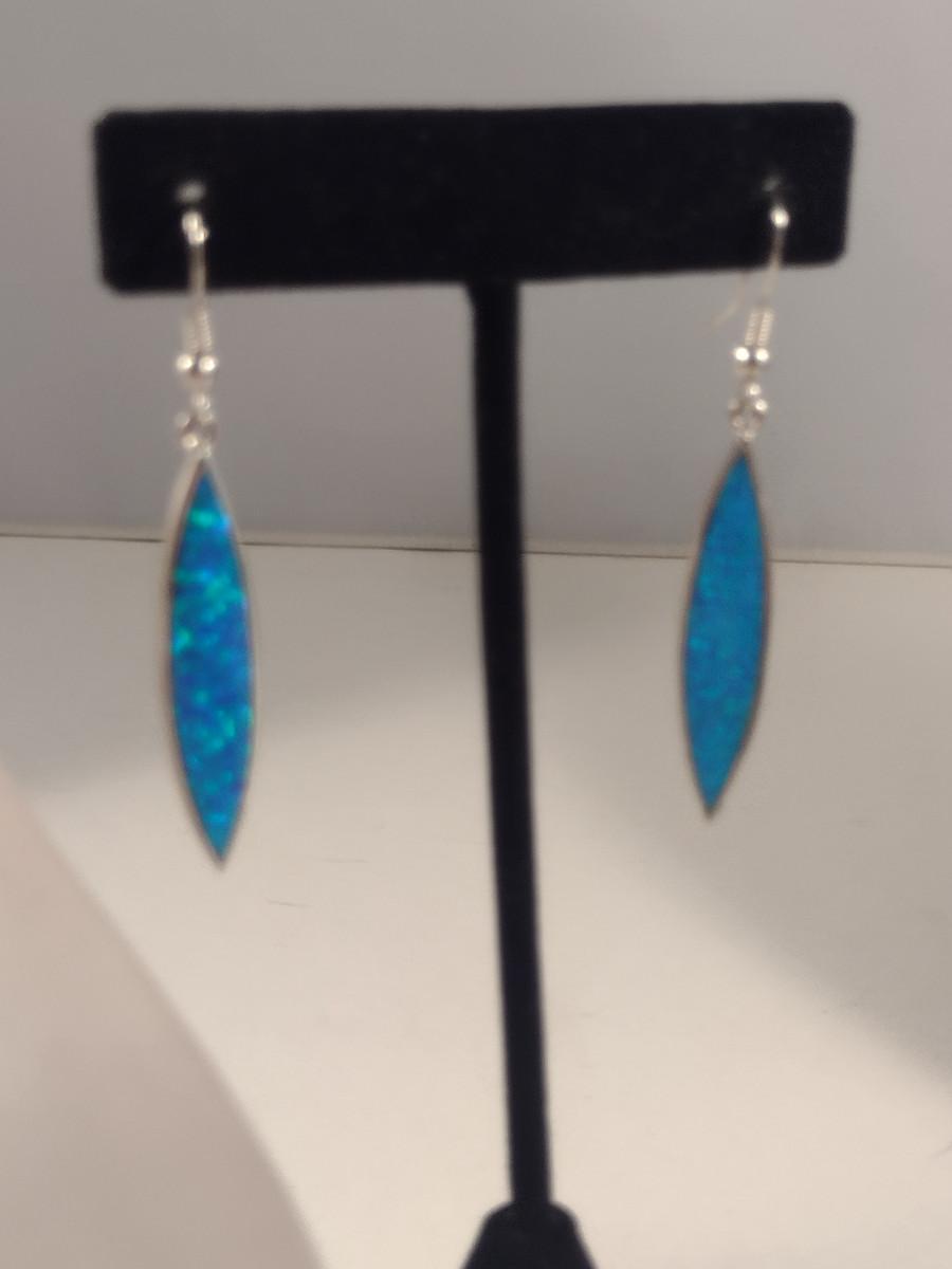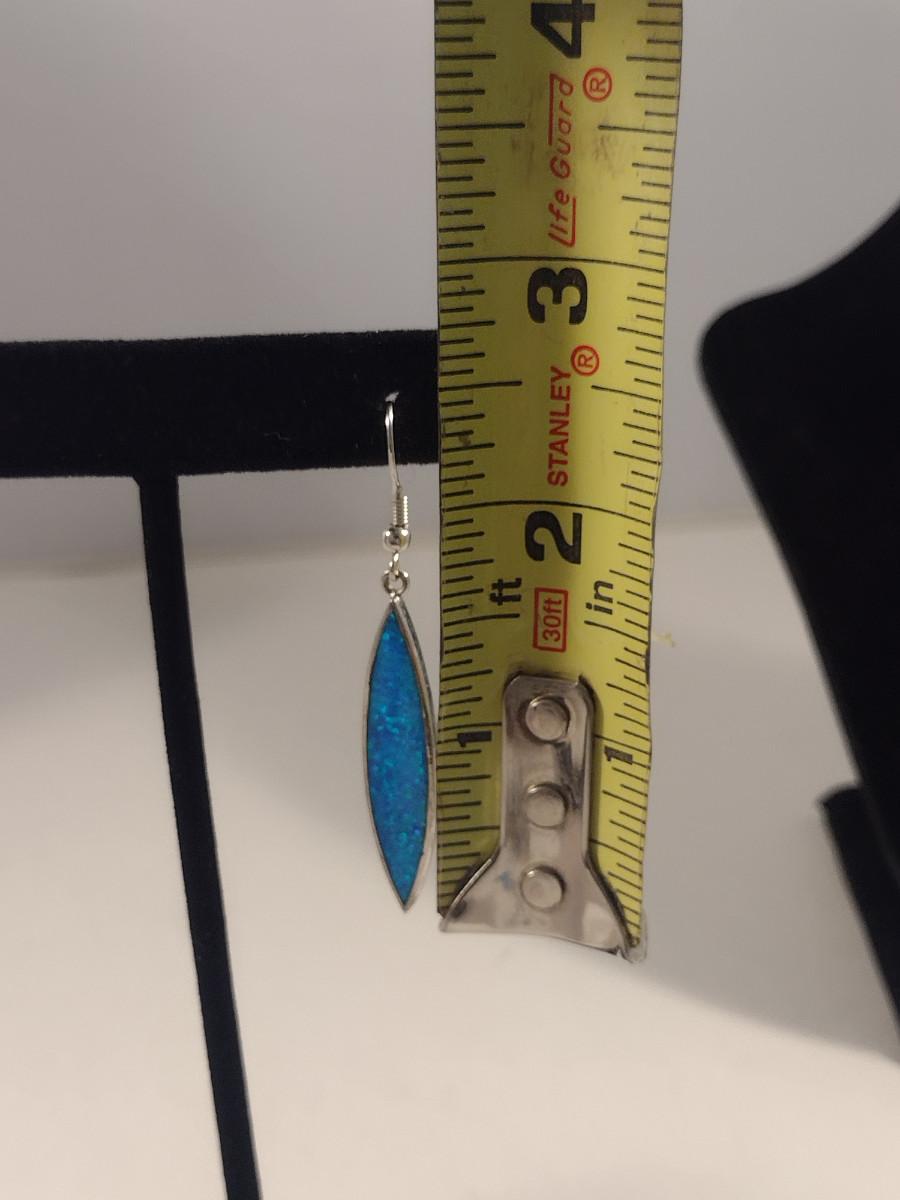 Sterling Silver and Blue Stone Ring and Earrings (#39). Stone is possibly blue opal. Approx total weight 12.0 grams.