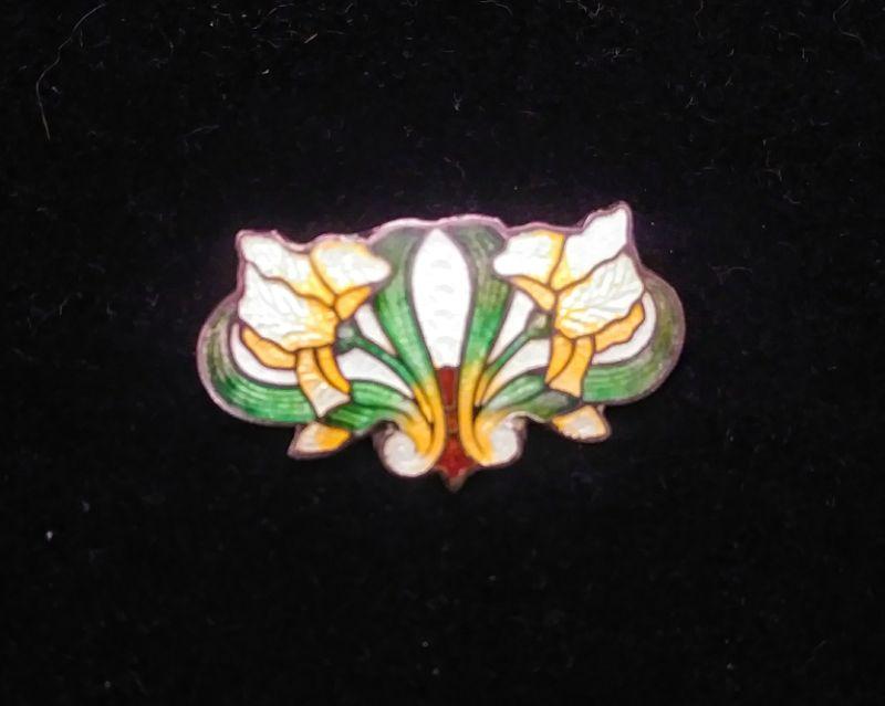 Sterling and Enamel Art Noveau Brooch 3/4"L x 1 1/4"W