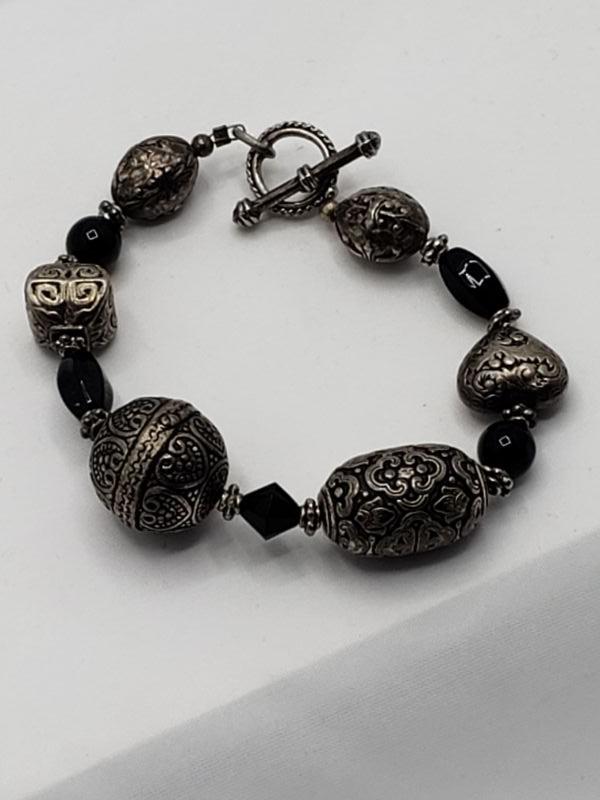 Sterling silver and glass beaded bracelet