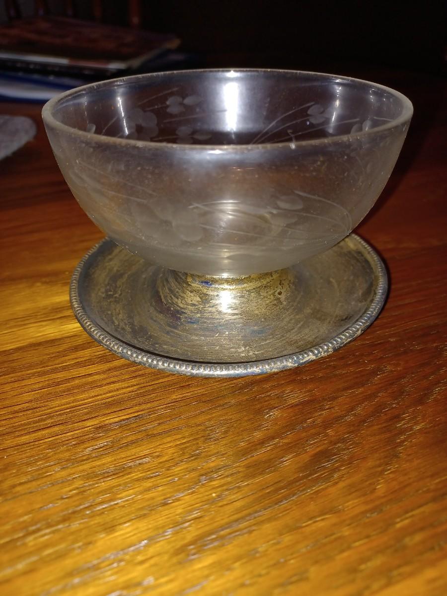 sterling silver and glass etched butter bowl