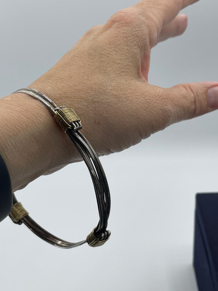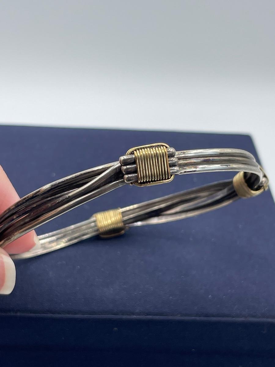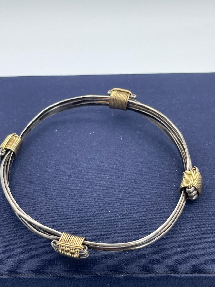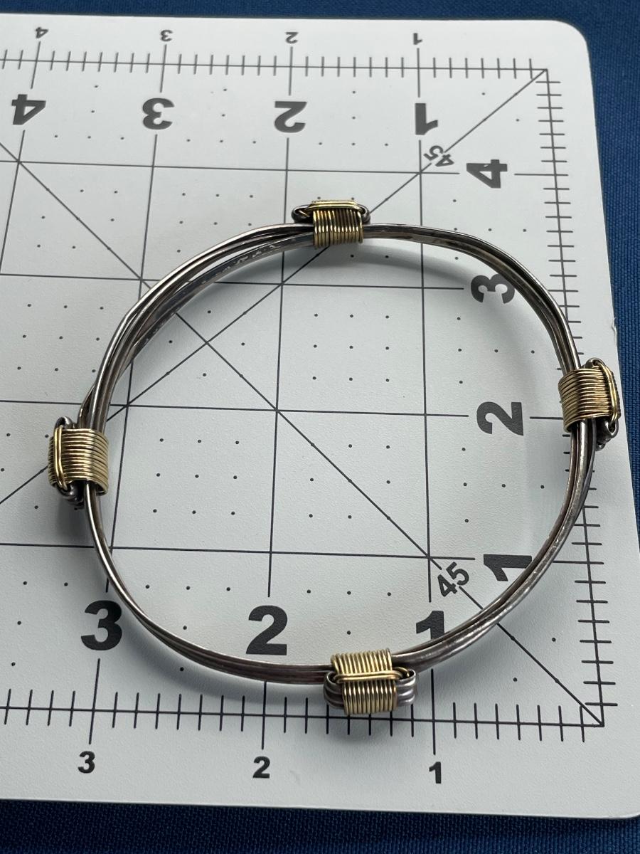 Very large 3 inch diameter bangle. Artist made. Sterling and 12/20 gold-filled metals.
