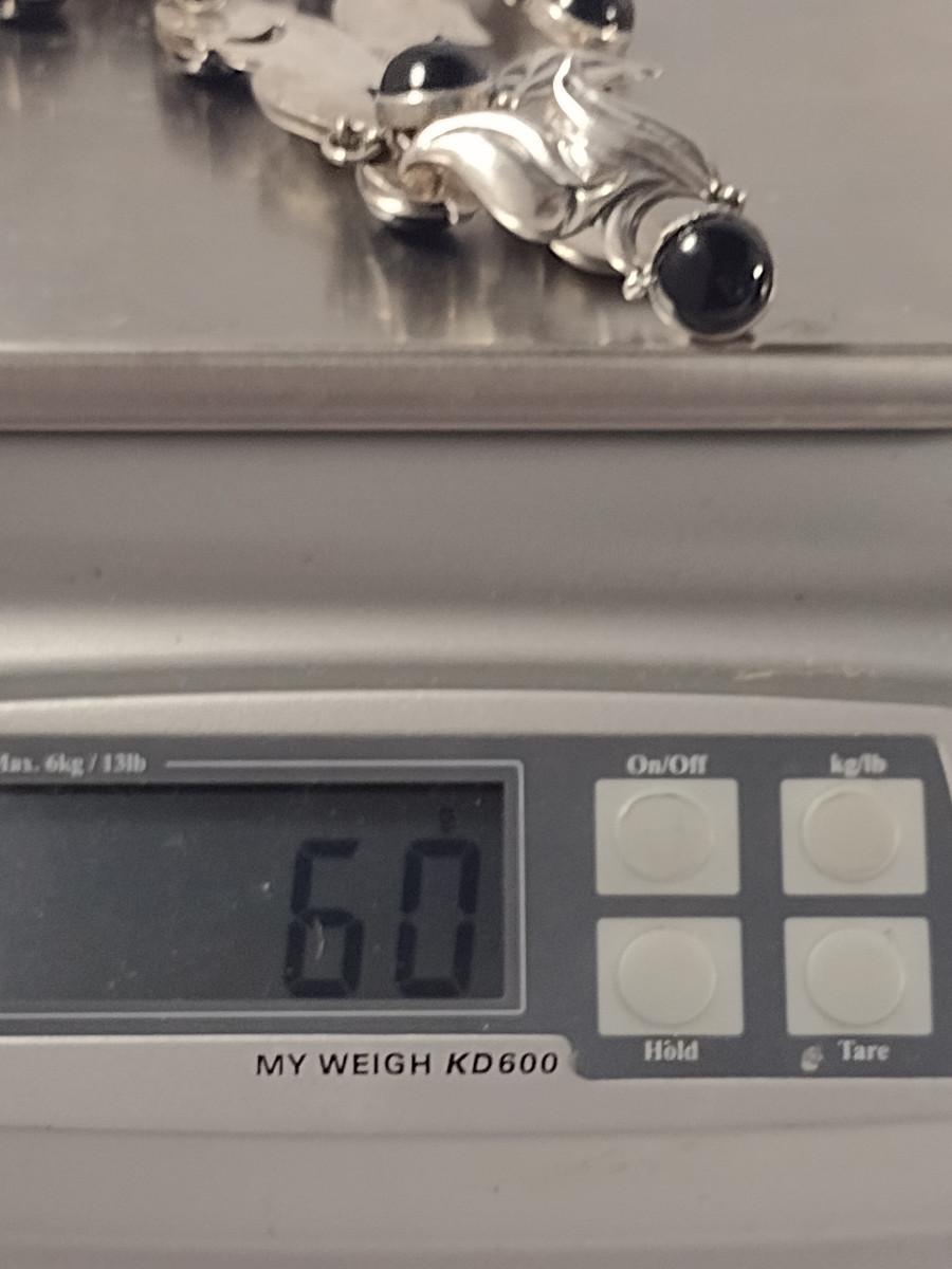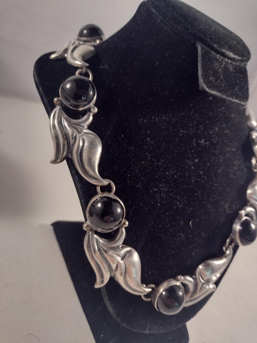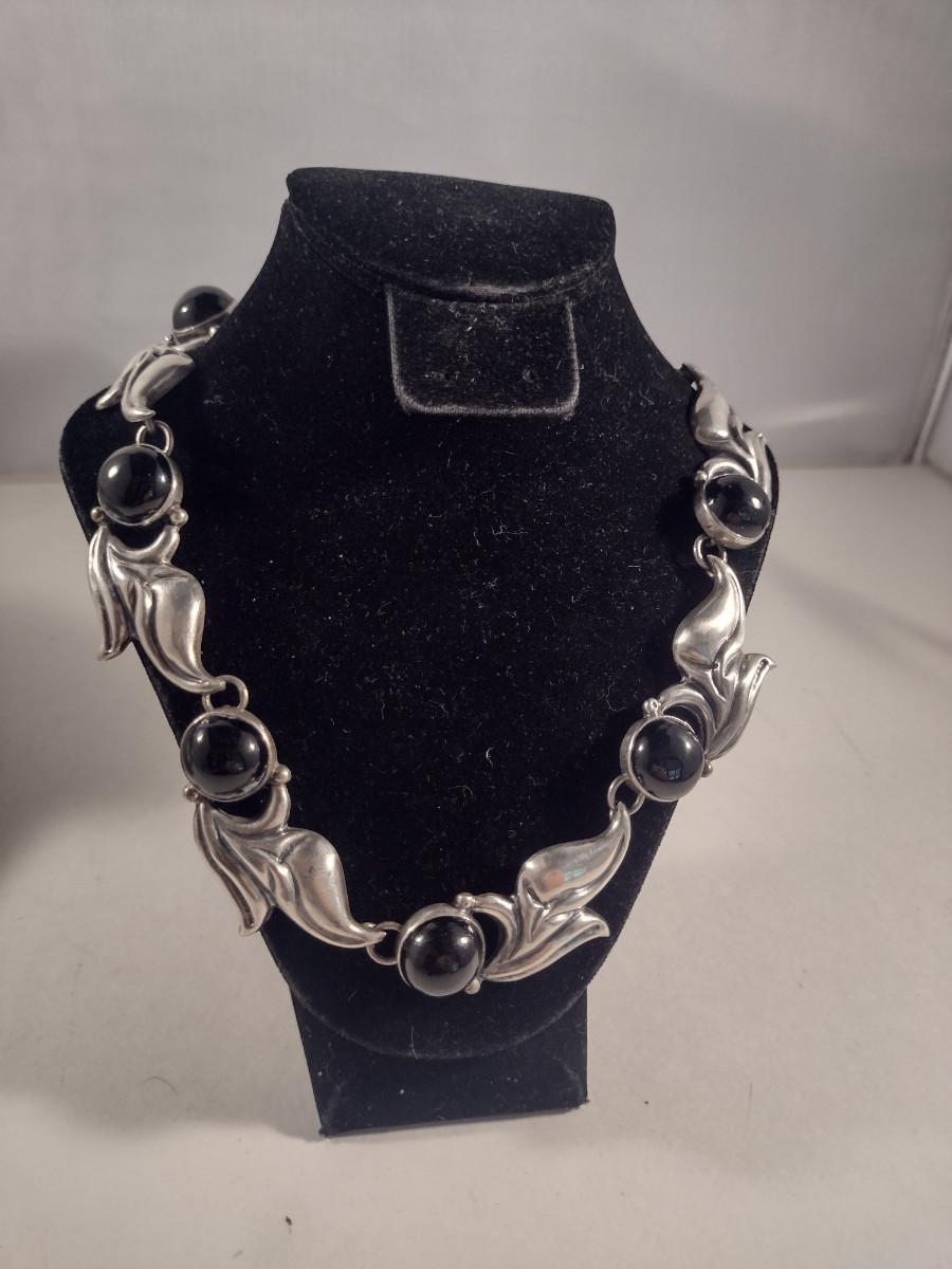 Sterling Silver and Onyx Necklace- 16" Long- Approx Weight 60 Grams (#300)