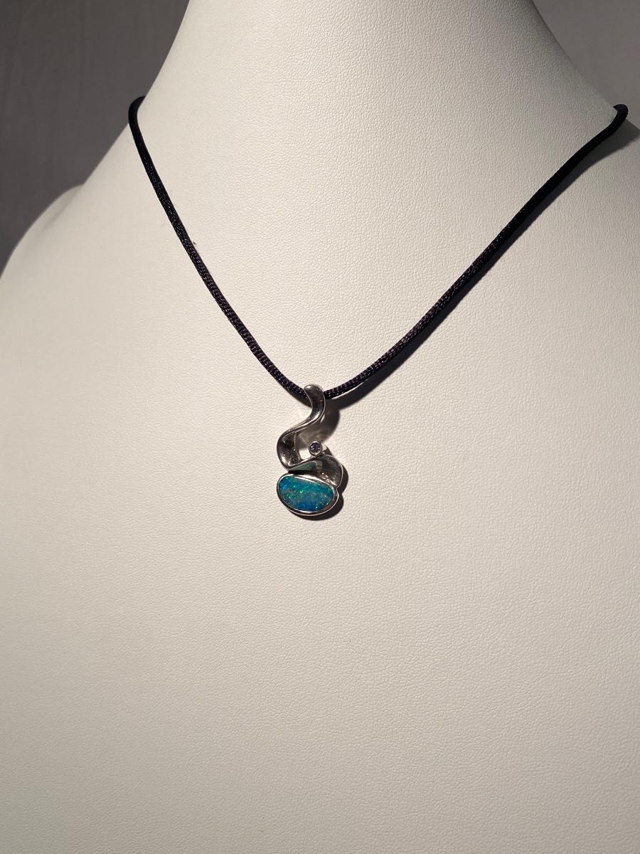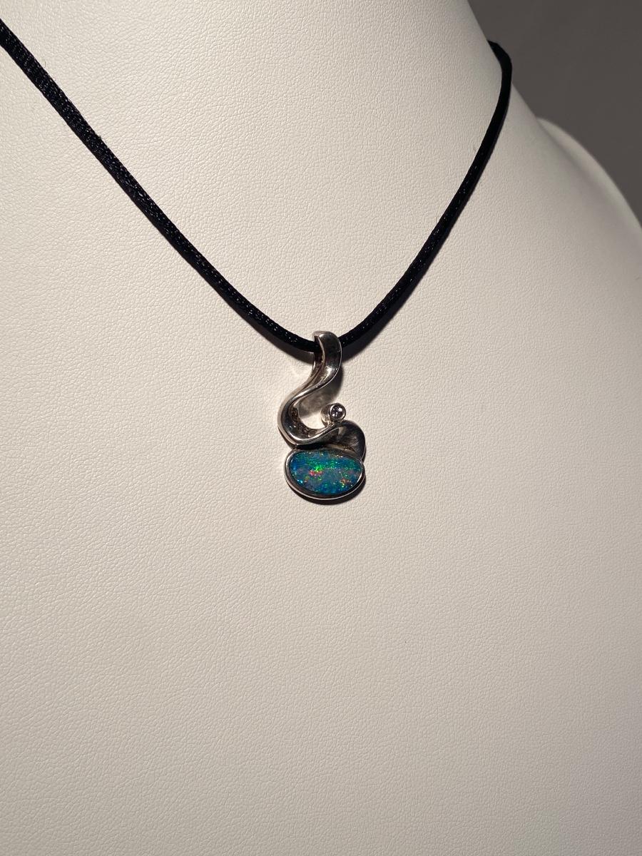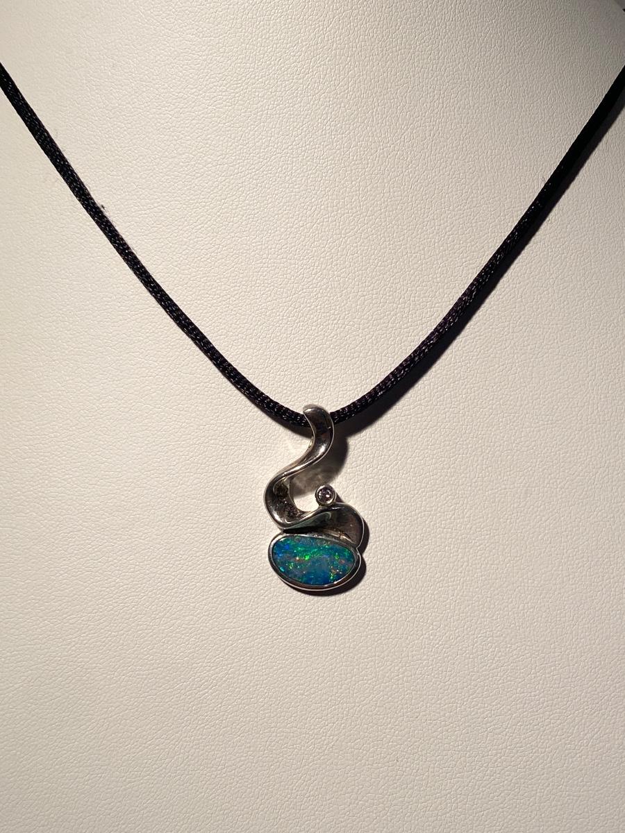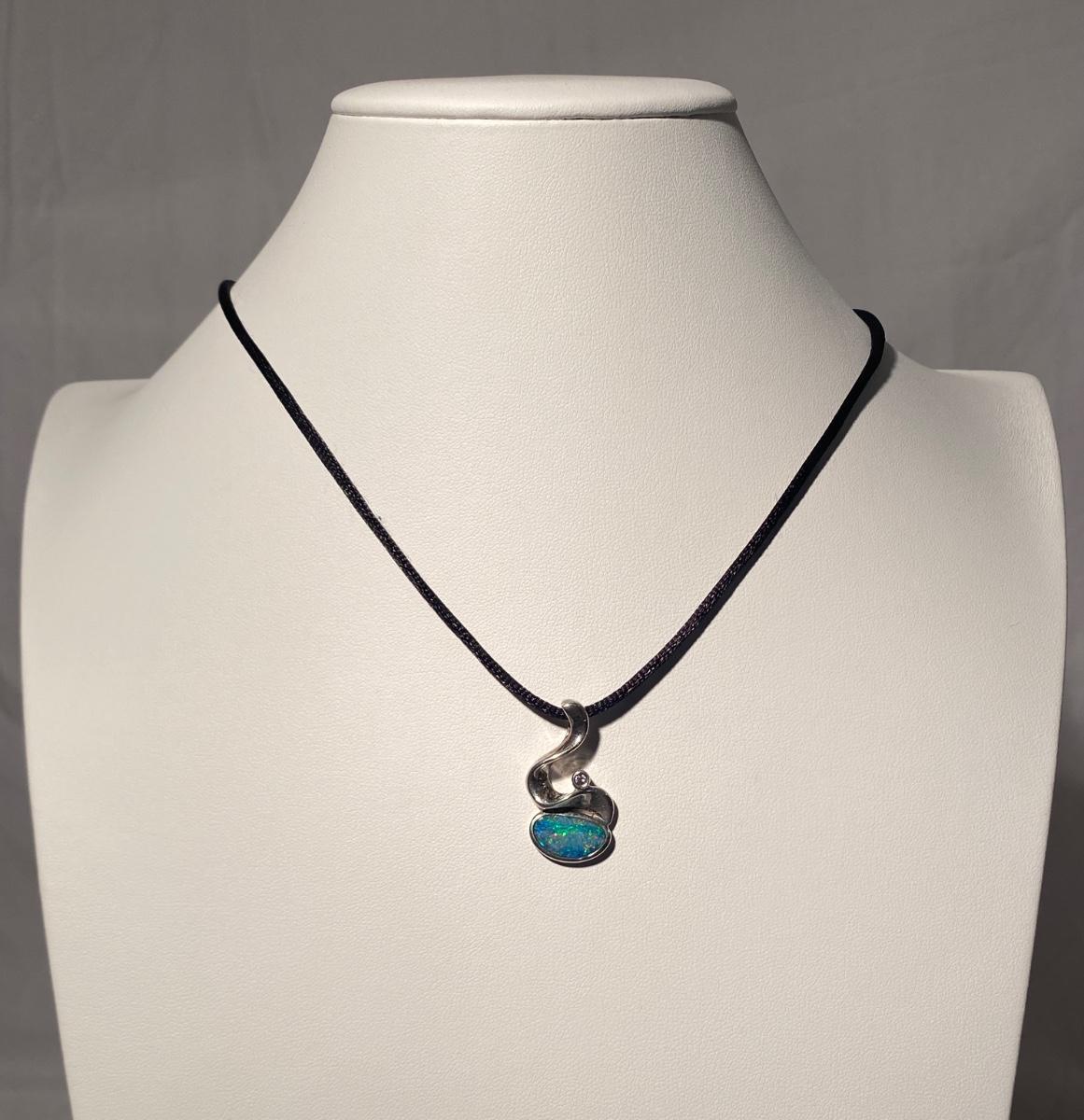Sterling Silver and Opal pendant necklace. Marked. Preowned and sold as is