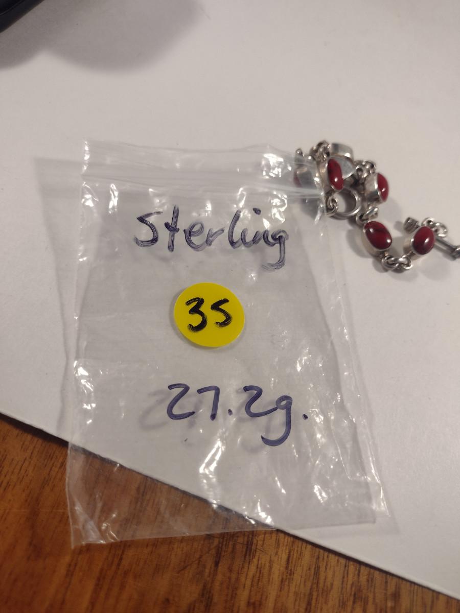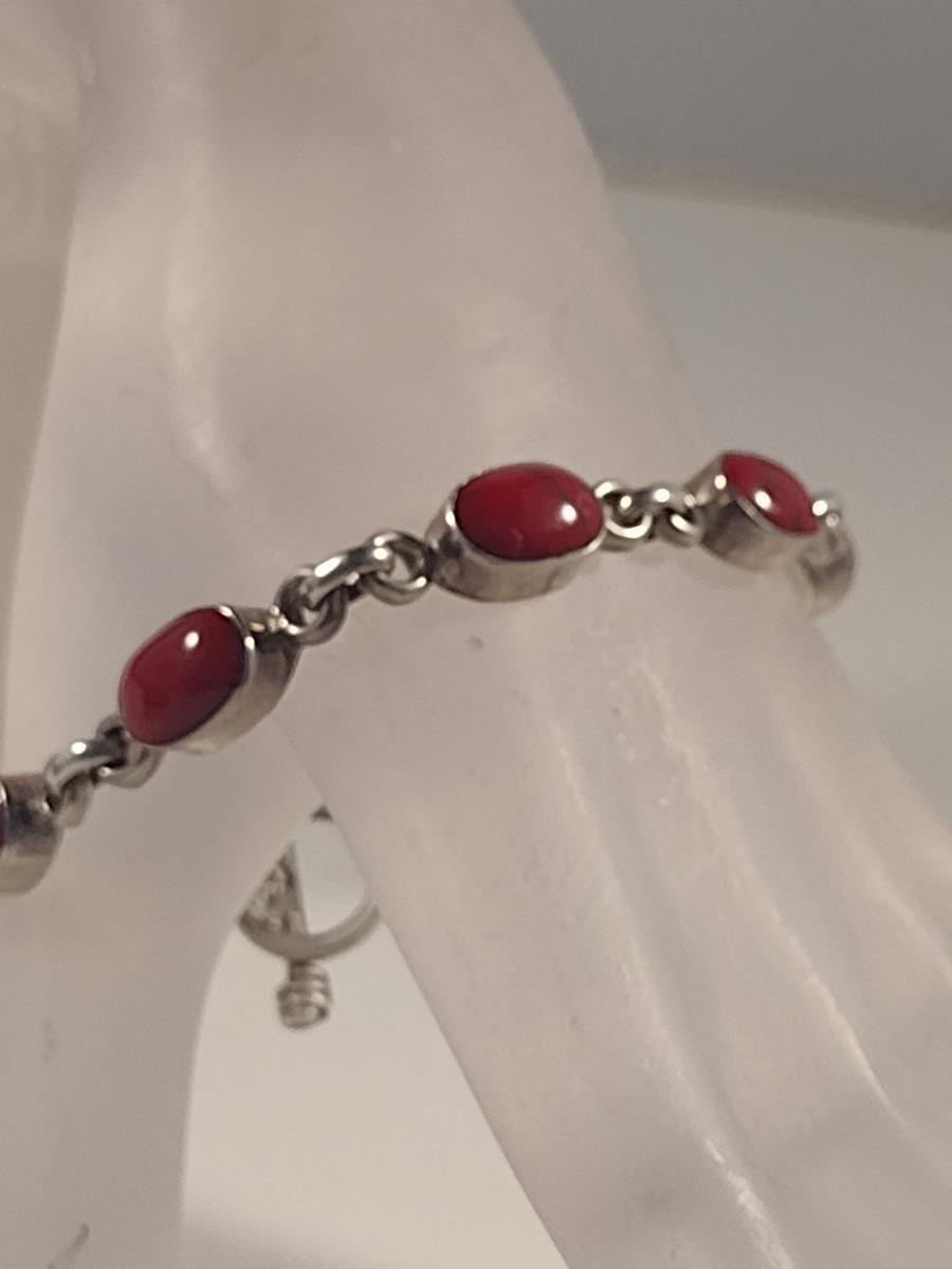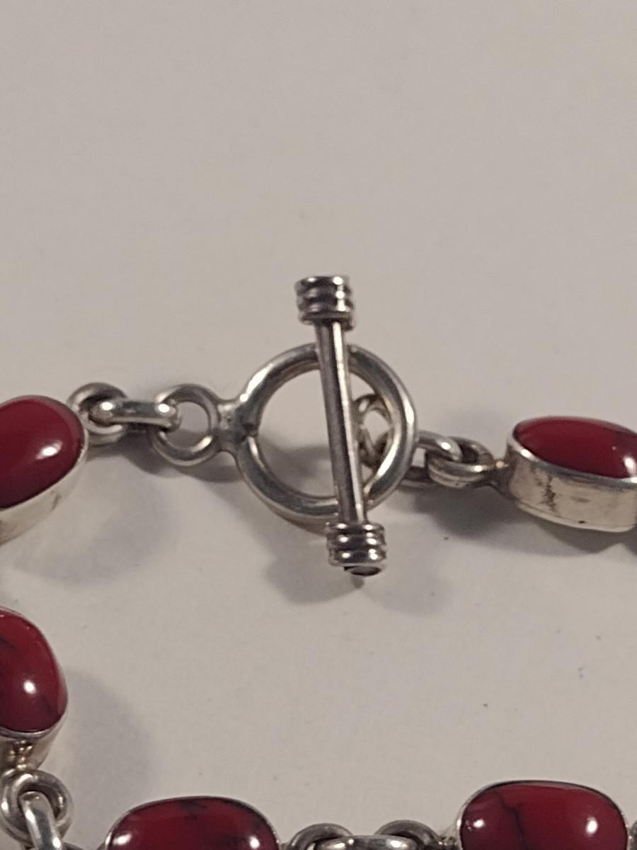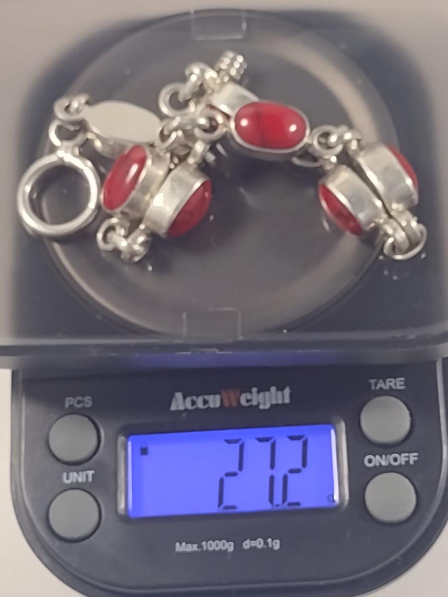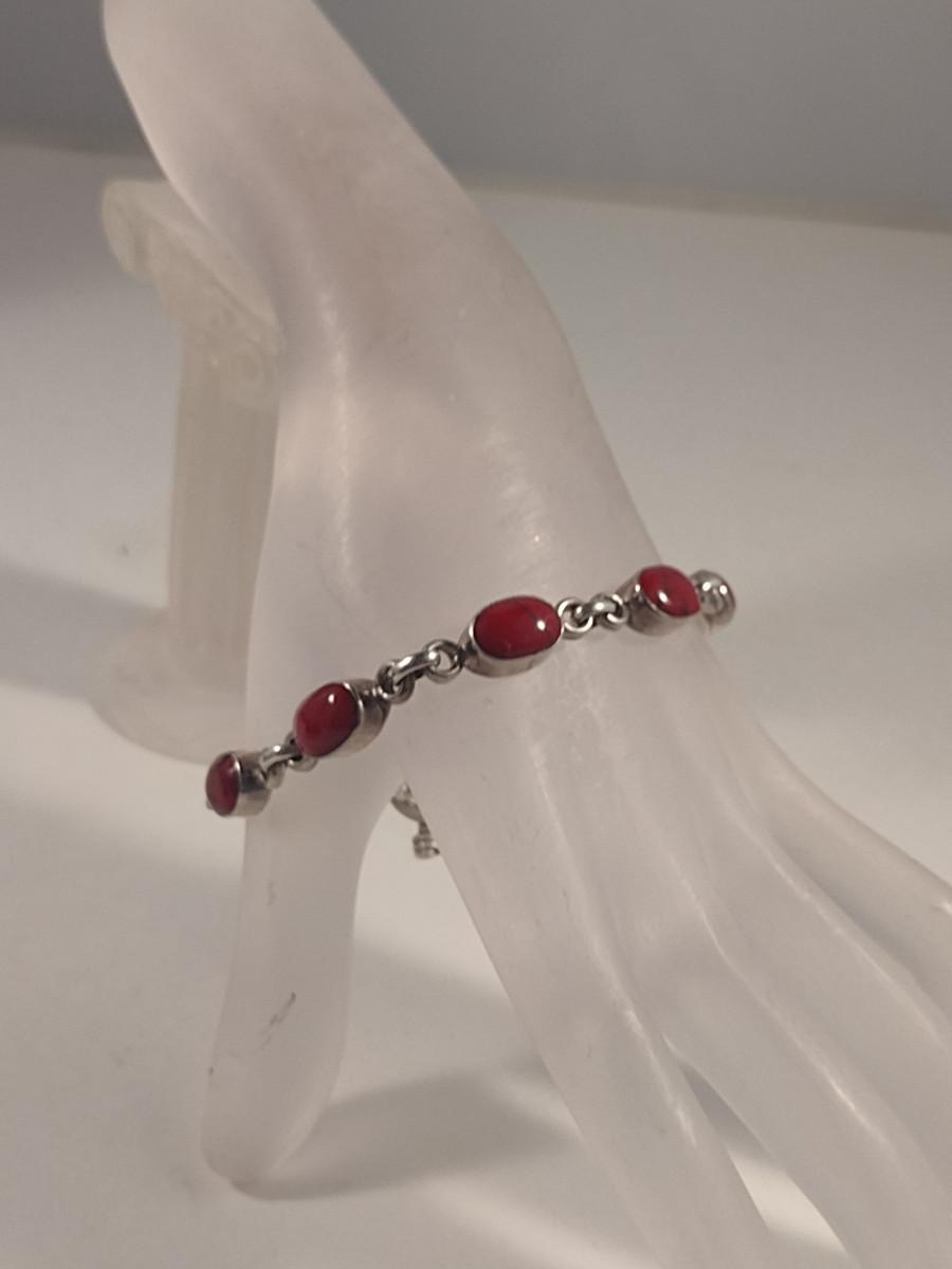 Sterling Silver and Red Stone Bracelet- Approx Total Weight 27.2 Grams (#35). Stone is possibly red corral.
