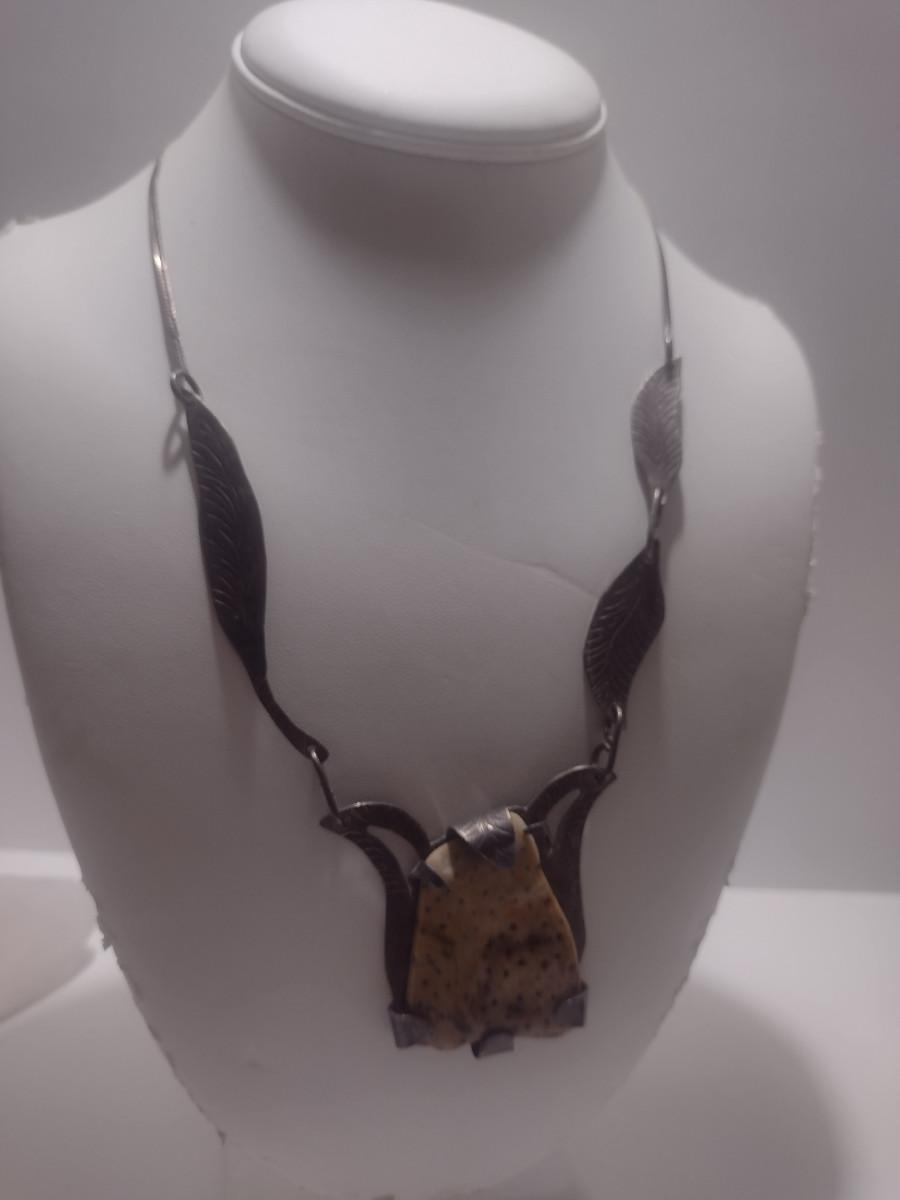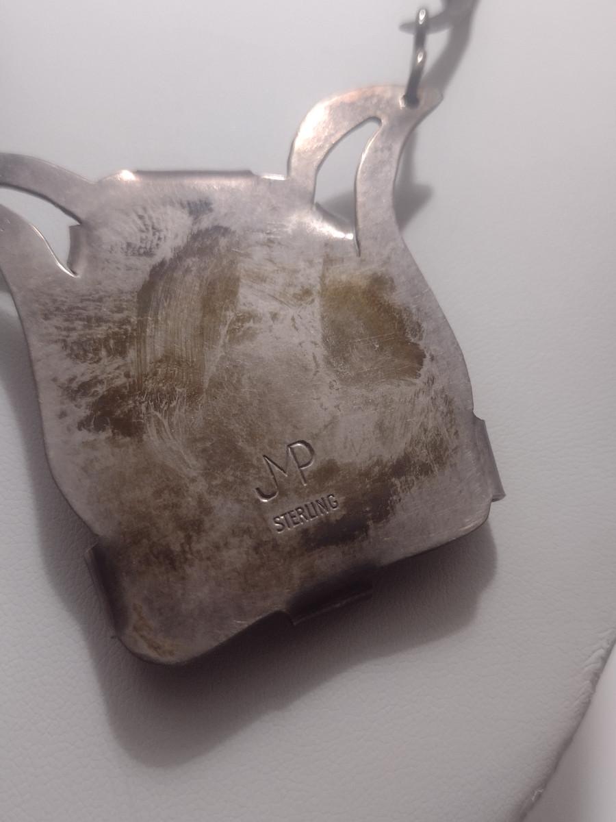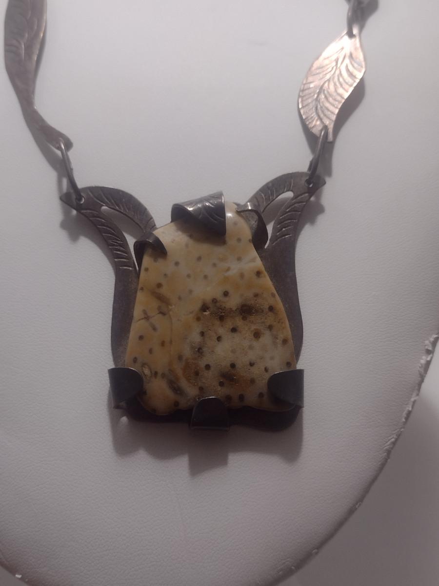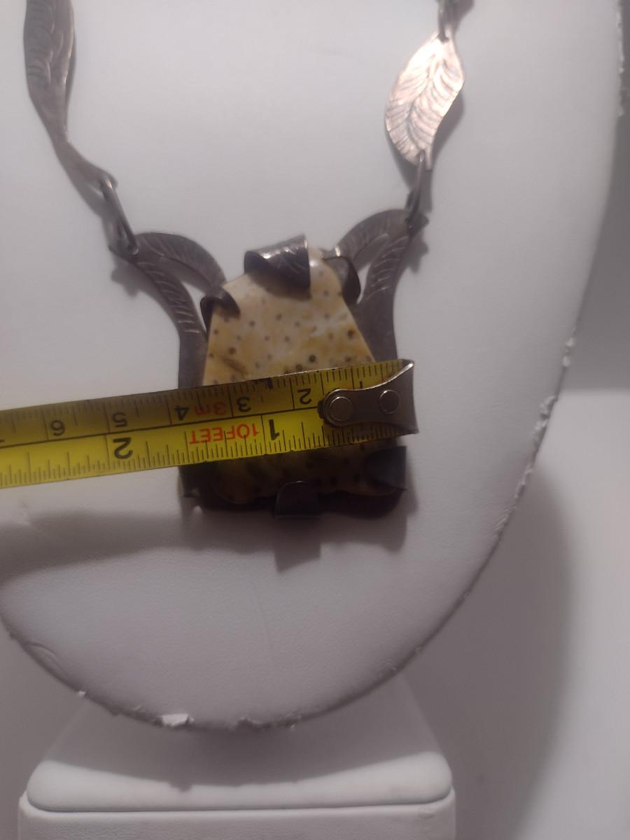 Sterling Silver and Stone Navajo Necklace- June Perry- Marked 'JMP' (#11). From top of stone pendant to clasp is 9" on each side.