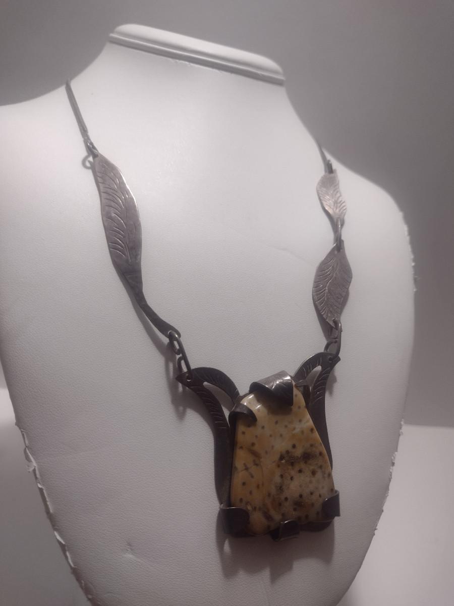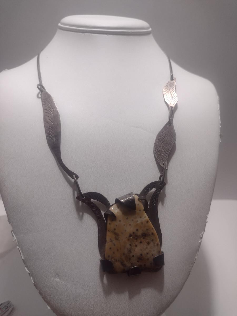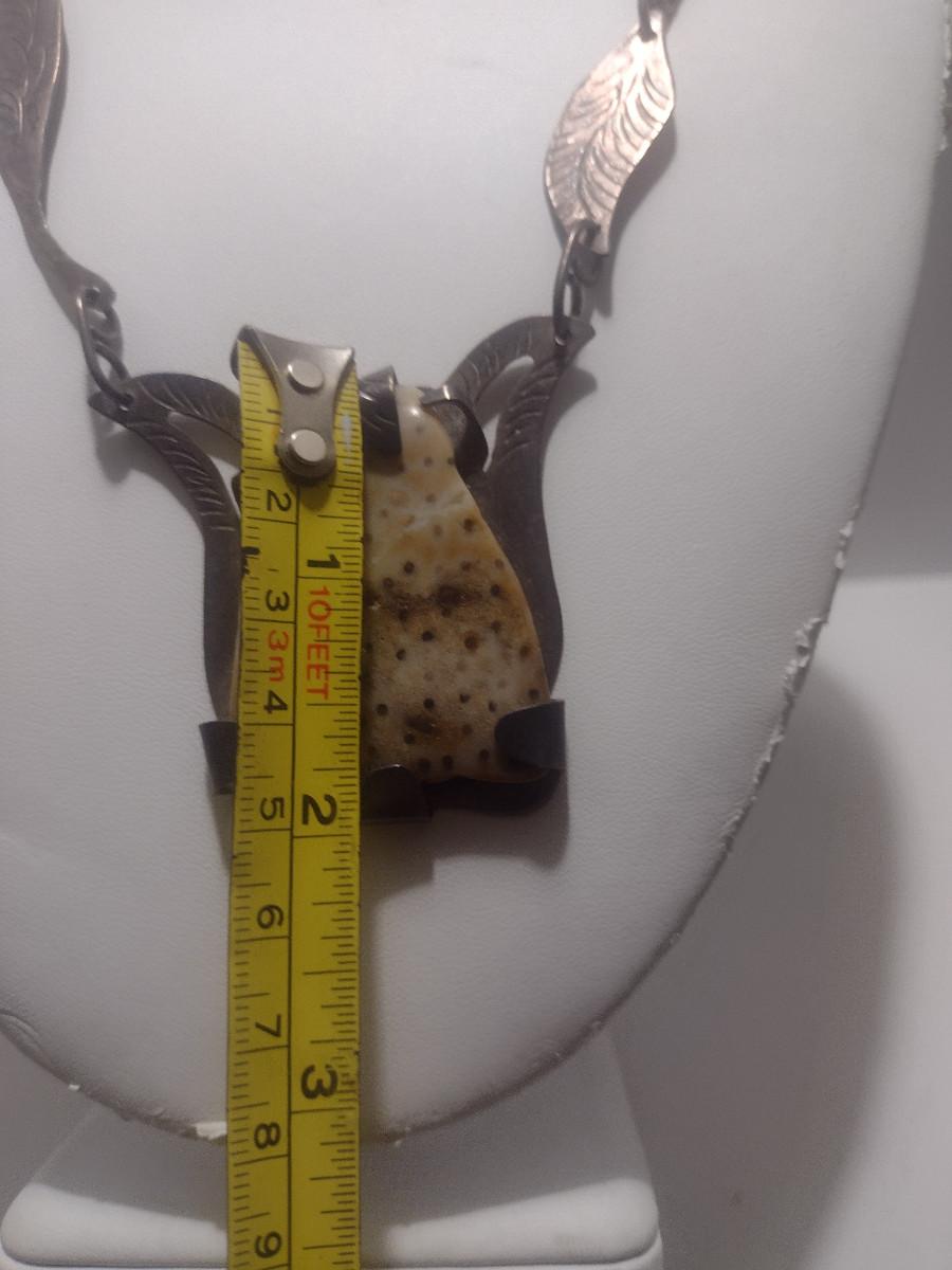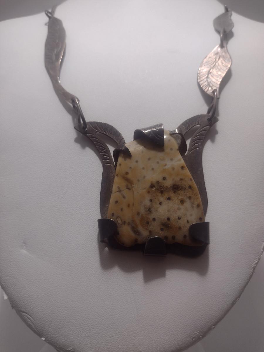 Sterling Silver and Stone Navajo Necklace- June Perry- Marked 'JMP' (#11). From top of stone pendant to clasp is 9" on each side.