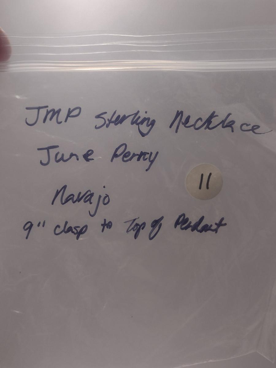 Sterling Silver and Stone Navajo Necklace- June Perry- Marked 'JMP' (#11)