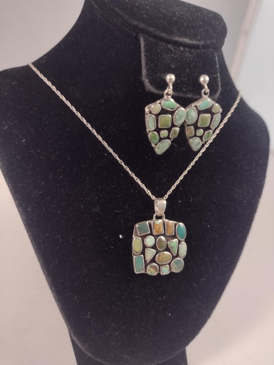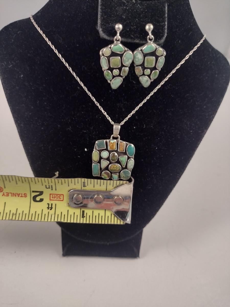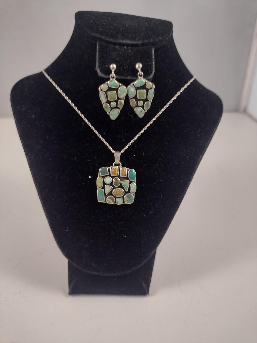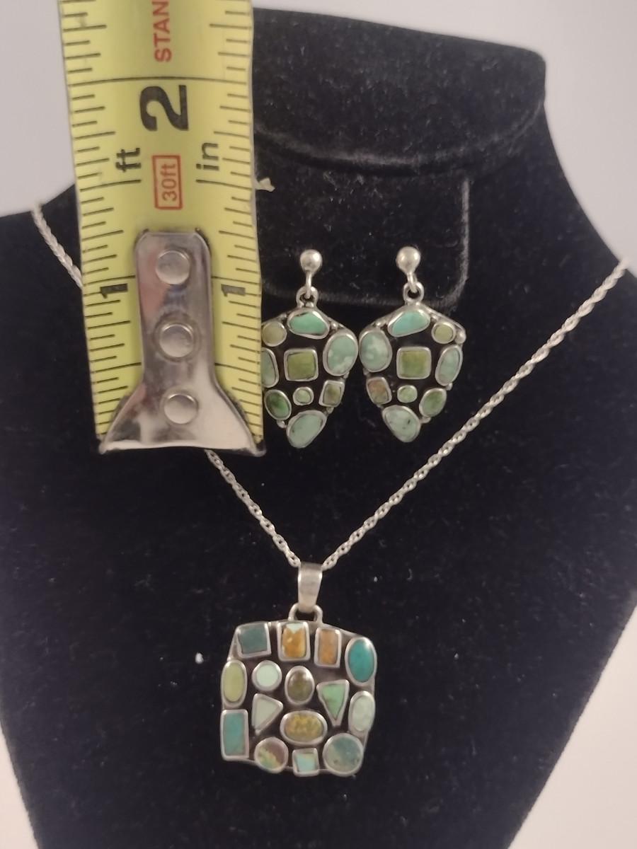 Sterling Silver and Stone Necklace and Earring Set- Approx Total Weight 13.9 Grams (#58)