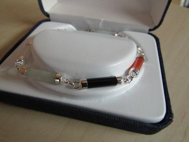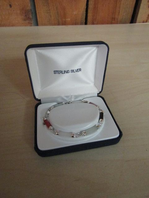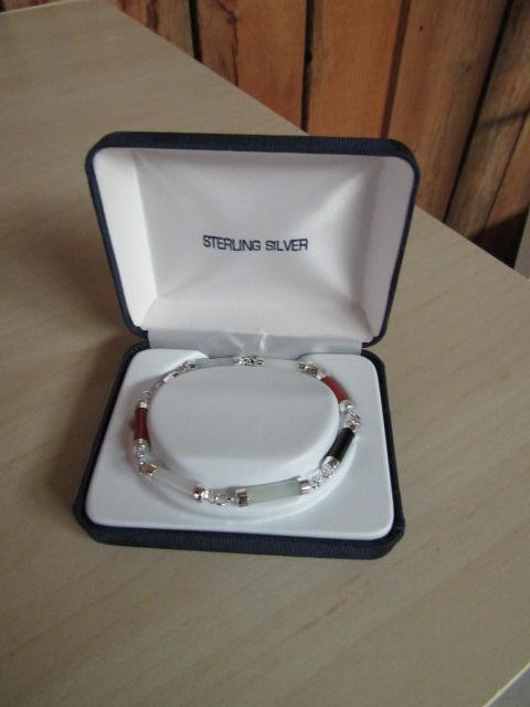 Sterling Silver and Stone (Possibly Jade) Bracelet- 7 1/2" in Length