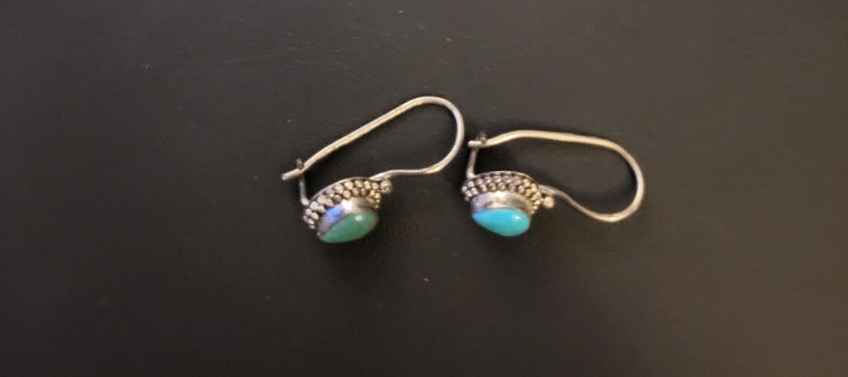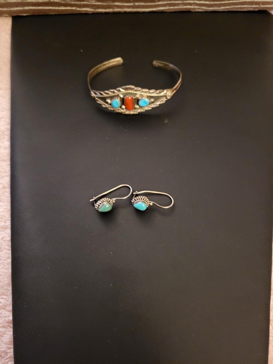 STERLING SILVER AND TURQUOISE BRACELET AND EARRINGS 14g