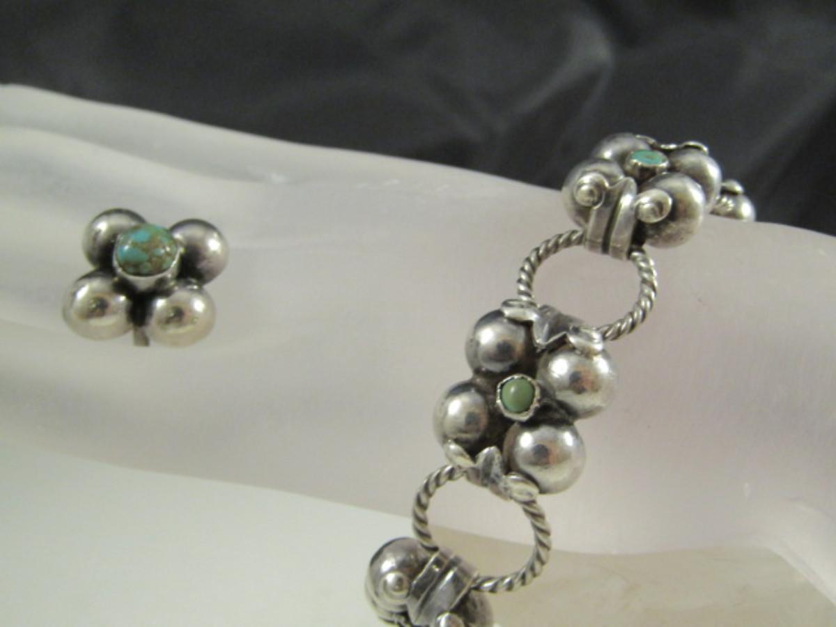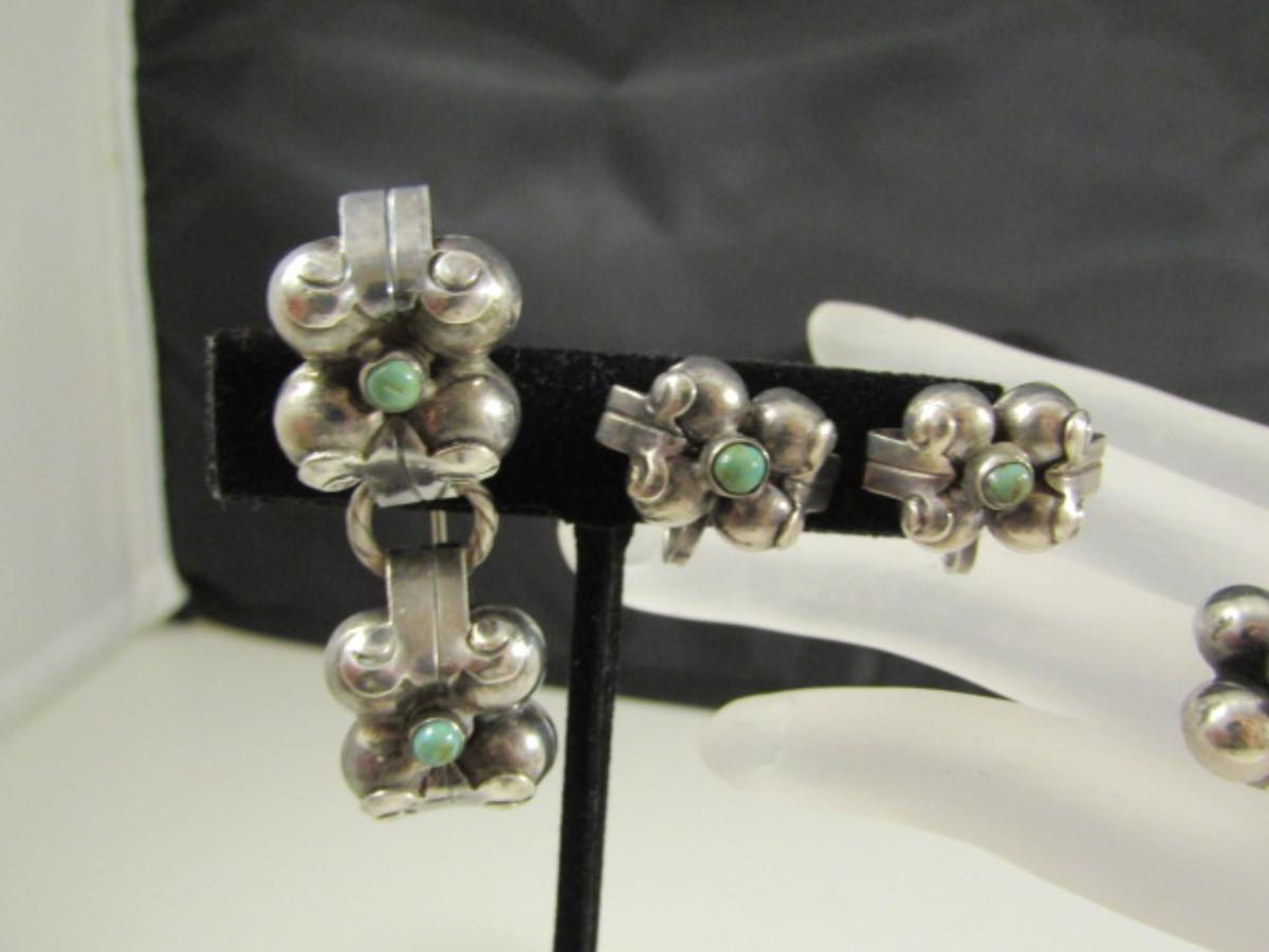 Sterling Silver and Turquoise Floral Design Jewelry Set- Approx 61.4 Grams (#21)