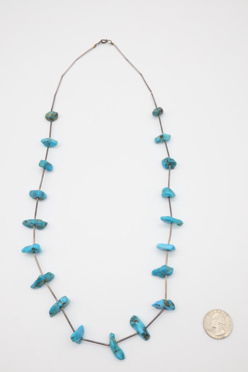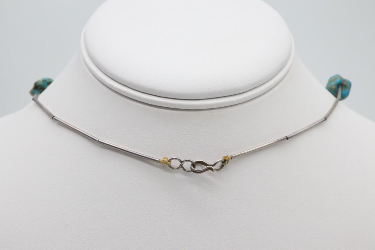 Sterling Silver and Turquoise Necklace, measures approximately 28".