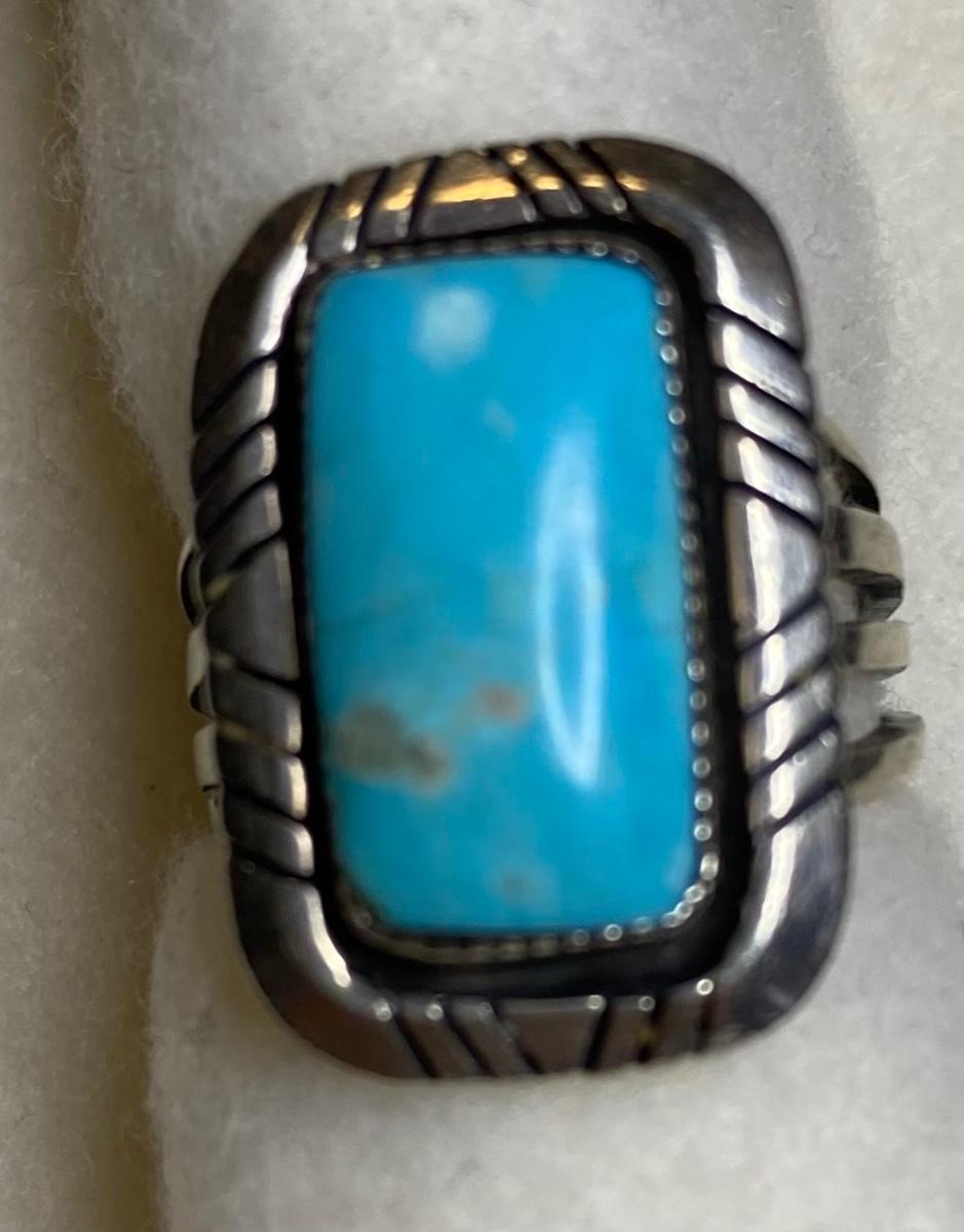 Sterling silver and Turquoise ring with bear hallmark. Size 6.5