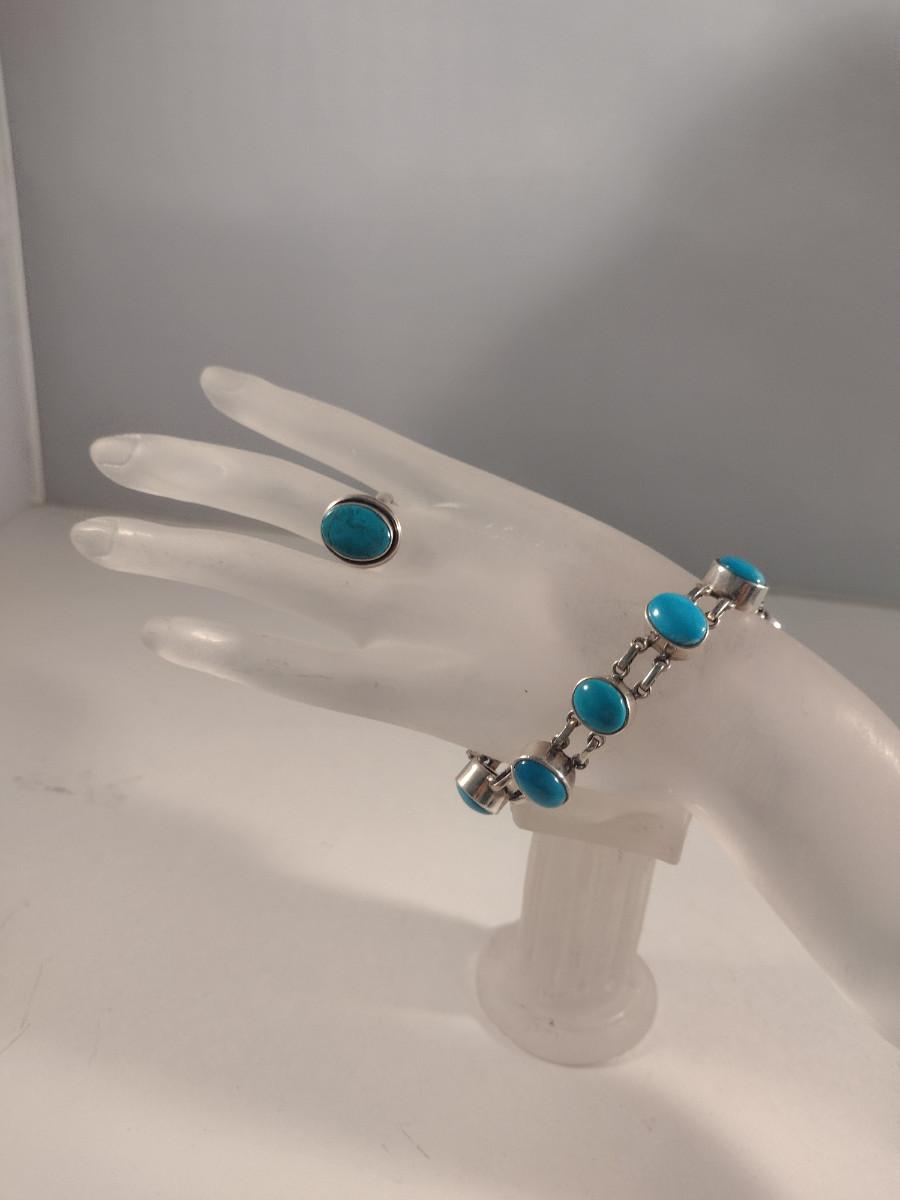 Sterling Silver and Turquoise Ring and Bracelet- Approx Weight 36.6 Grams (#43)