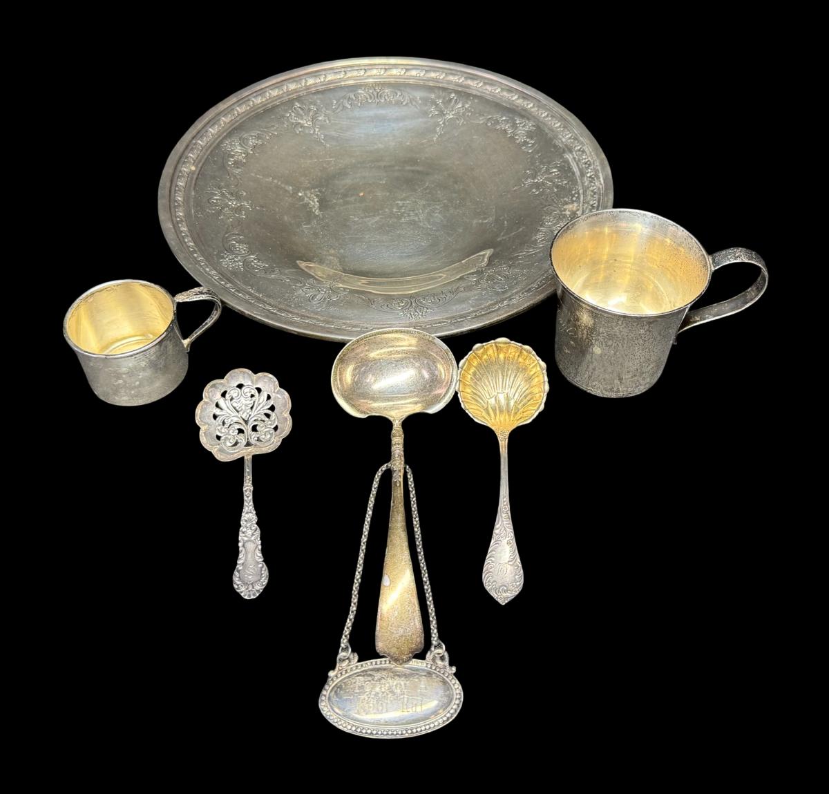 **WIRE TRANSFER IS REQUIRED IF SHIPPED.** [632g] Includes a bowl, cups, spoons, and more. Total of seven pieces. **ALL PRECIOUS METALS SALES ARE FINAL. NO REFUNDS WILL BE GIVEN FOR ANY REASON.** [JL]