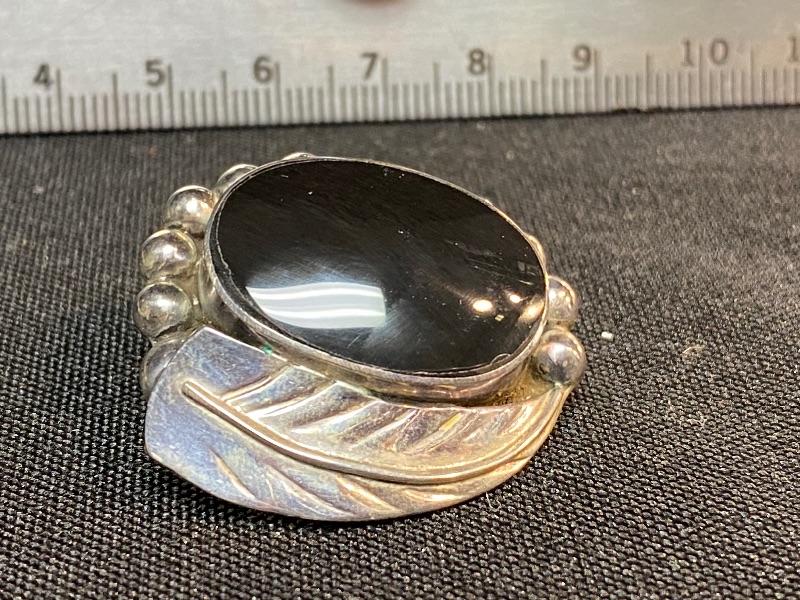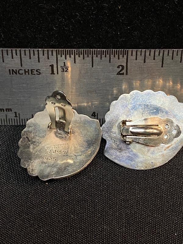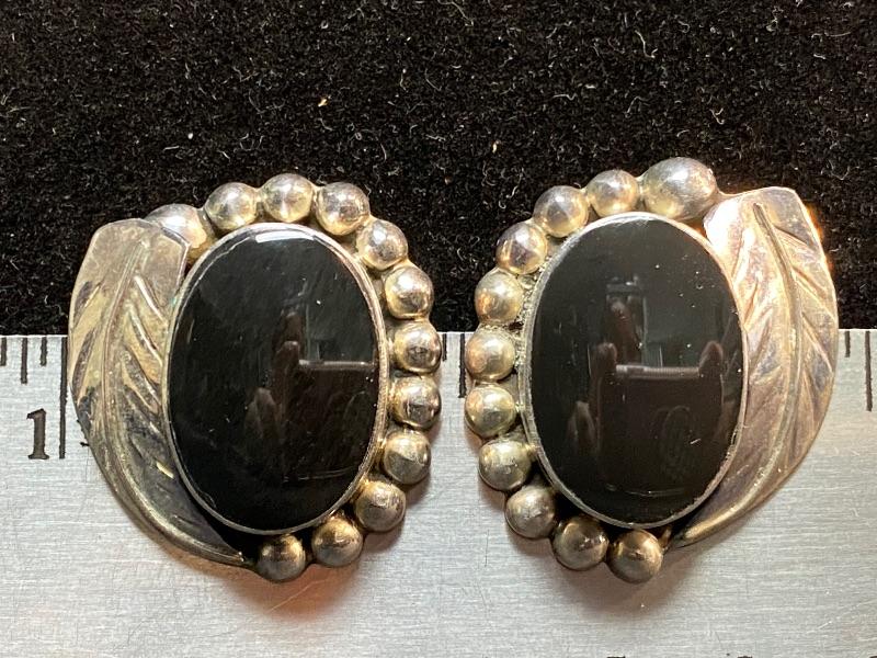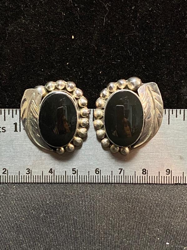 Sterling silver and onyx earrings. Clip style. Made in Mexico. A little over an inch in size.