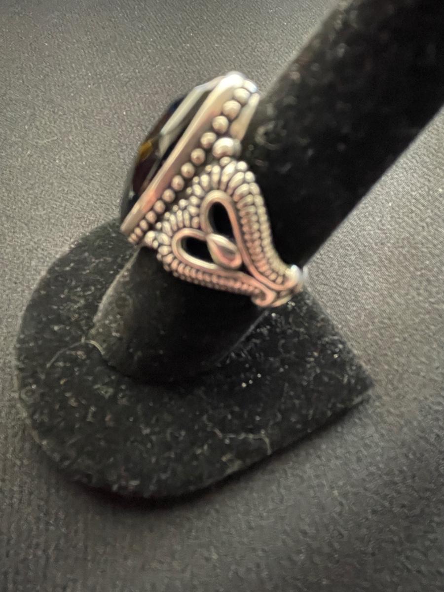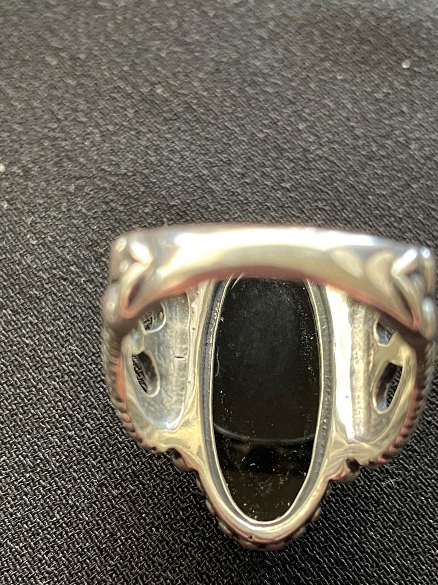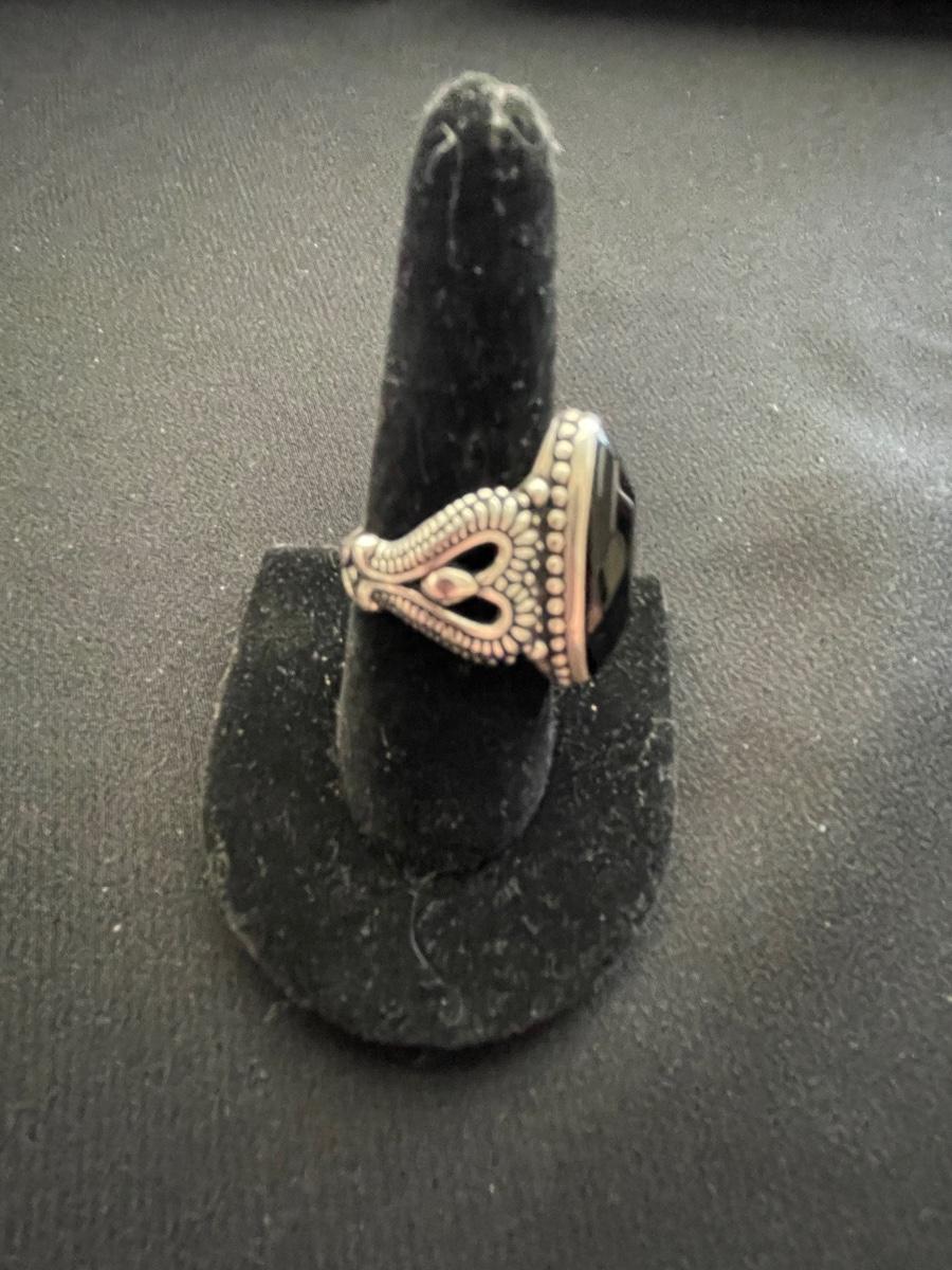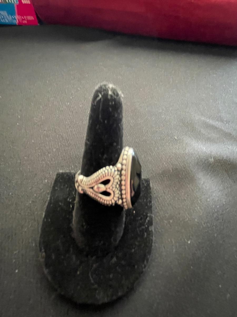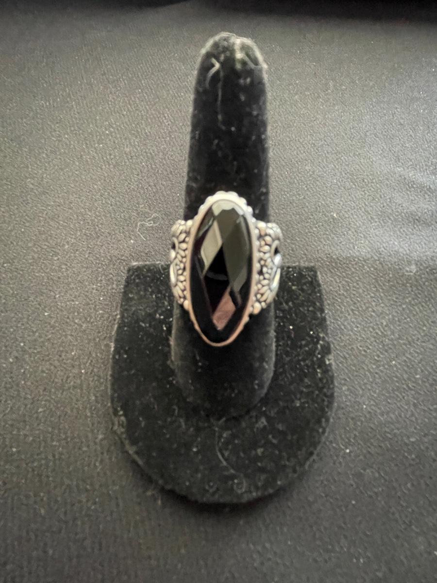 STERLING SILVER RING WITH DIAMOND CUT BLACK STONE
