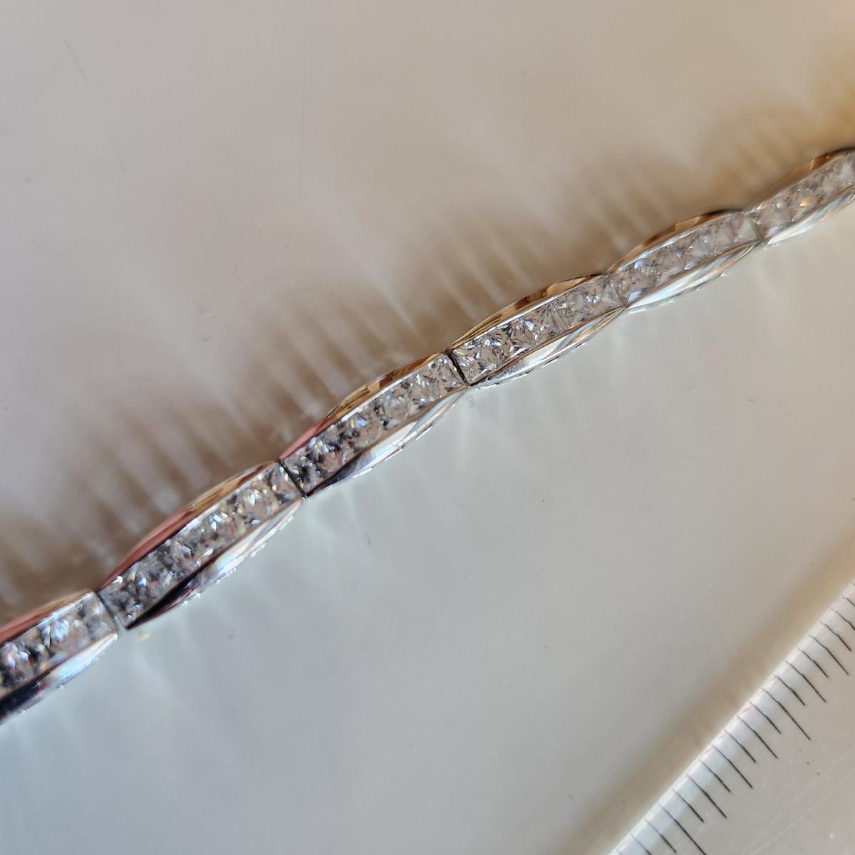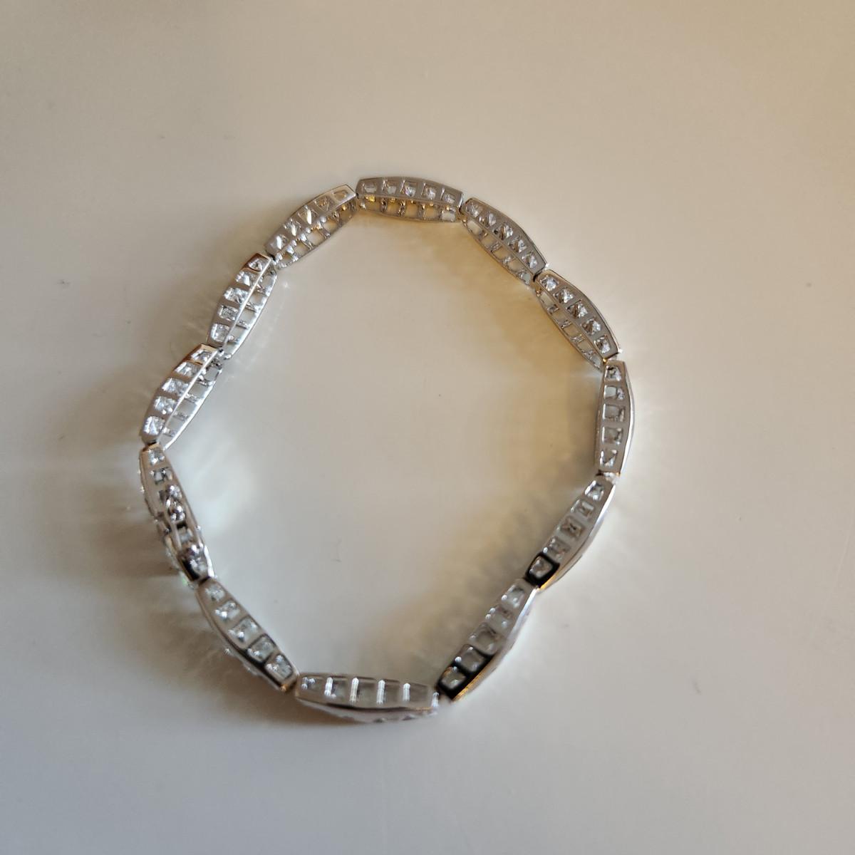 This auction lot is for a Sterling Silver Bracelet. This fashion bracelet is marked 925. It is decorated with nicely cut glass gems. See photo for size.