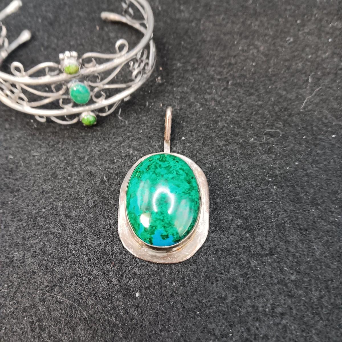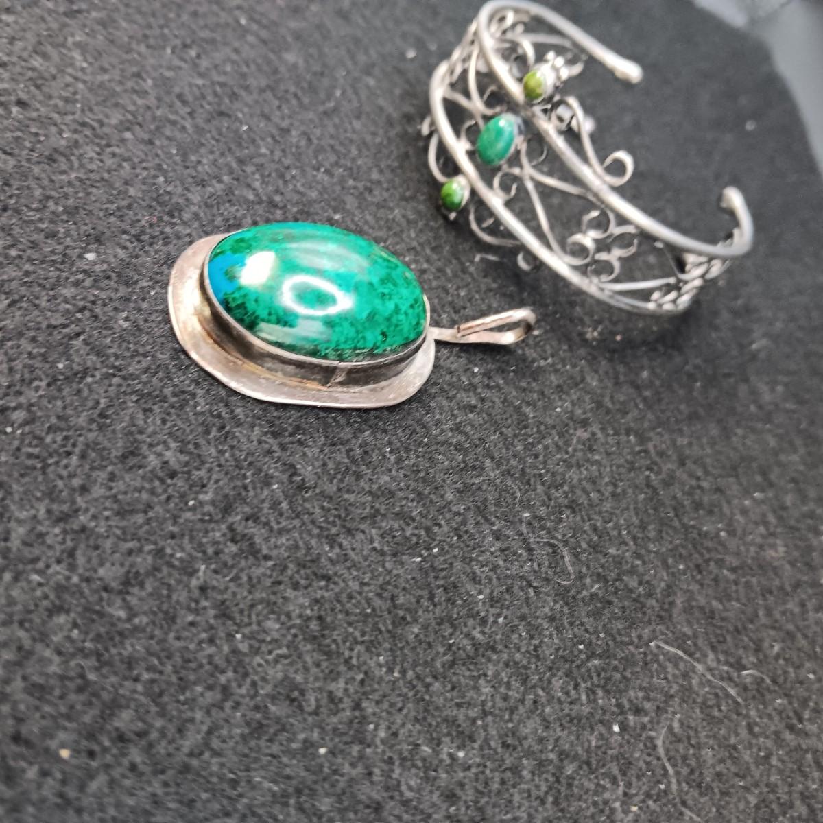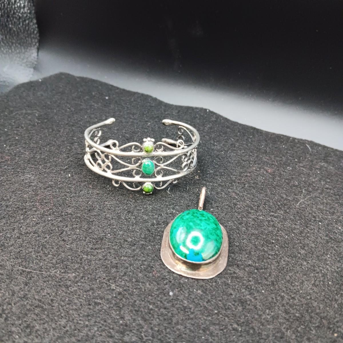 STERLING SILVER BRACELET AND PENDANT WITH STONES
