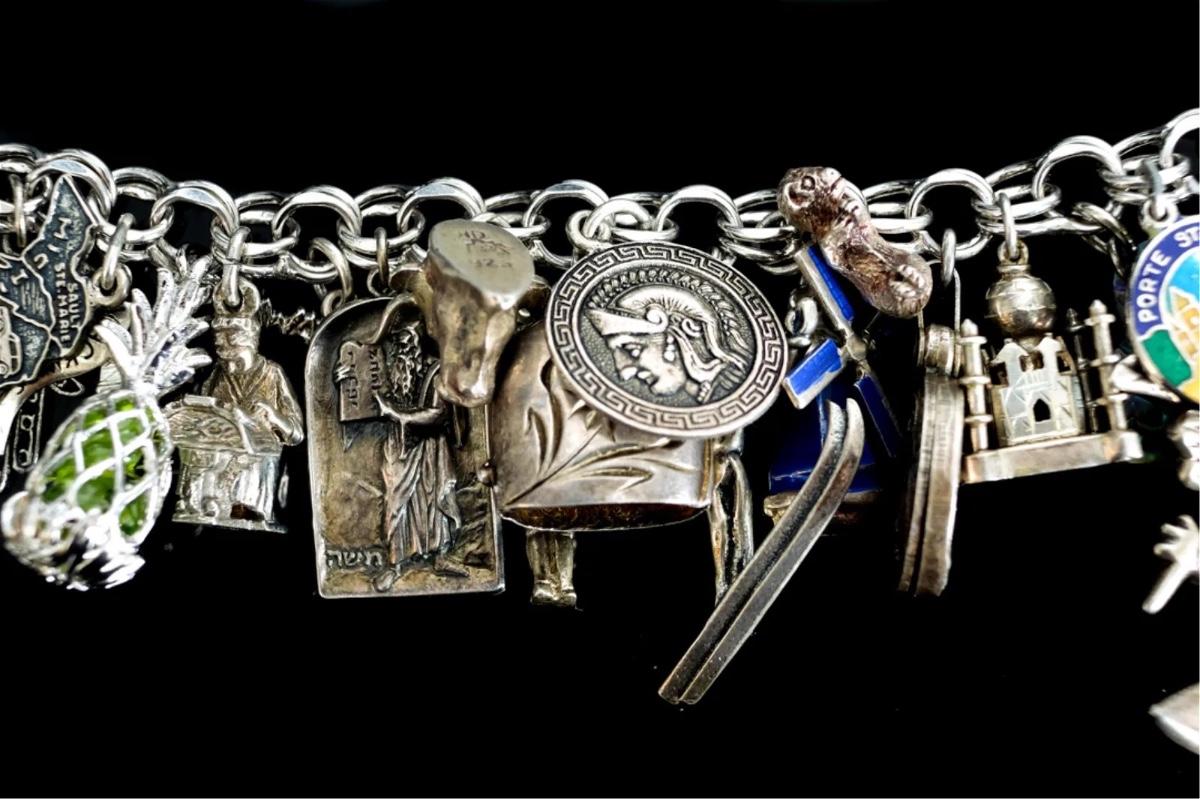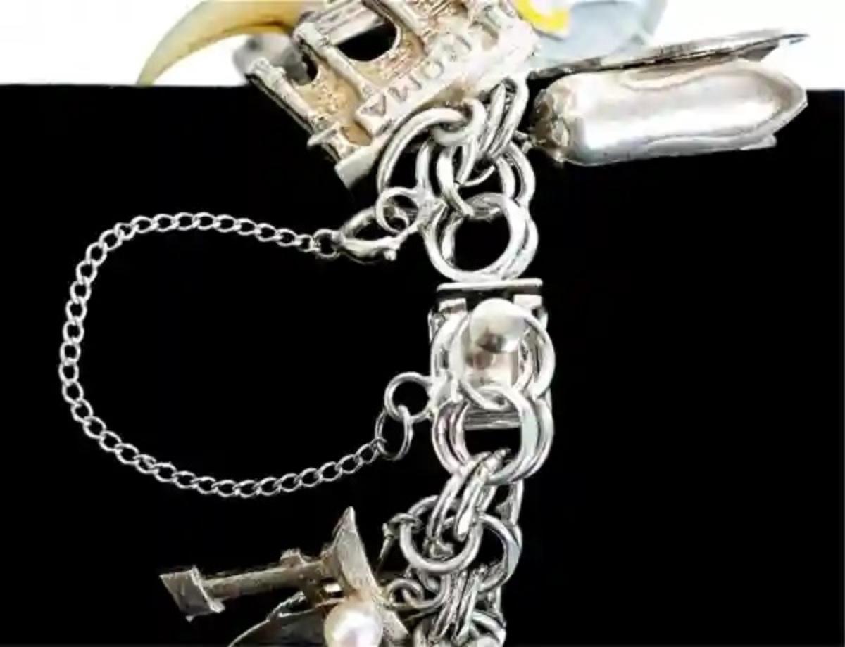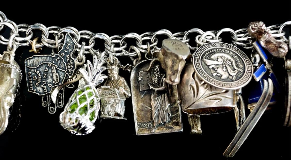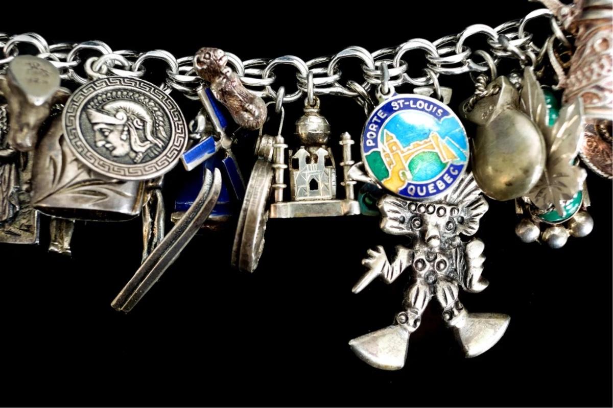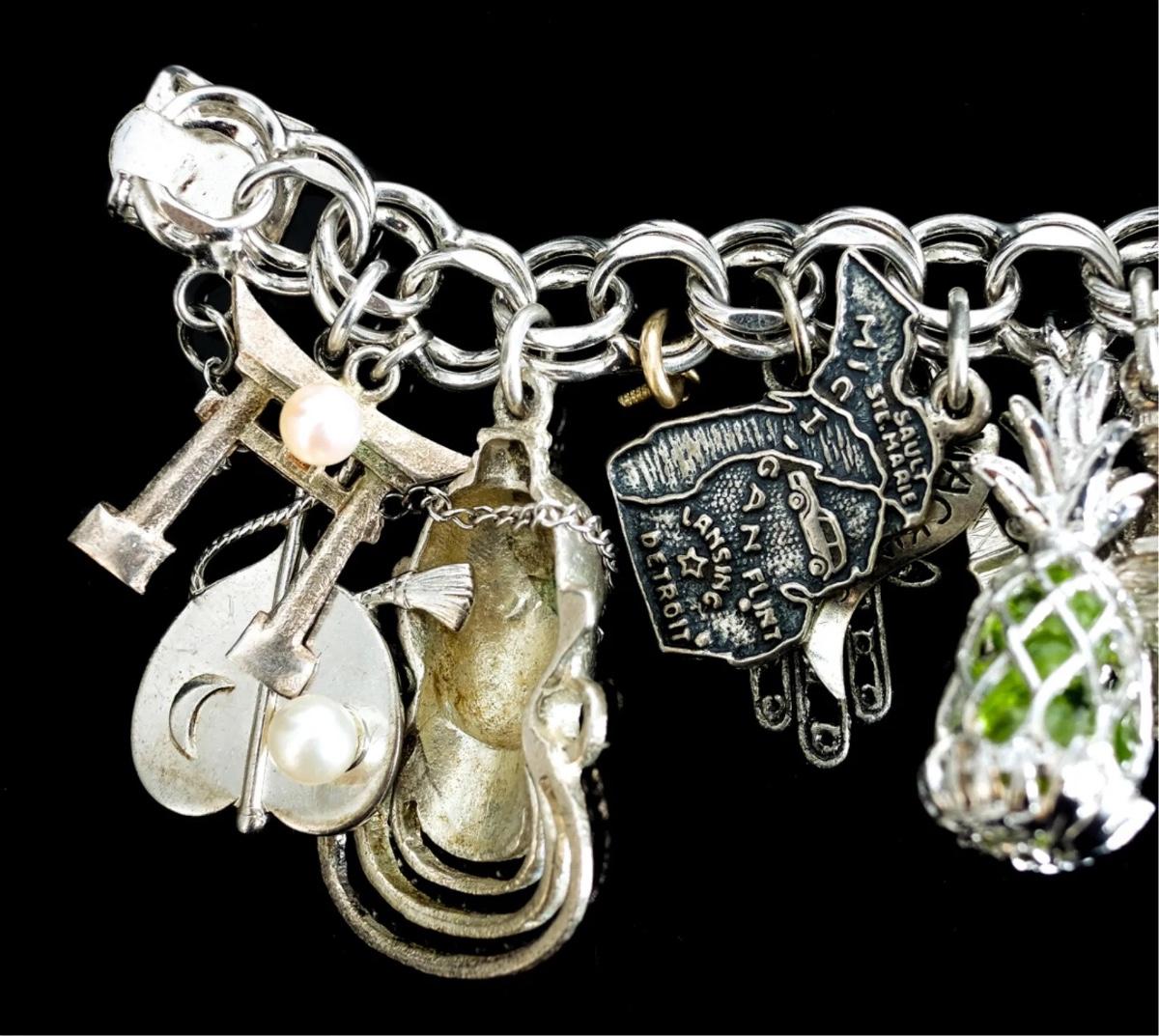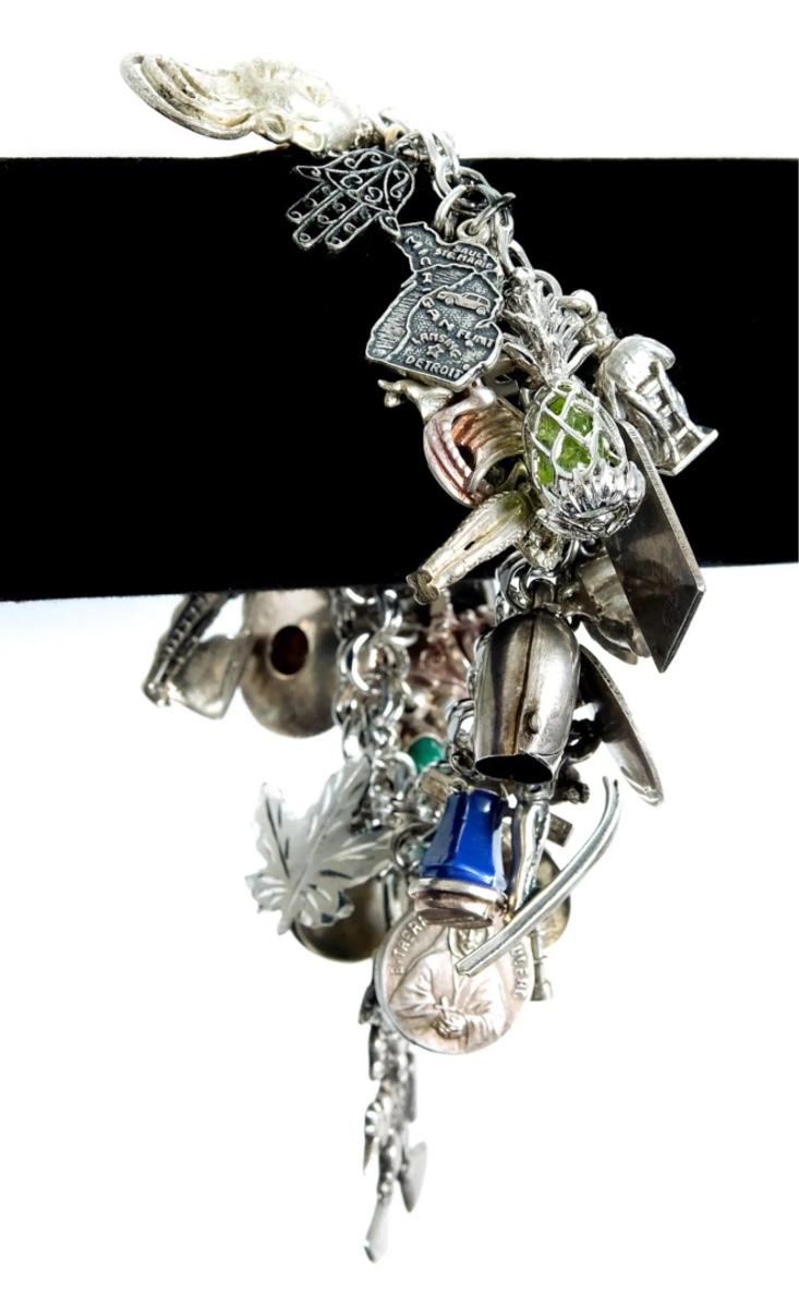 Sterling Silver Bracelet w/Numerous Charms 119g