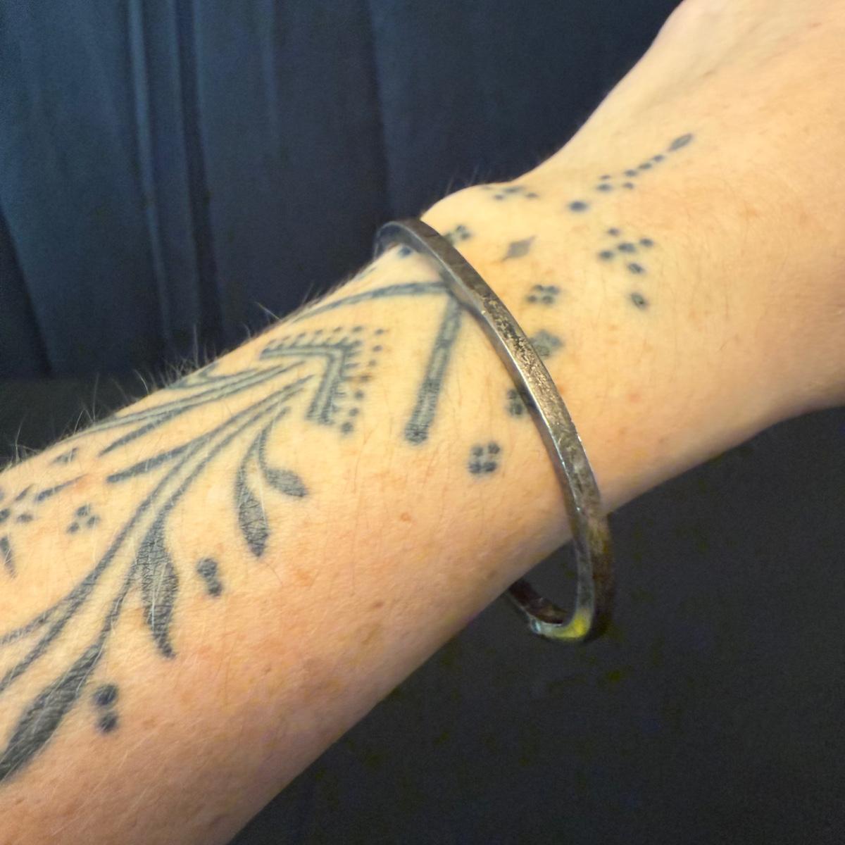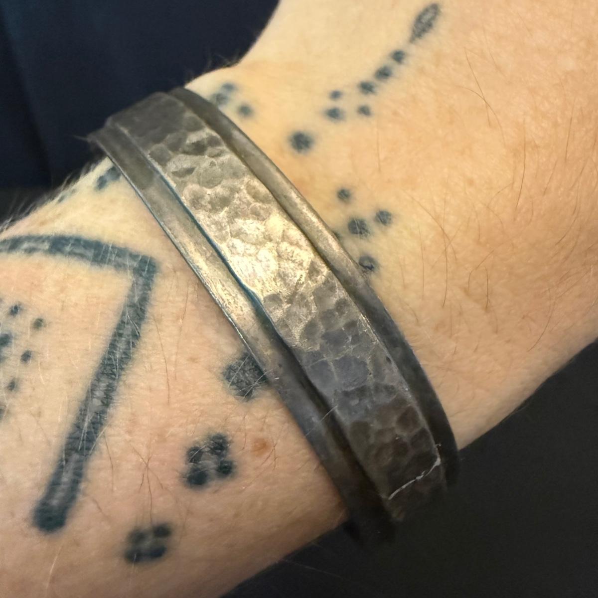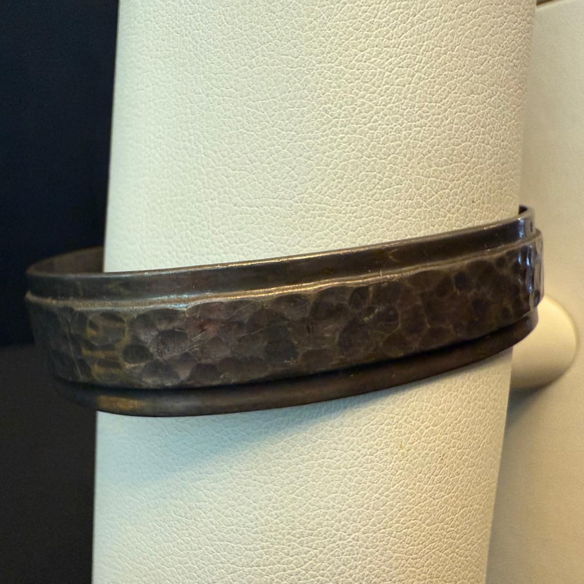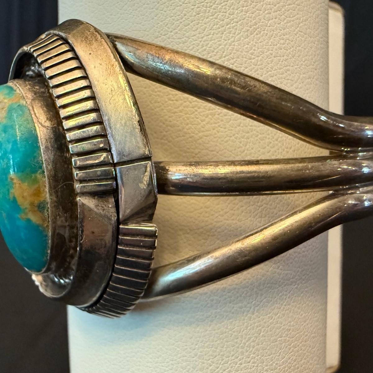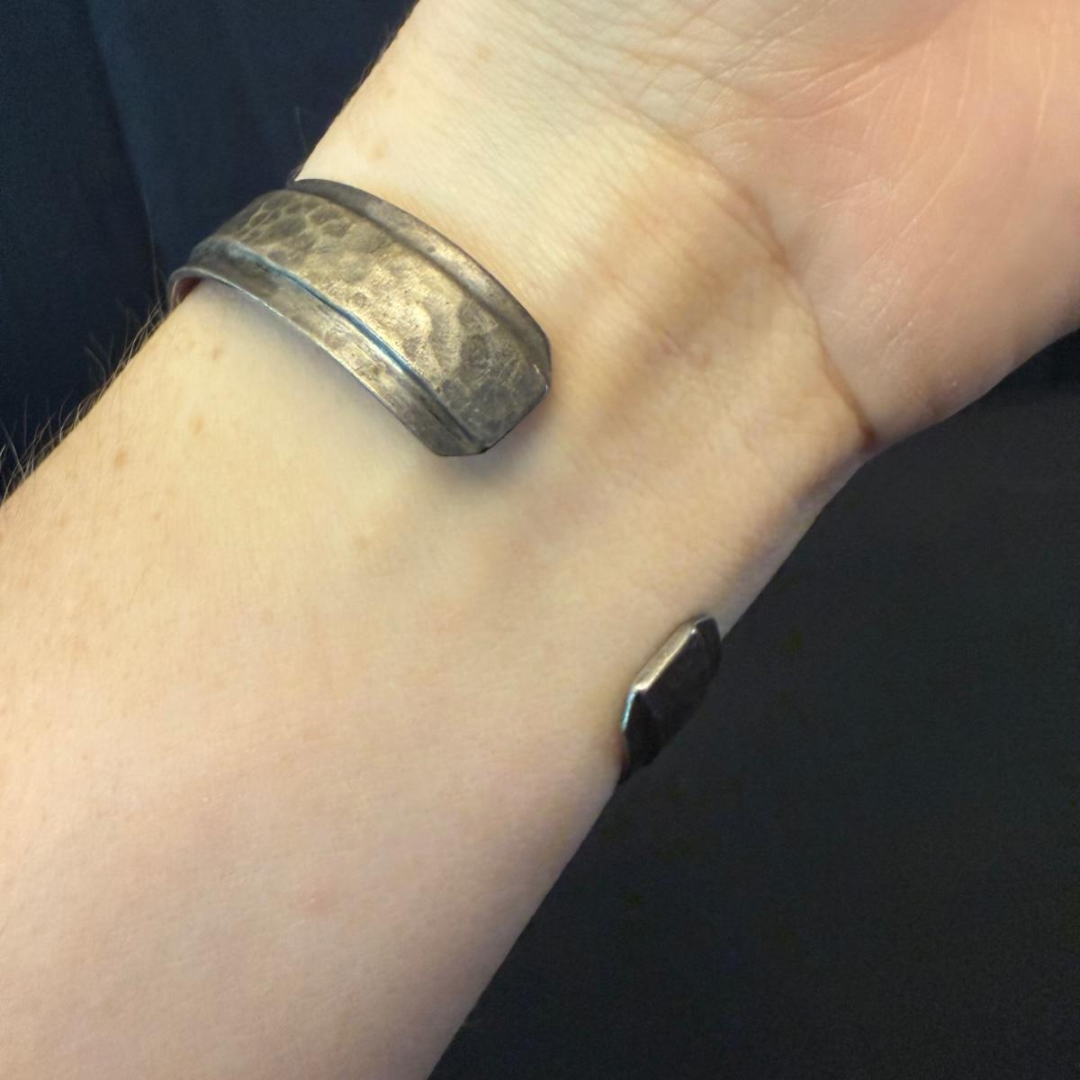 Four bracelets, three are stamped with Sterling hallmarks. One features a gorgeous turquoise stone and is quite a hefty bracket. One has amber; this one doesn’t have any visible hallmarks. Items are tarnished and could use a good polishing.