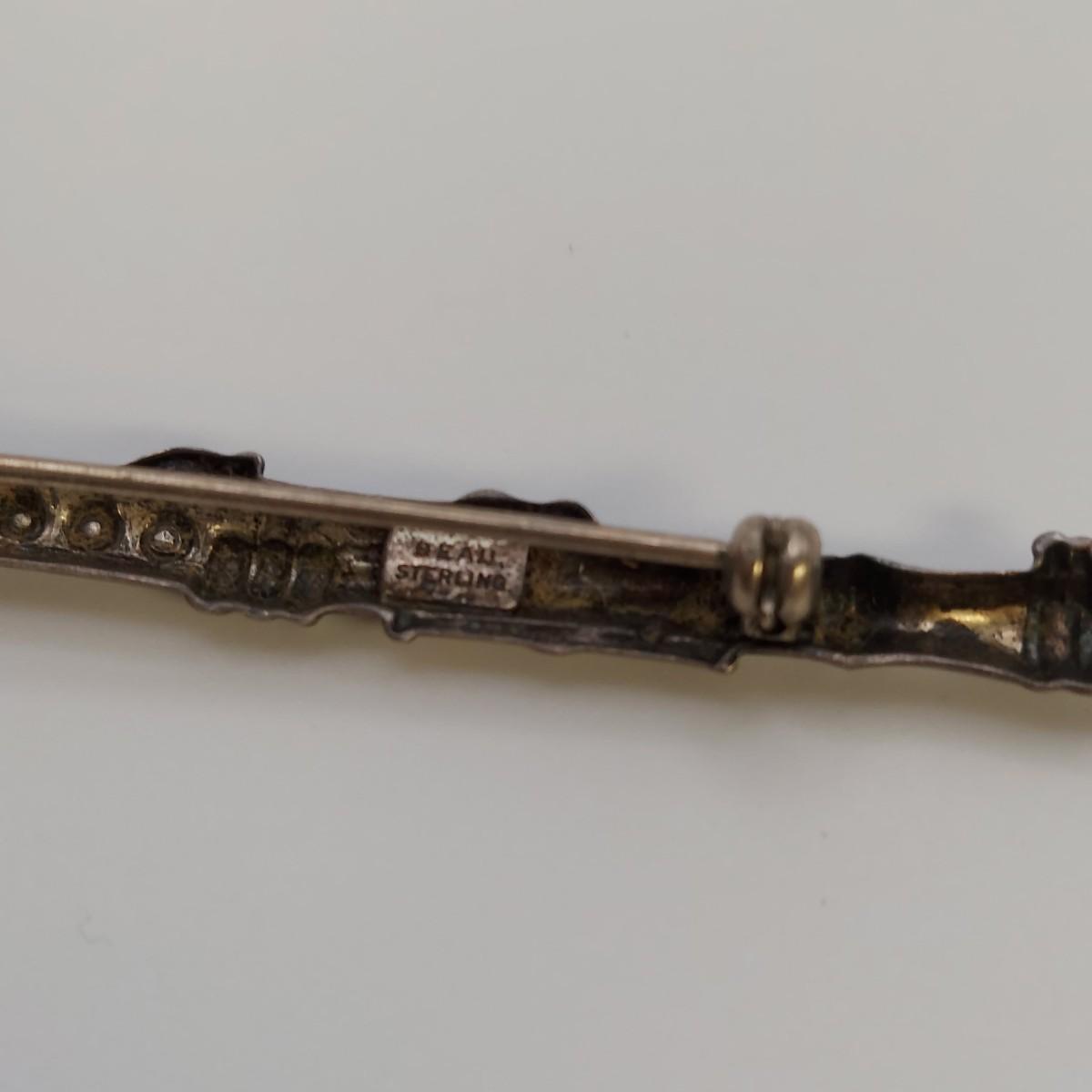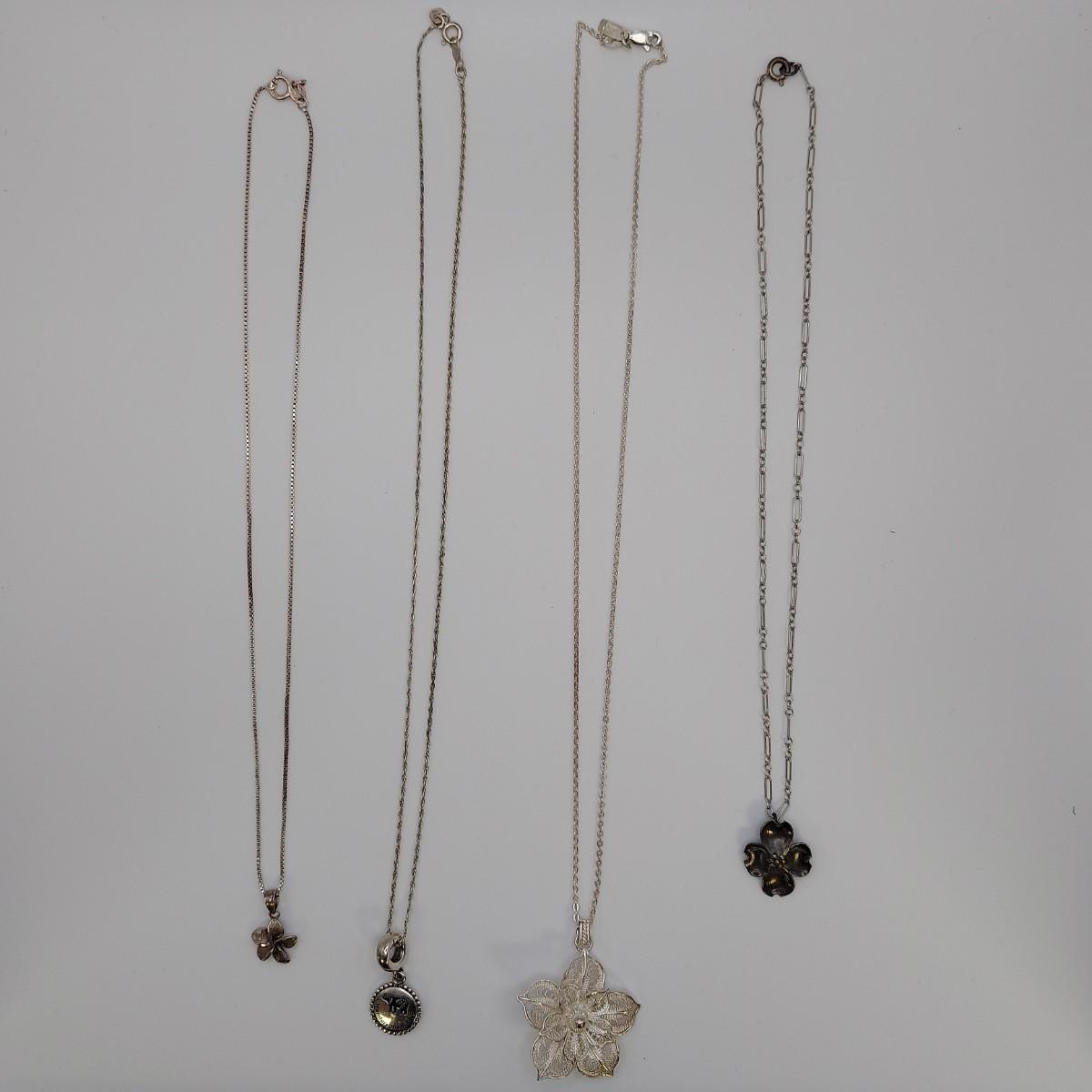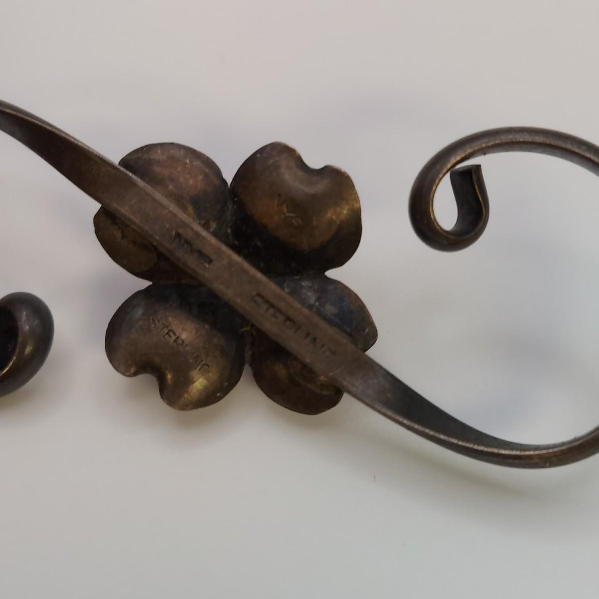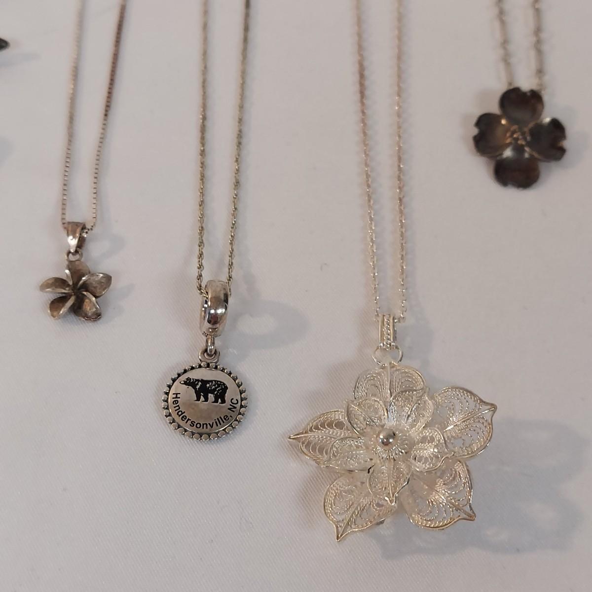 Lot includes four necklaces and four brooches plus a leaf pin with sterling silver stamps. A few items are stamped "NYE", indicating Stuart Nye. The necklaces range from 14-18" long. Please see photos for all markings found. All sales are final. No returns or refunds. Please bid accordingly.
