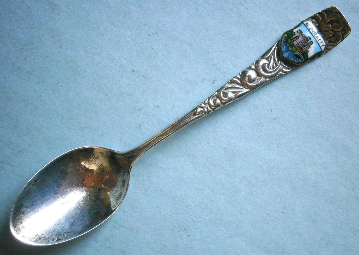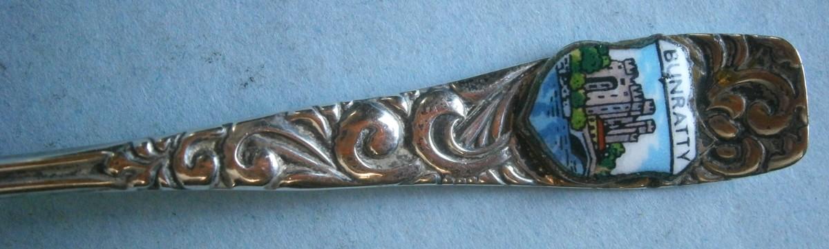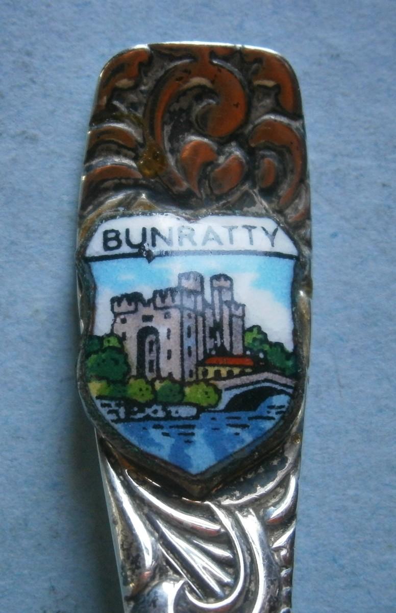 Sterling Silver BUNRATTY (Ireland) Souvenir Spoon, vintage, 4 1/4 in. long, sterling silver with enamel shield.