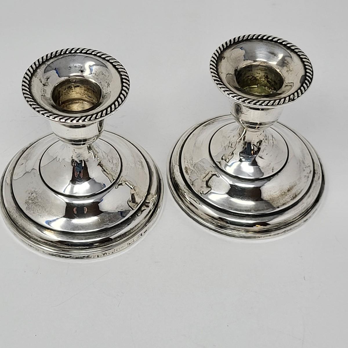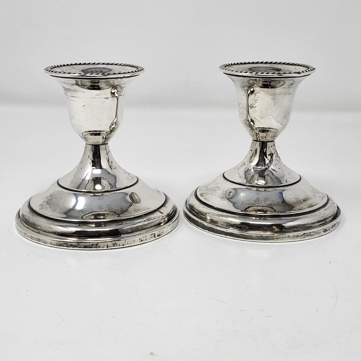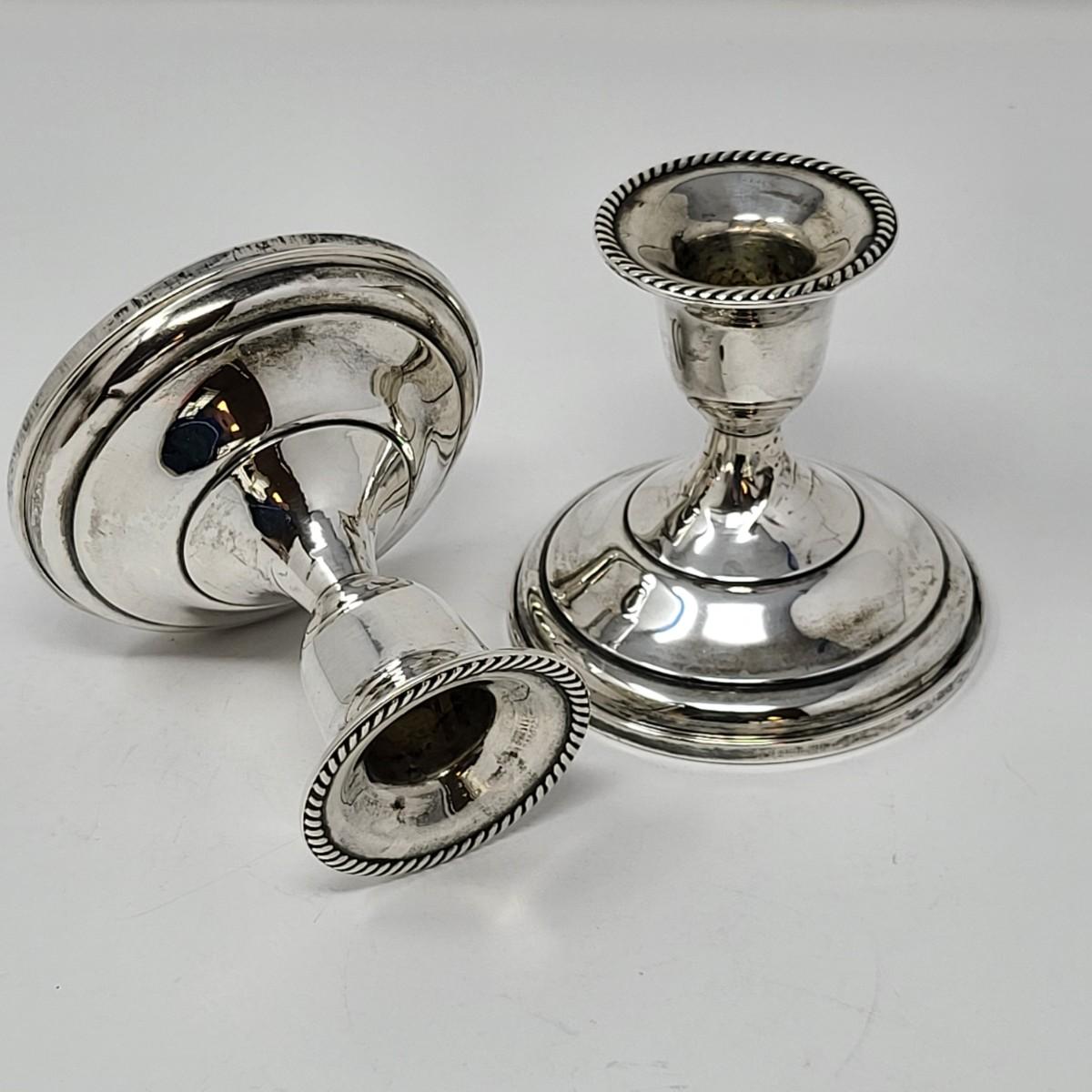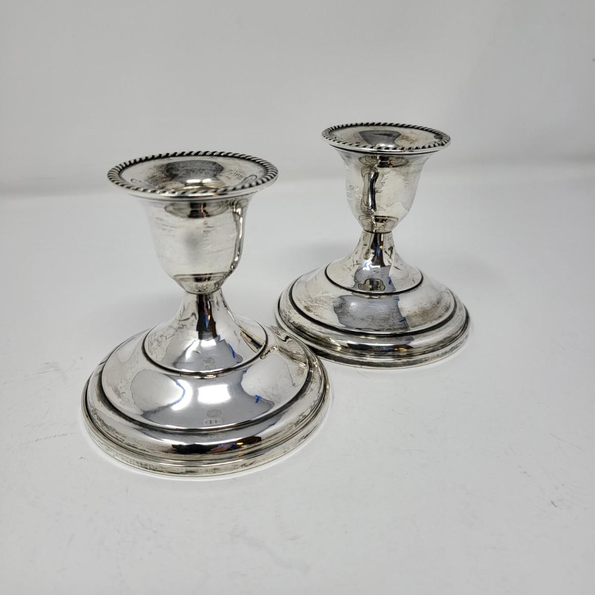 Vintage English, pattern number 851, sterling silver, Weighted bottom 3" candlestick holders.