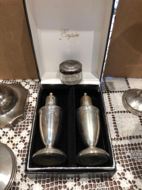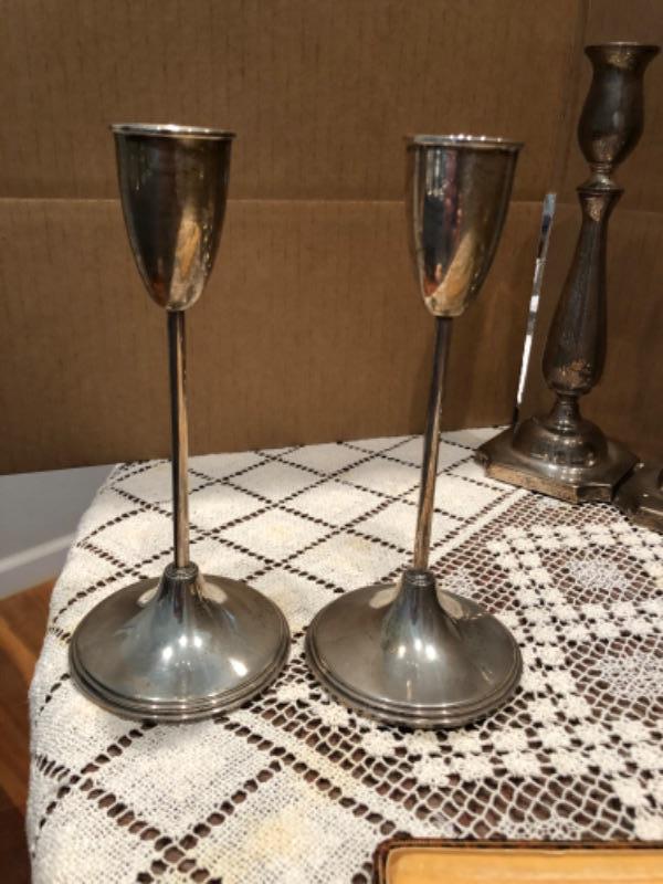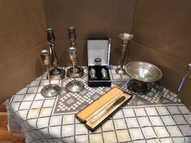 Sterling Silver Candlesticks, Bowl, Knife
