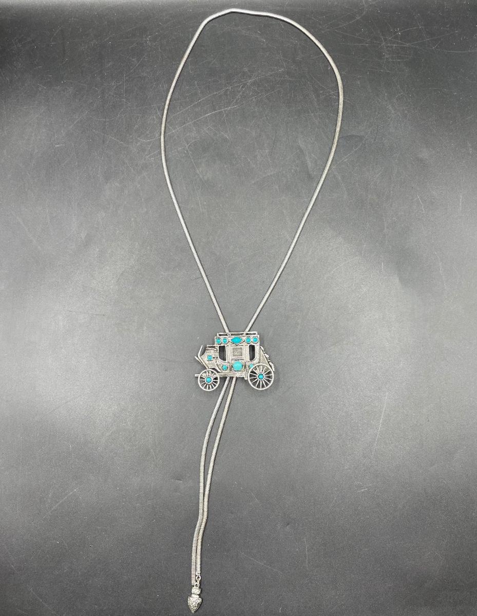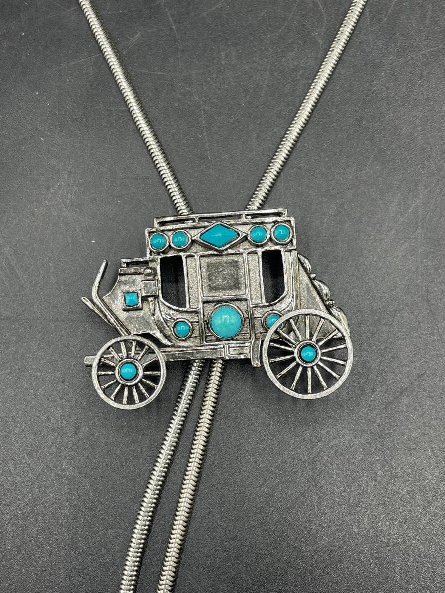 Silver Tone Southwestern Style Faux Turquoise Cabochon Carriage Necklace