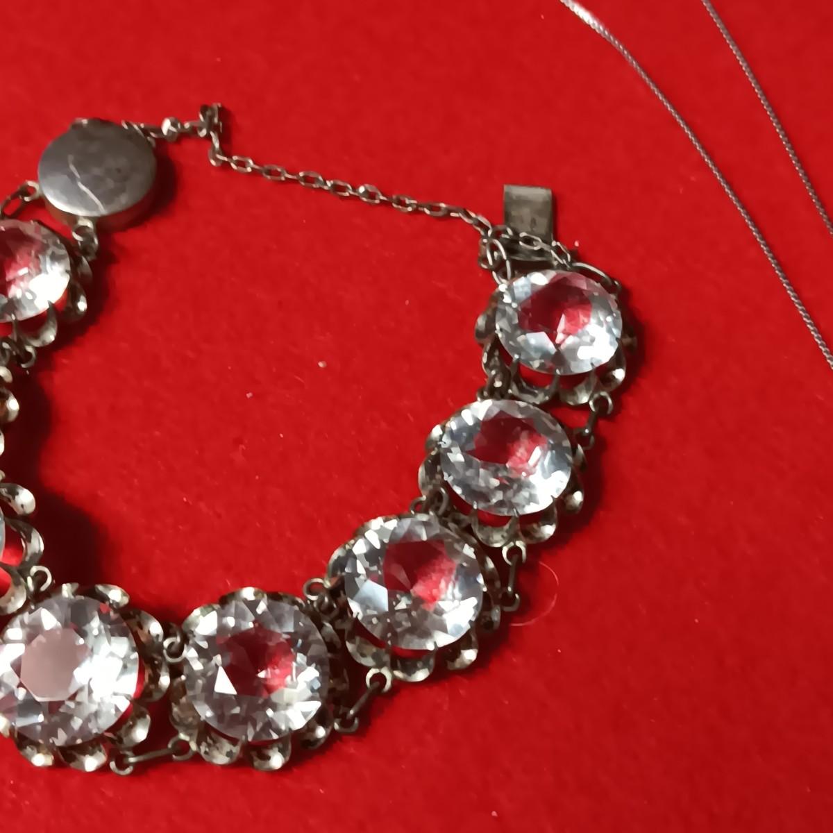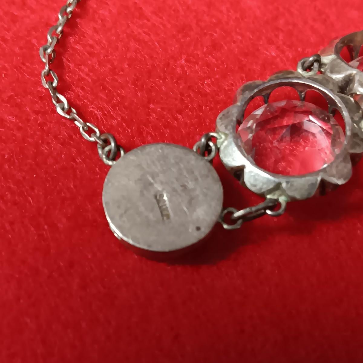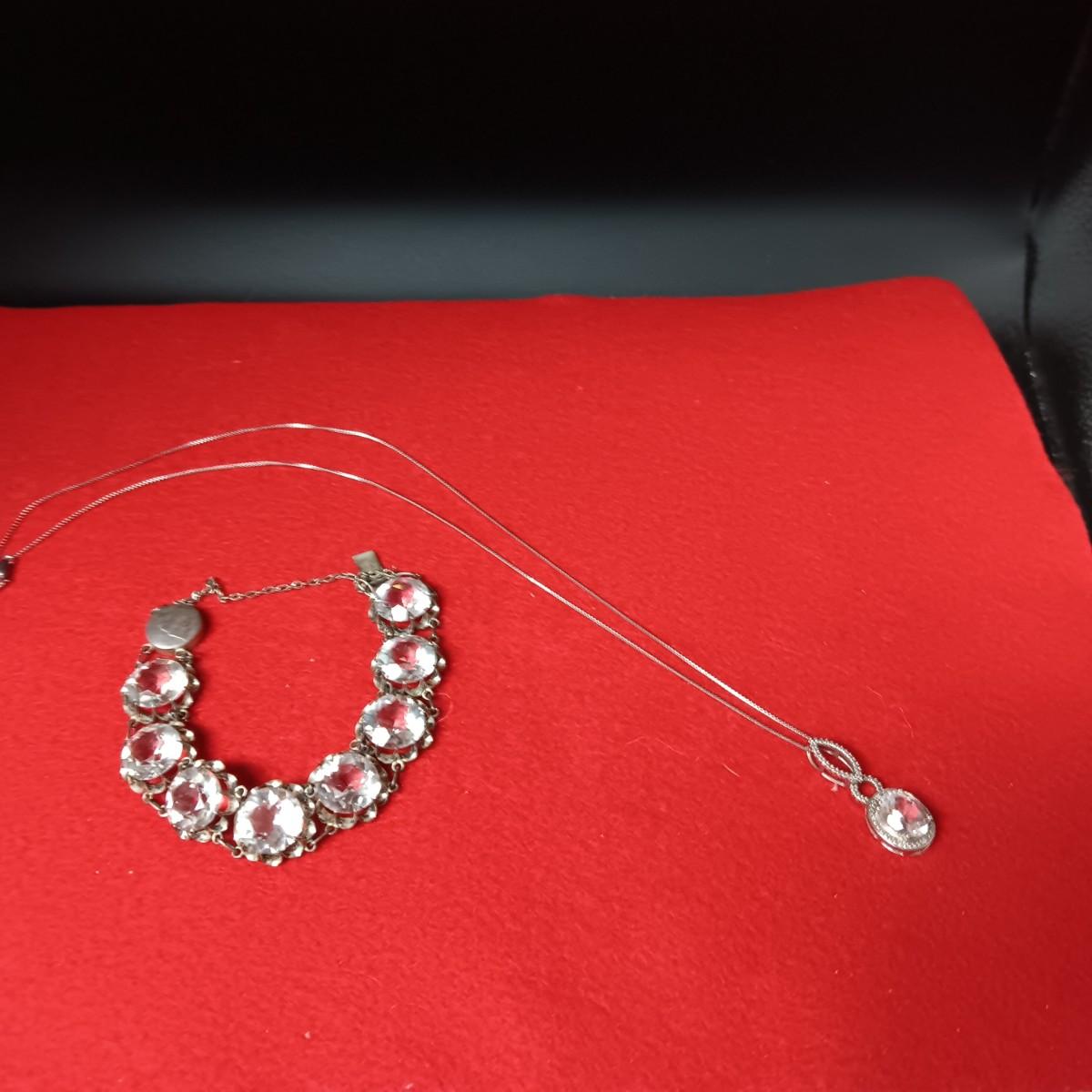 STERLING SILVER CHAIN AND PENDANT PLUS A STERLING BRACELET WITH GLASS STONES