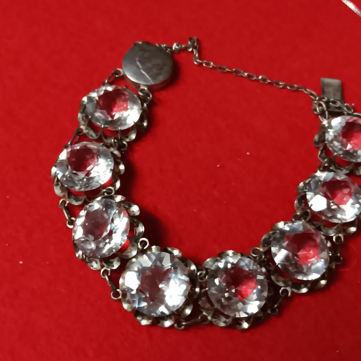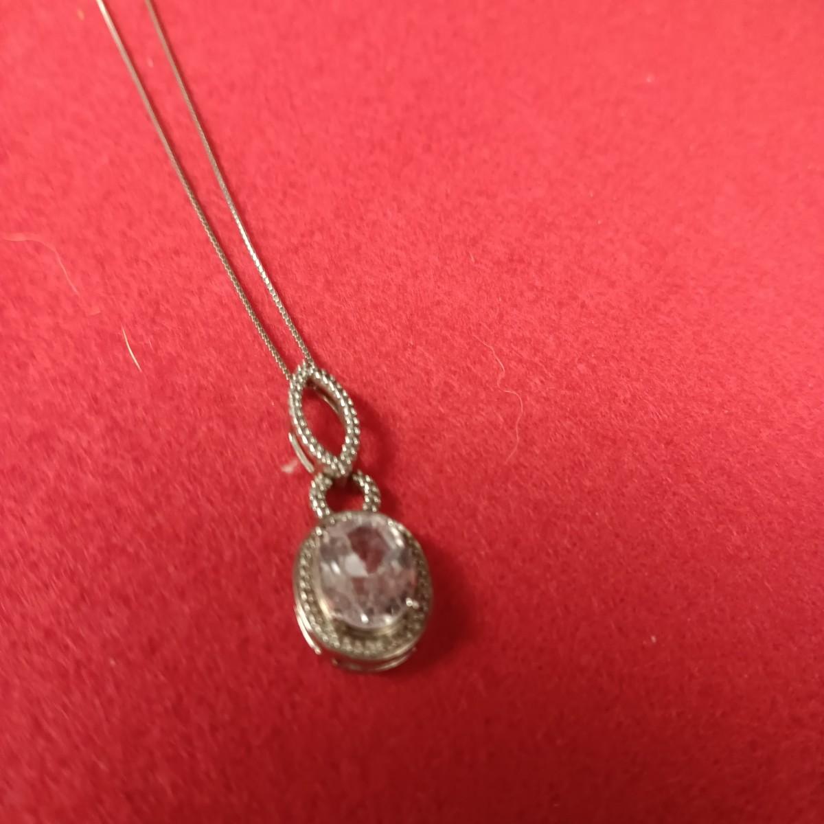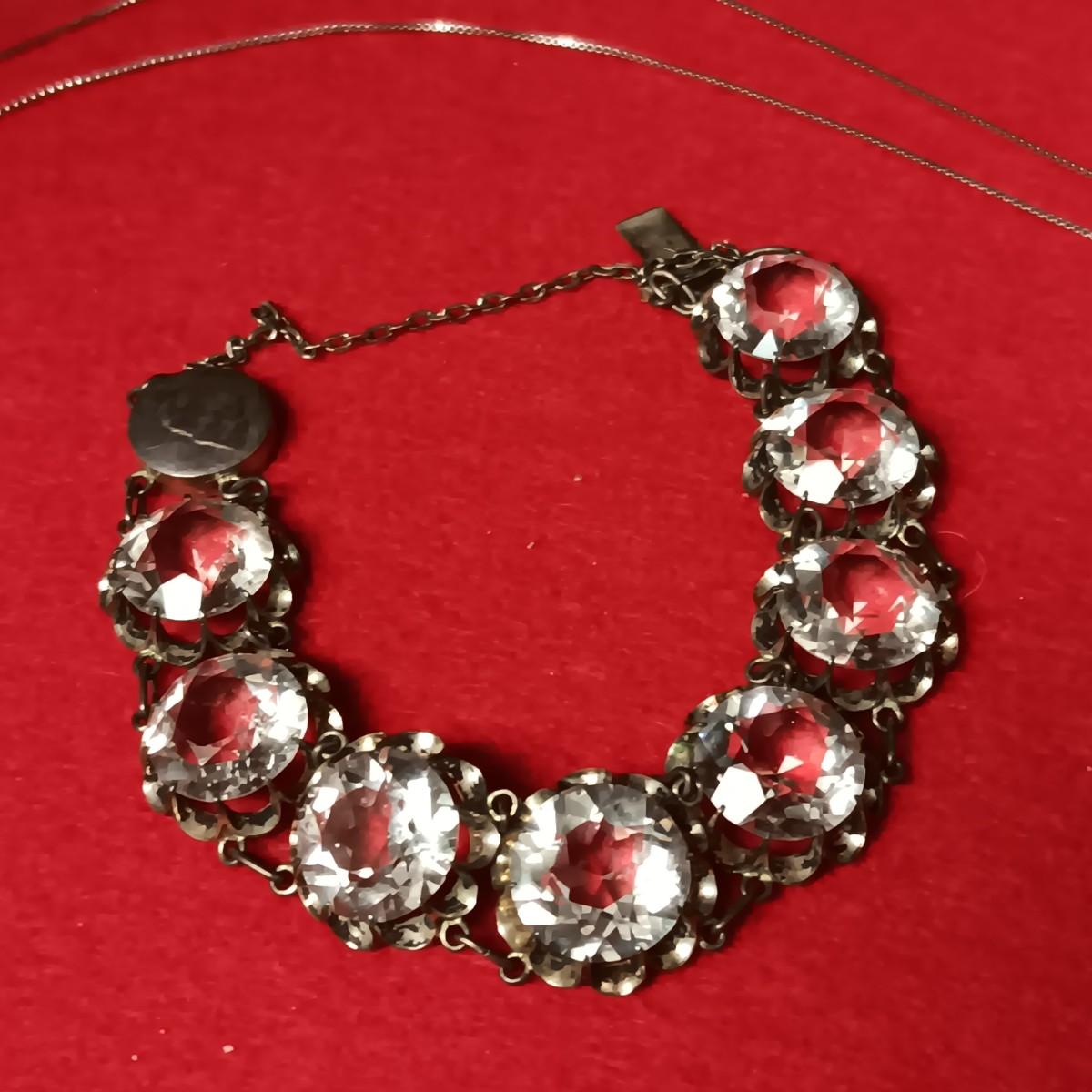 STERLING SILVER CHAIN AND PENDANT PLUS A STERLING BRACELET WITH GLASS STONES