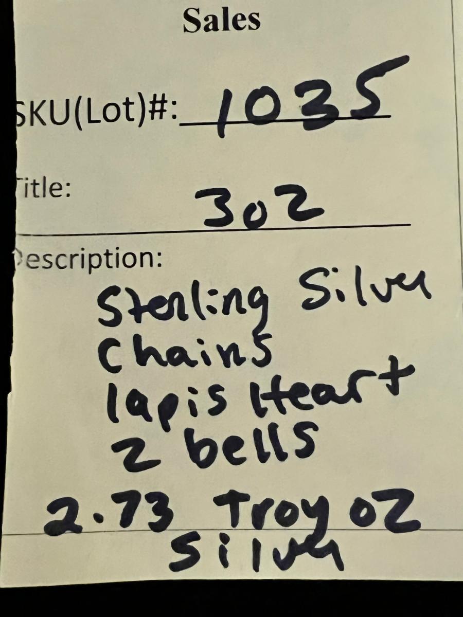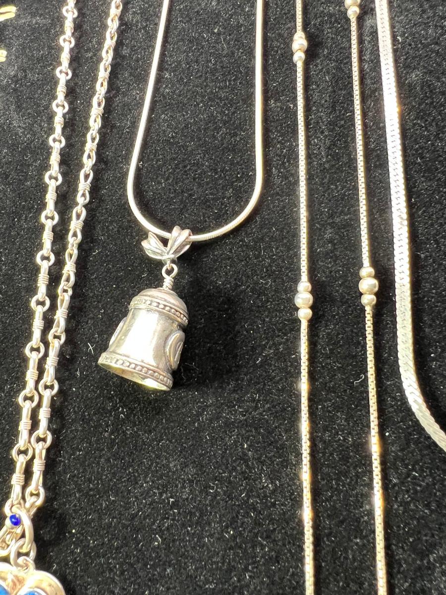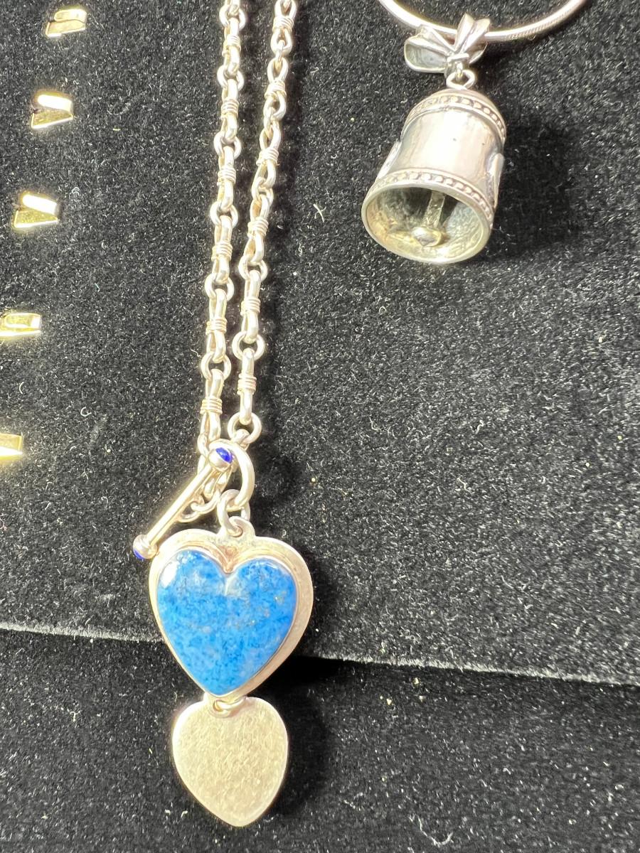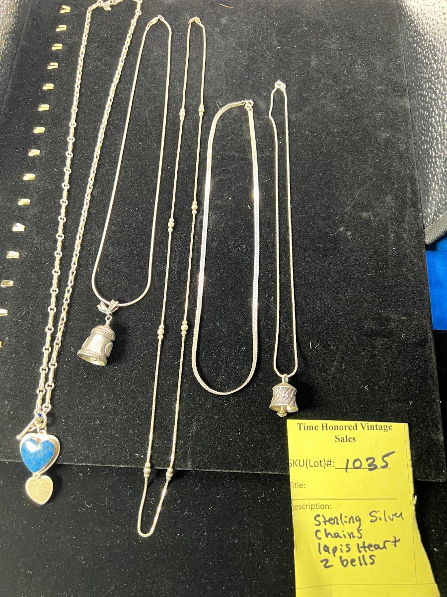 sterling silver chains, bells, 28" 925 chain and sterling/ Lapis heart pendant