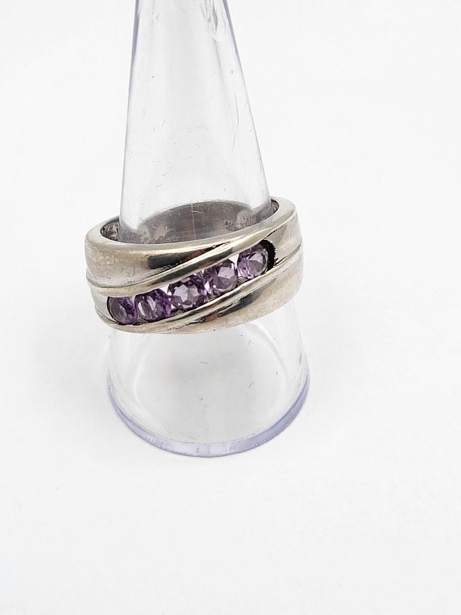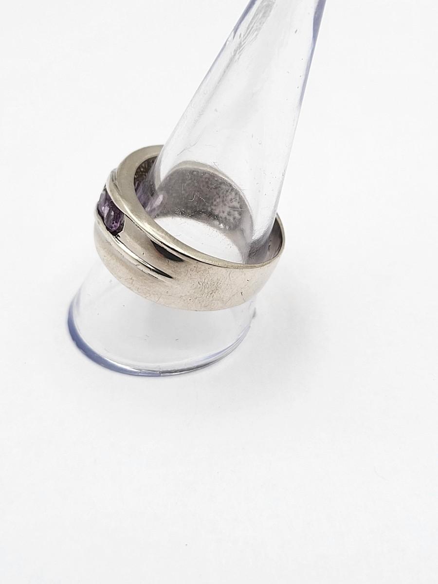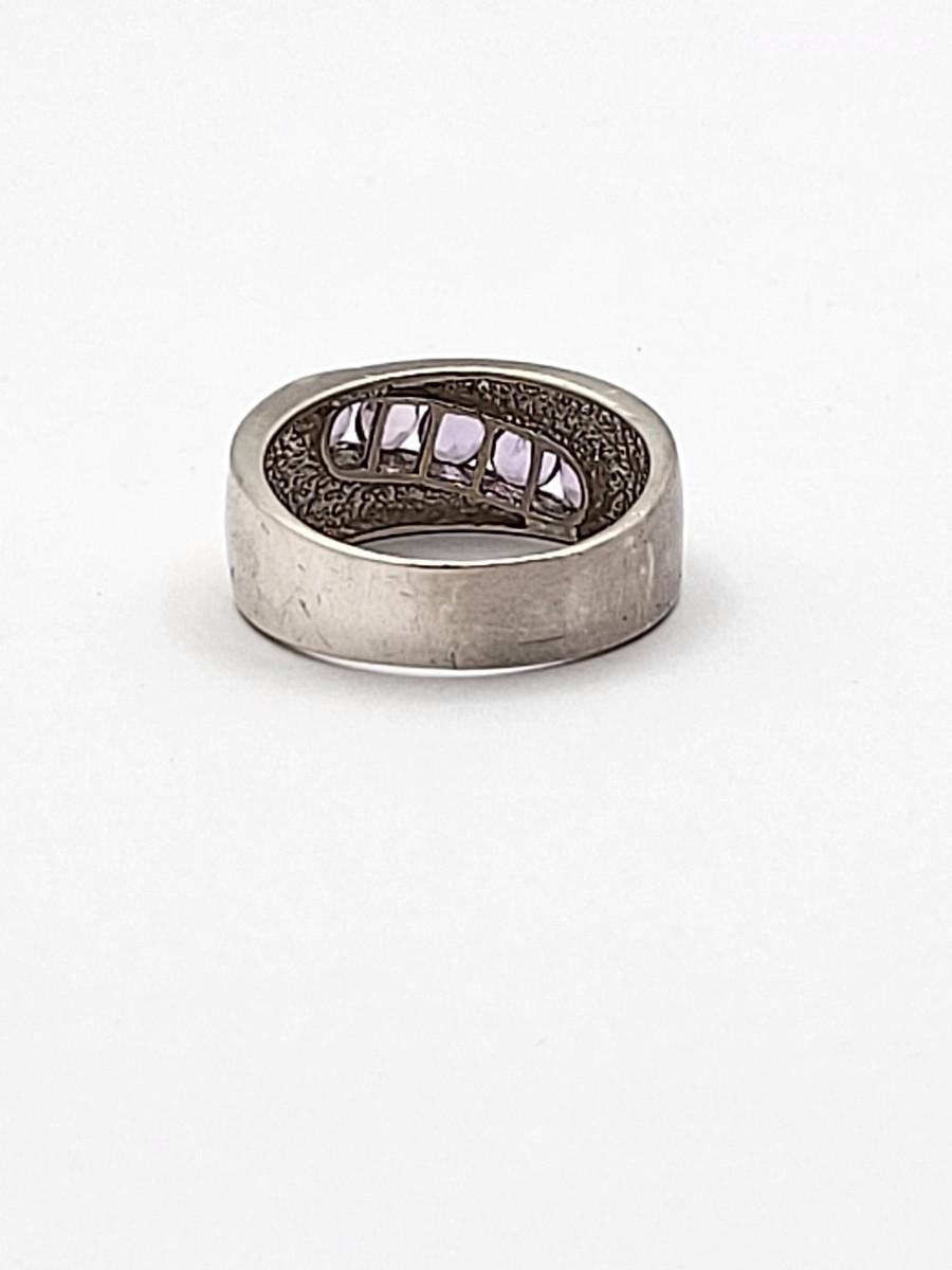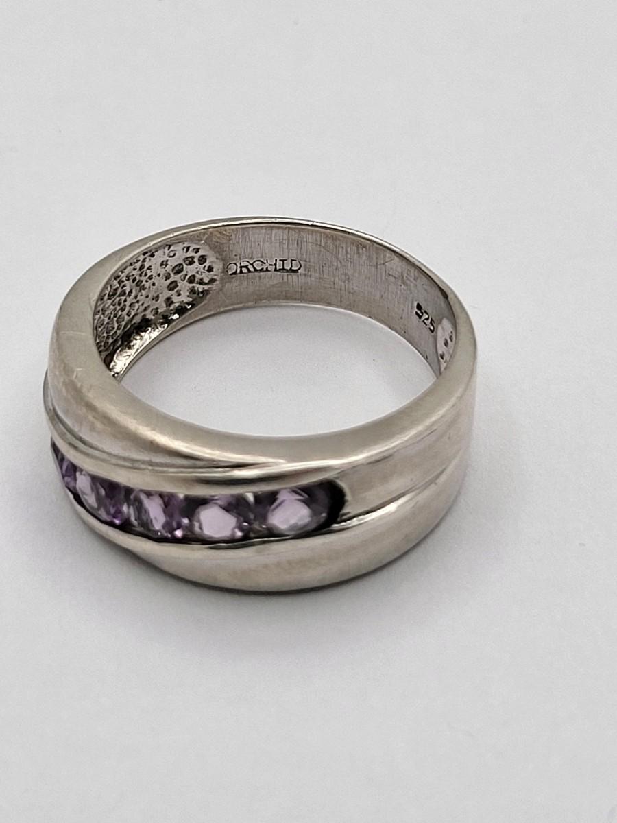 Men's sterling silver ring with channel set created purple amethyst stones. Size 10. Stamped Orchid 925.