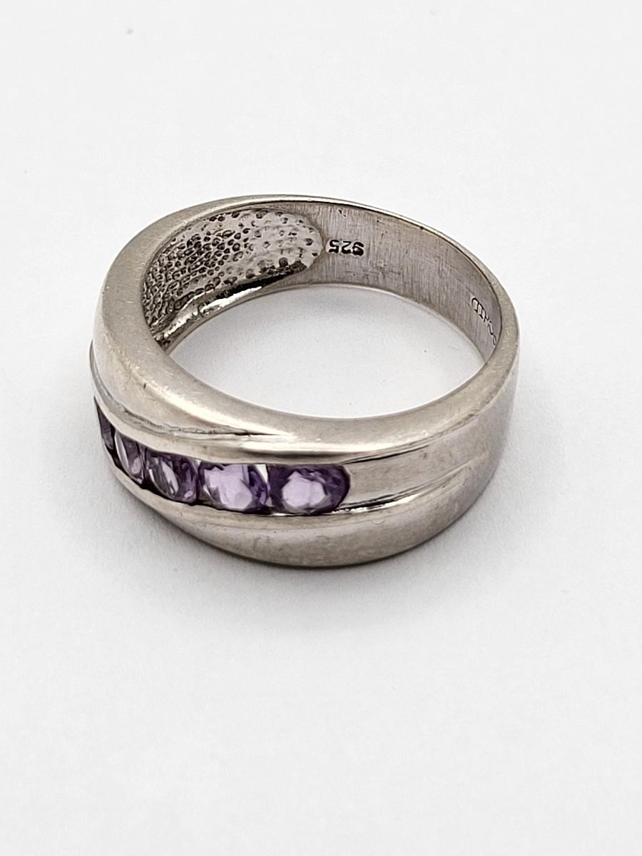 Sterling Silver Channel Set Purple Stone Wedding Band