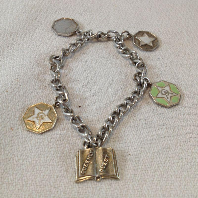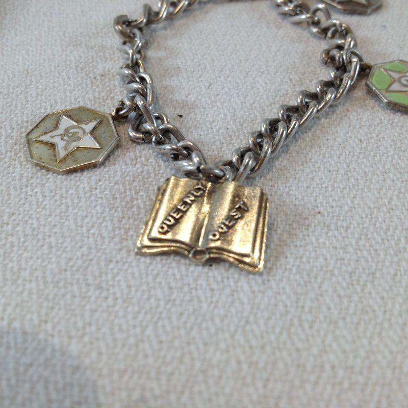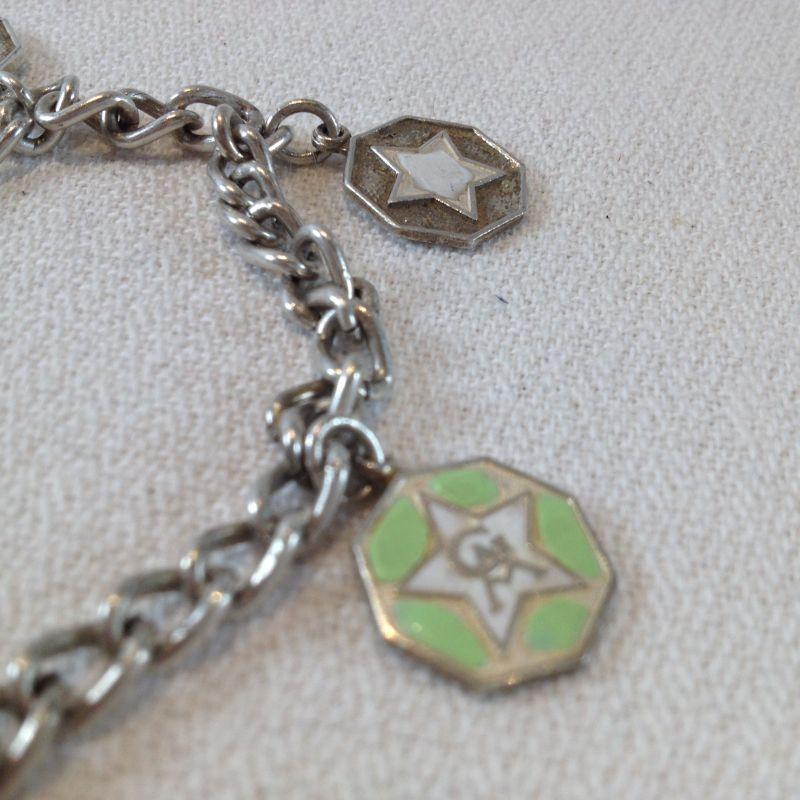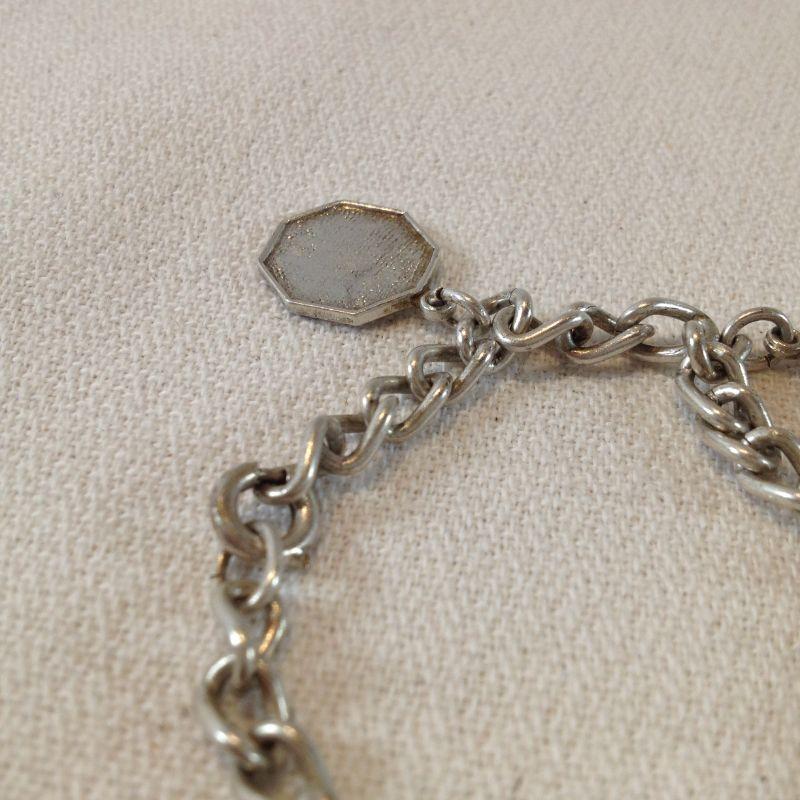 This is a small but unique charm bracelet. Both the charms and chain are marked sterling. The wearer would have to have a small wrist to wear this item - possibly designed for a child or teen..